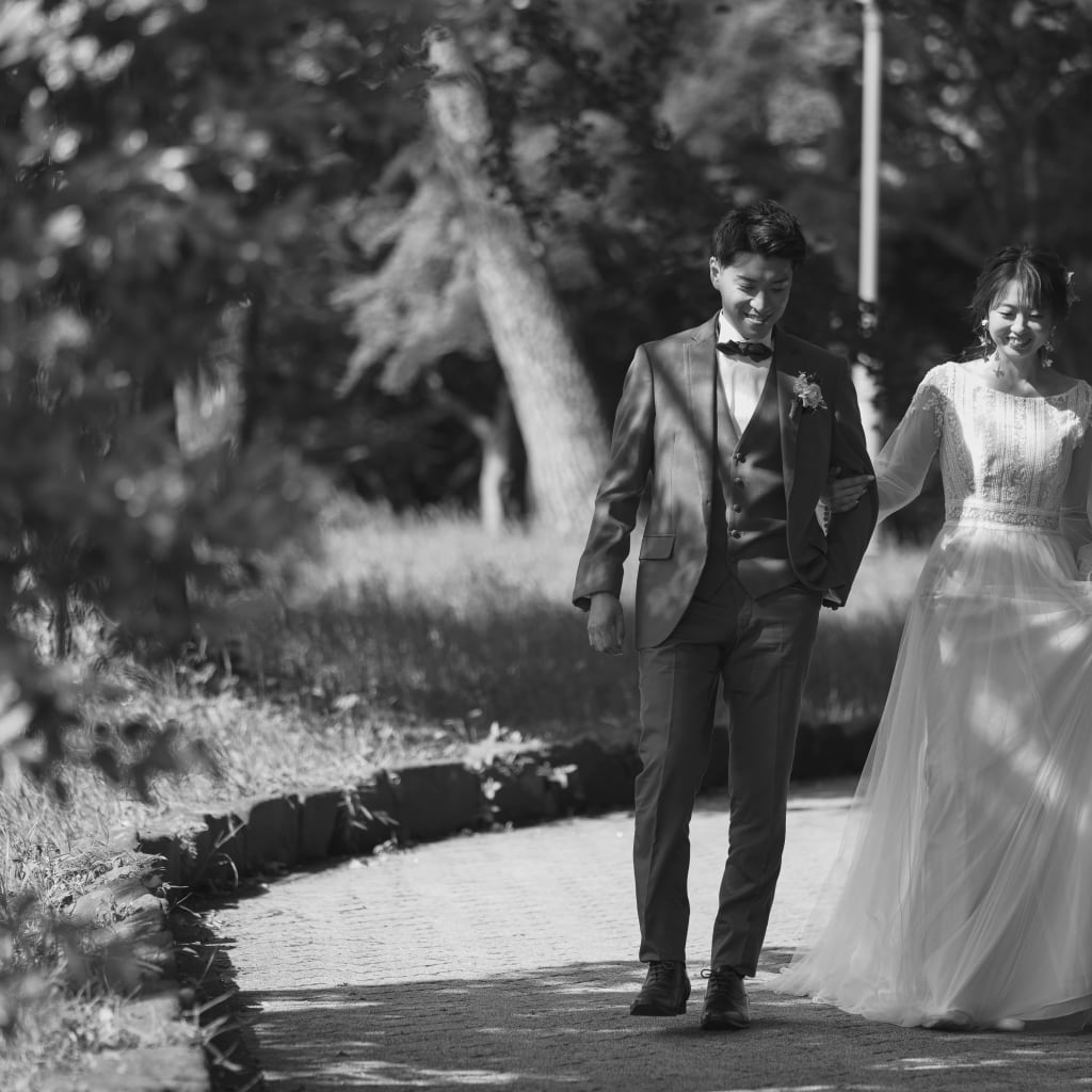 モノクロのお写真も。こちらにも笑い声が聞こえてきそうなくらいのご新婦様の満面の笑みでした!