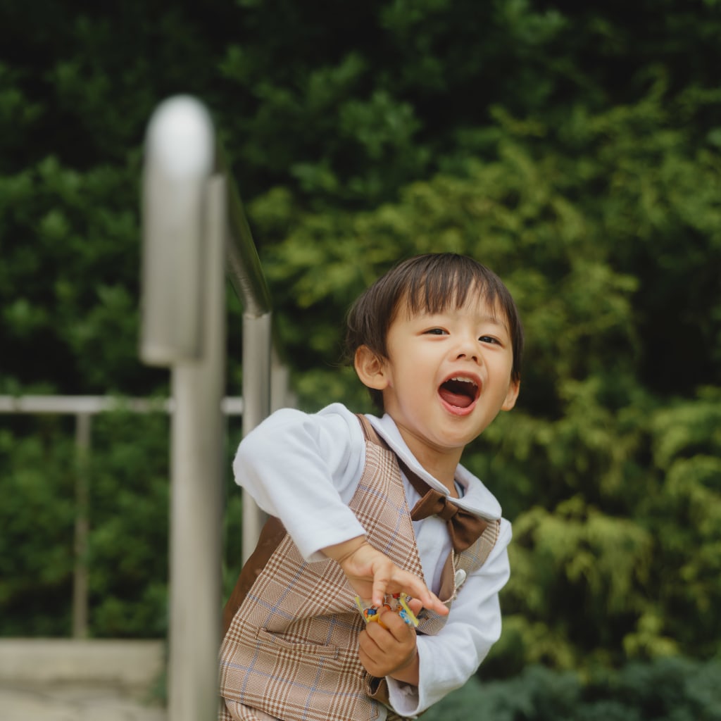 緑の豊かなことが特徴のこのチャペル、目線は合っていなくてもおふたりの自然な笑顔がとても素敵です!