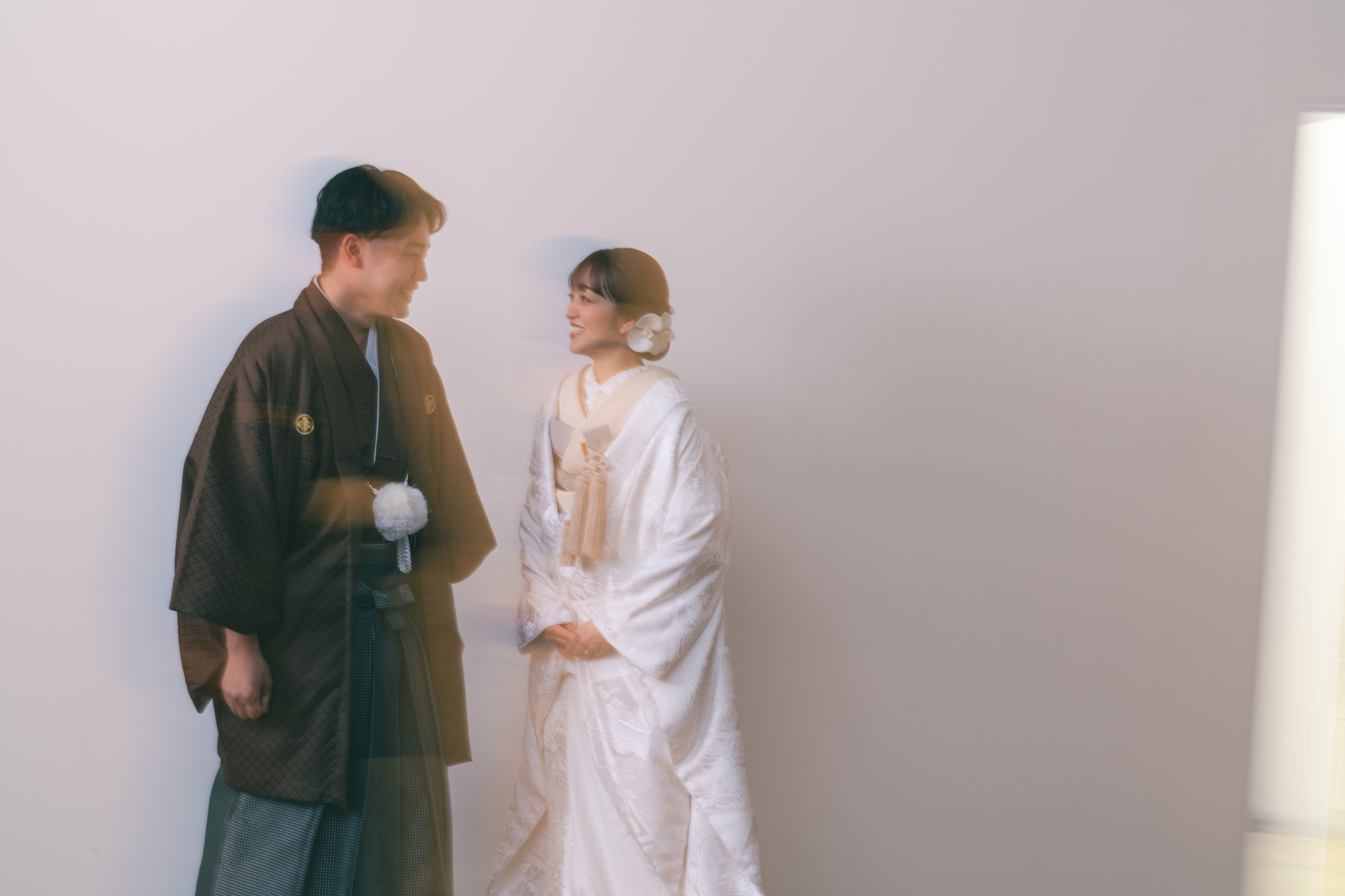 お二人の後ろ姿は、光がさすように窓の前で撮りました!