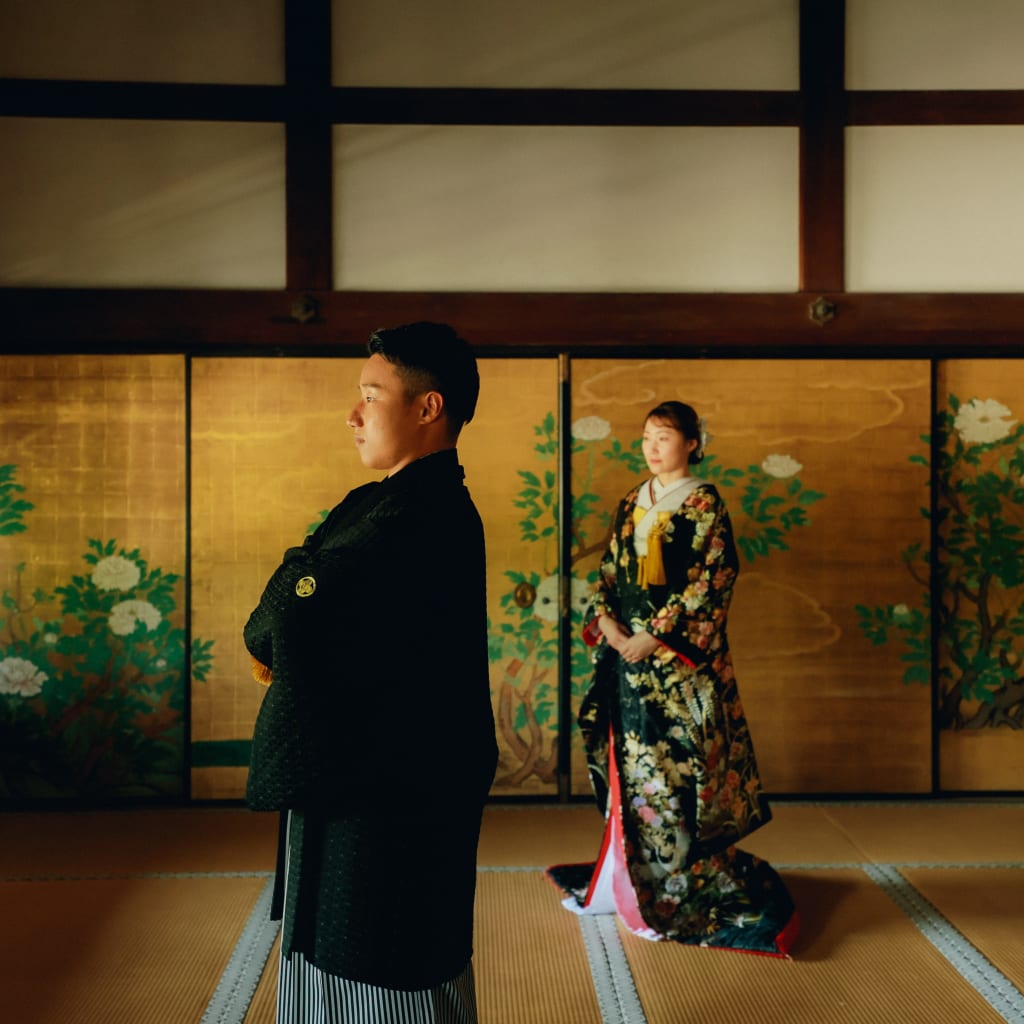 新婦様に光が当たり艶やかに、新郎様に影がかかり格好良く、雰囲気のあるお写真になりました♪04