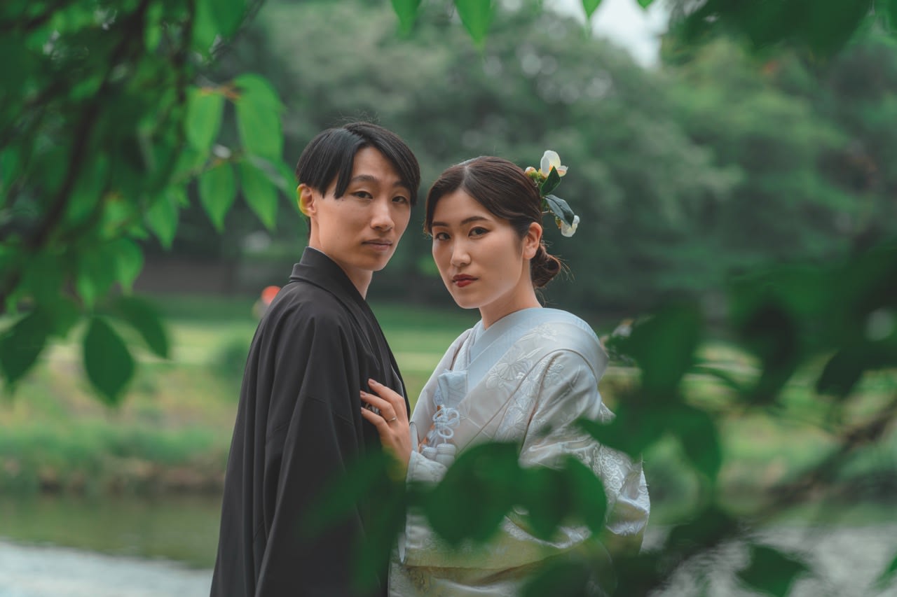 青空にお二人の和装がとっても映えますね!