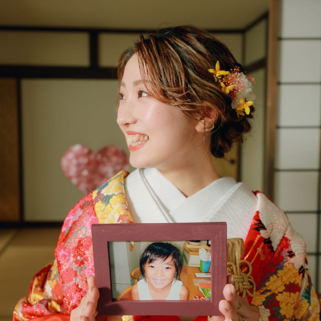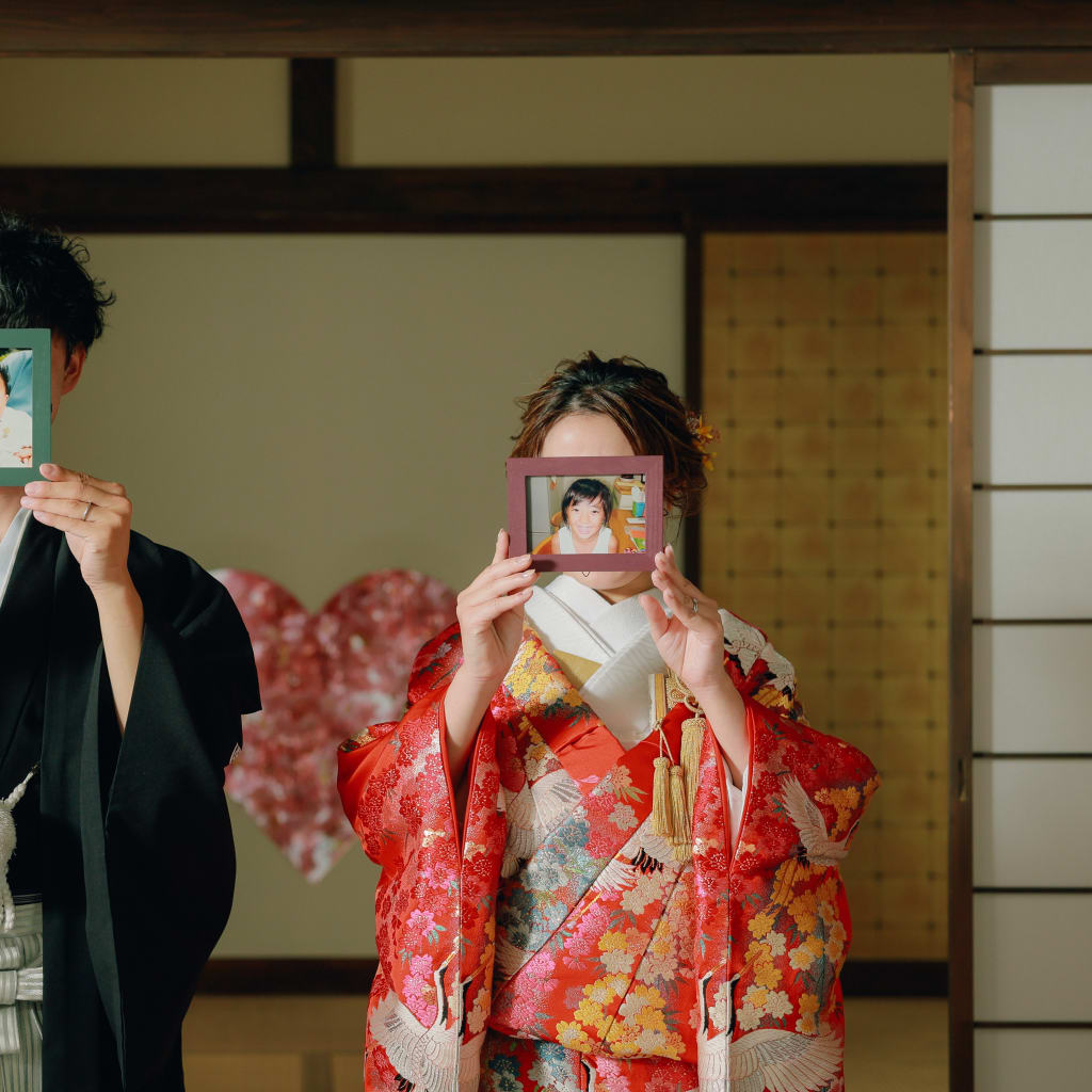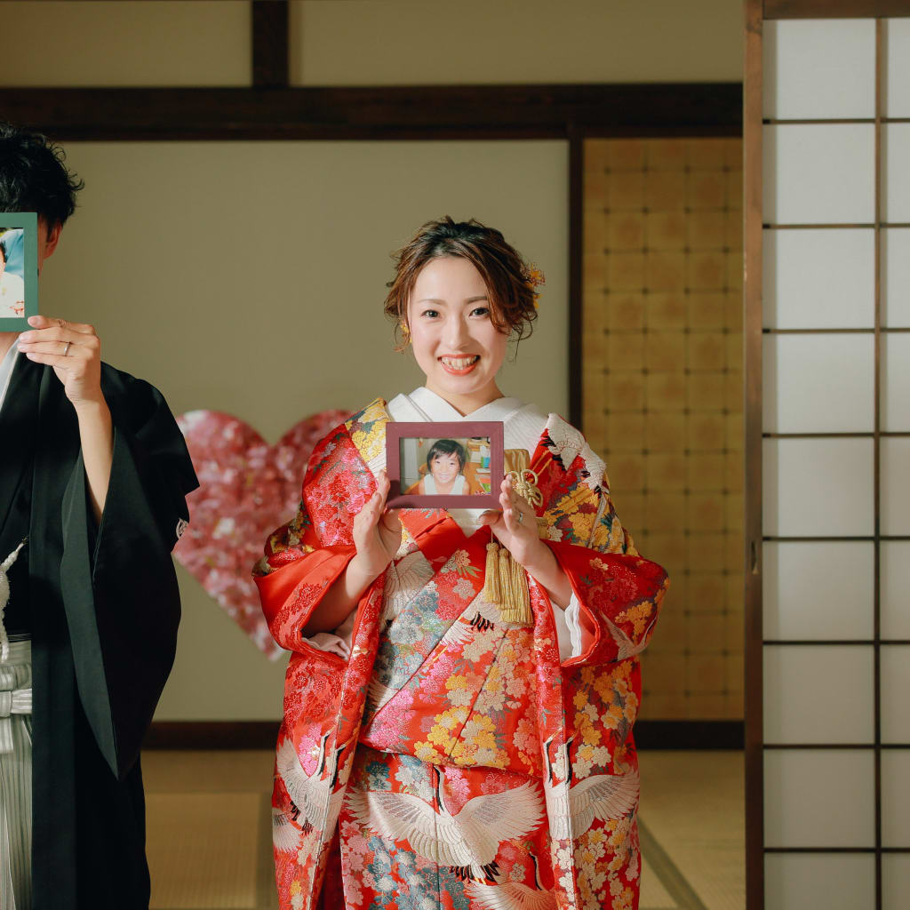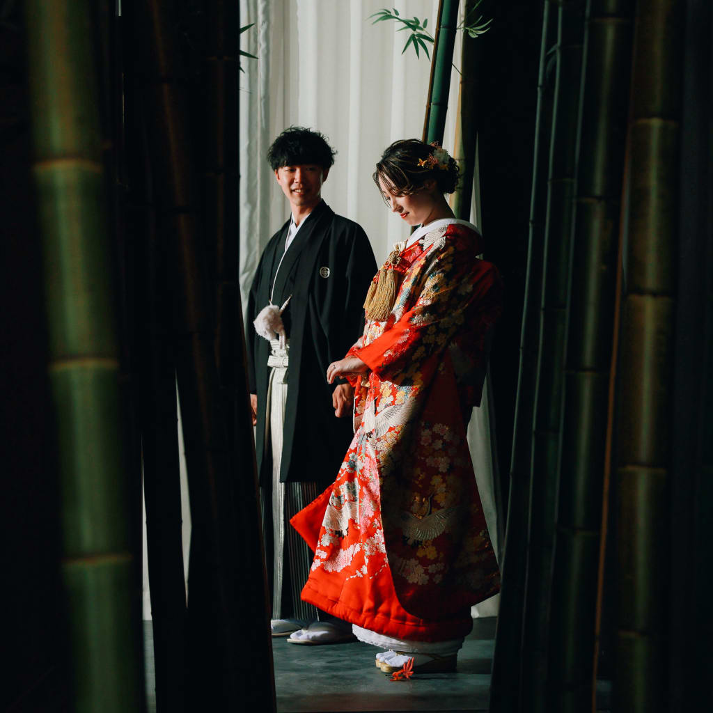 竹林の中にいるような一枚も。光と影を利用して色打掛の色味が綺麗に写ります。