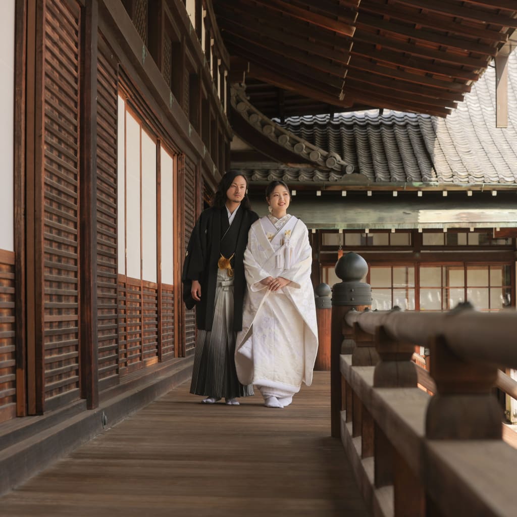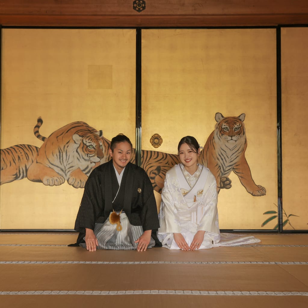 新郎様が格好良い1枚♪紋付は腕組みをすることで紋章が見えるようになっています♪立ち姿が絵になる新郎様です^^