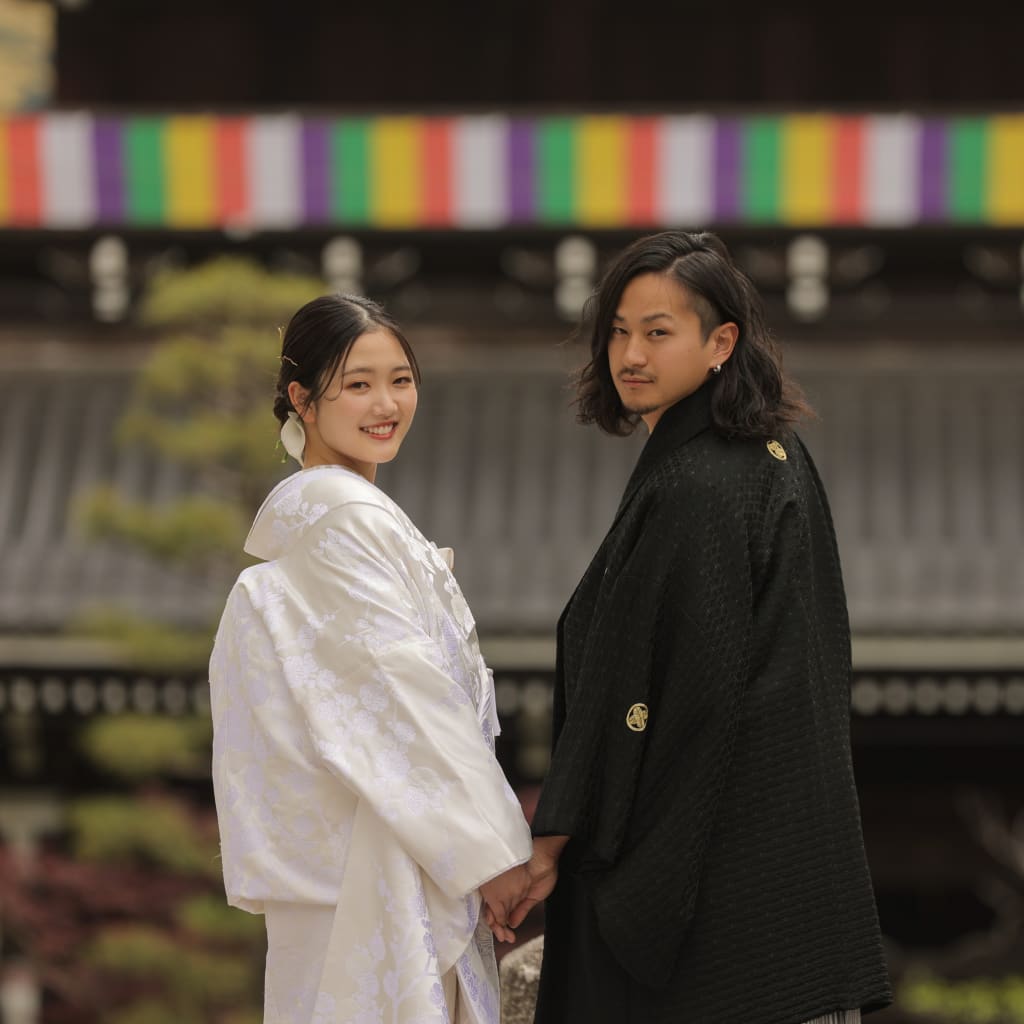 アップでのお写真。和傘もおふたりを包み込むように、仲睦まじい様子が伝わってくるお写真になりました♪