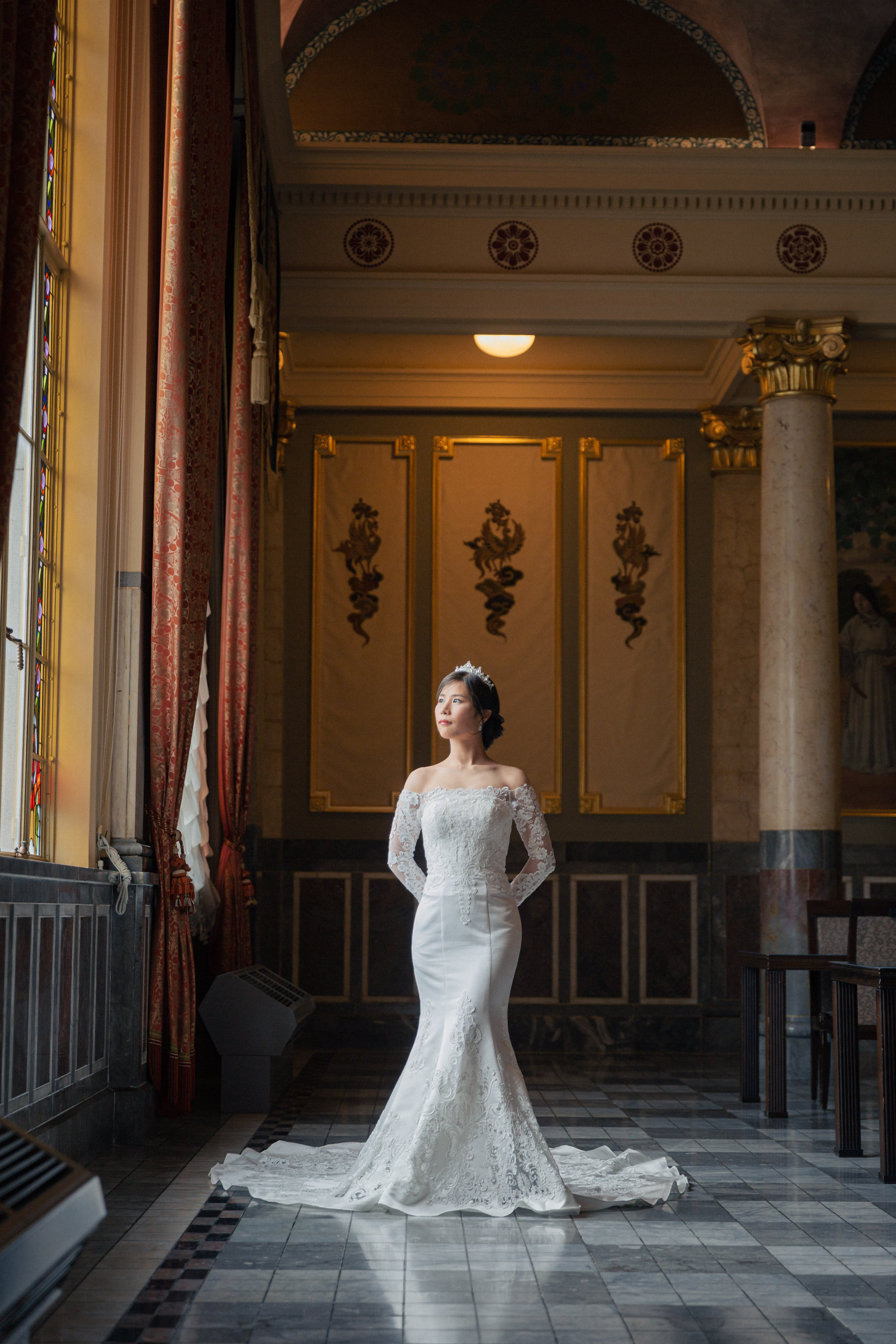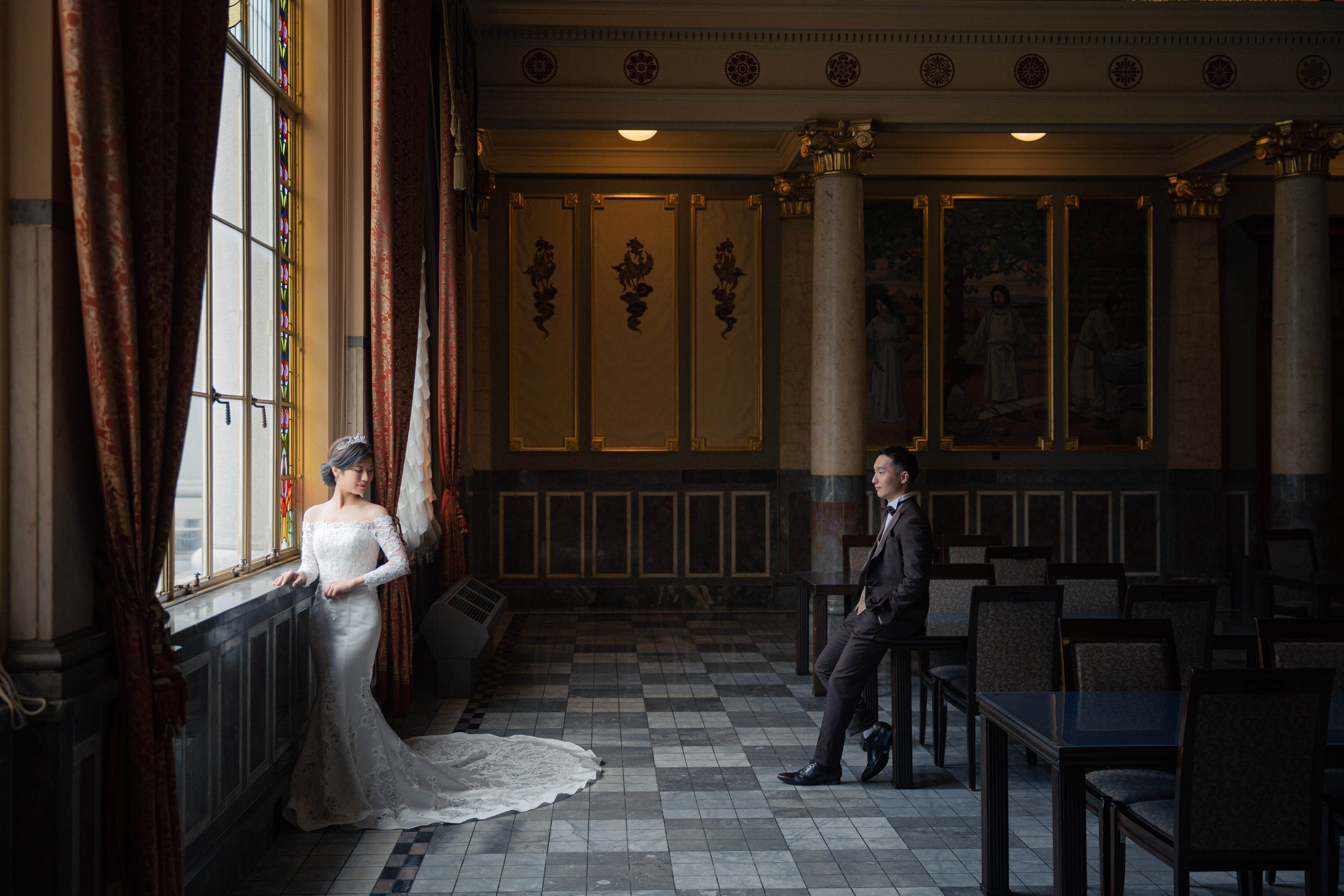 窓一面のステンドグラスや、ヨーロッパ宮殿を思わせる意匠の建物