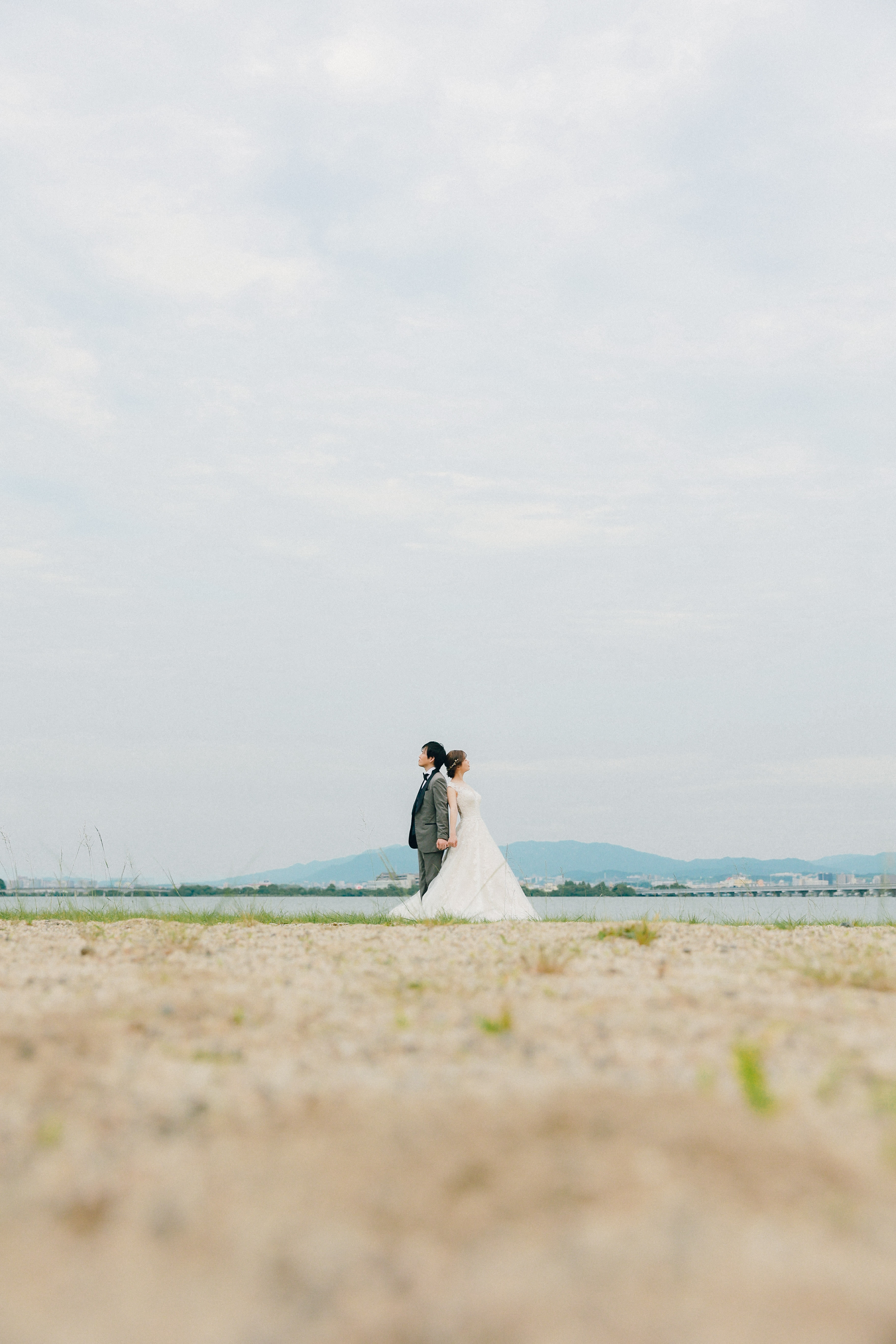 ピシッと立つ新郎様にそっと寄り添う新婦様。そんなふたりを後ろから・・・ふたりの関係性が見えてきて素敵です♡