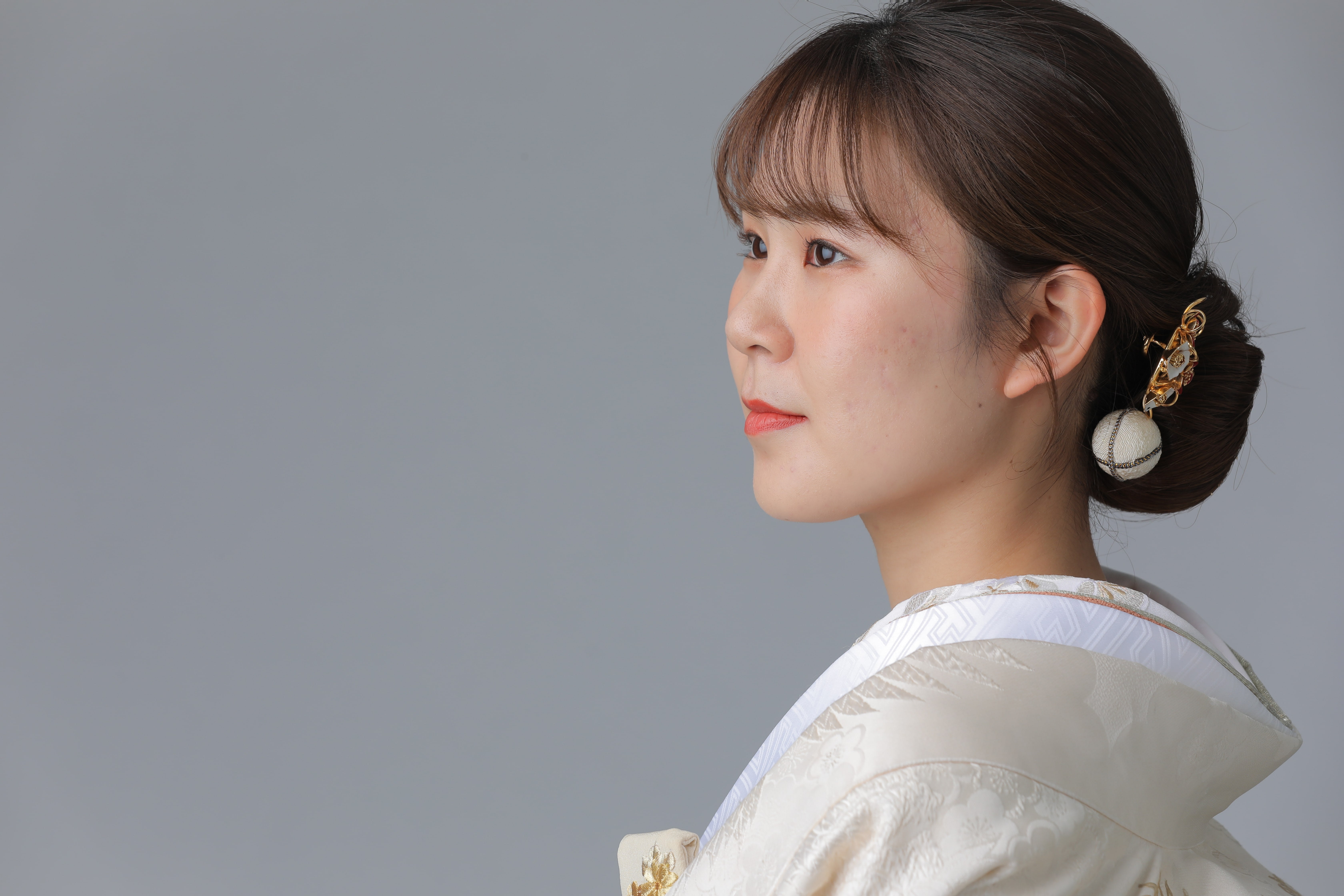 小物をコーディネートしてくださったご新婦様。特に帯揚げのオレンジがアクセントになっていてとっても可愛いです!