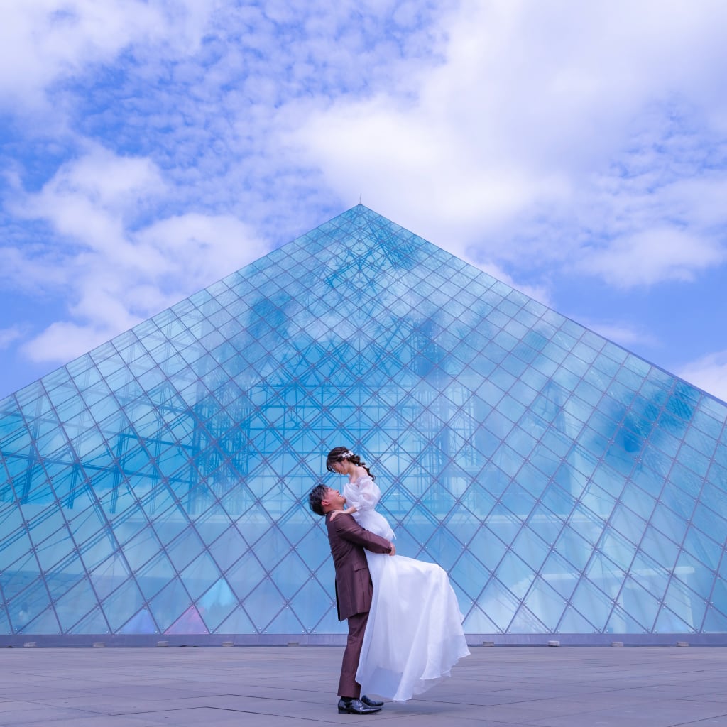 ピラミッド内での撮影!この日は撮影始まるタイミングでこの快晴と出会い、迫力のある1枚に仕上がりました♫