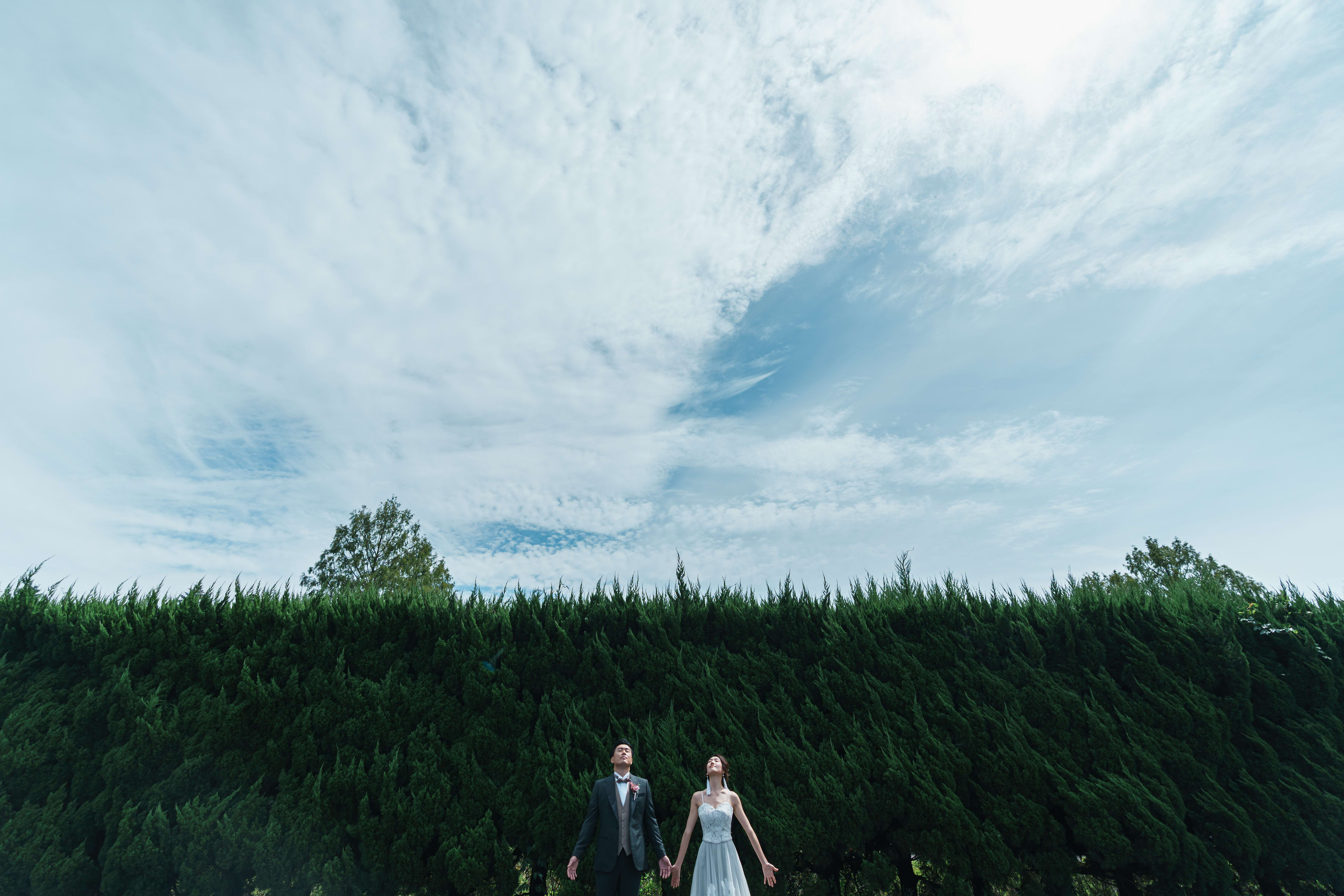 晴れた日の撮影だと、緑と青がとっても綺麗です✨ご新婦様の横顔も素敵ですね!