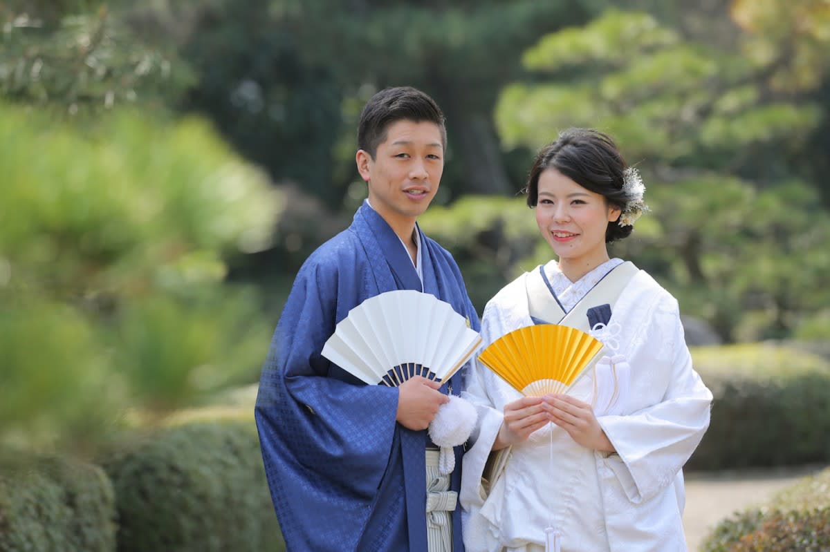 青空にネイビーの羽織袴と、白無垢が映えます☆