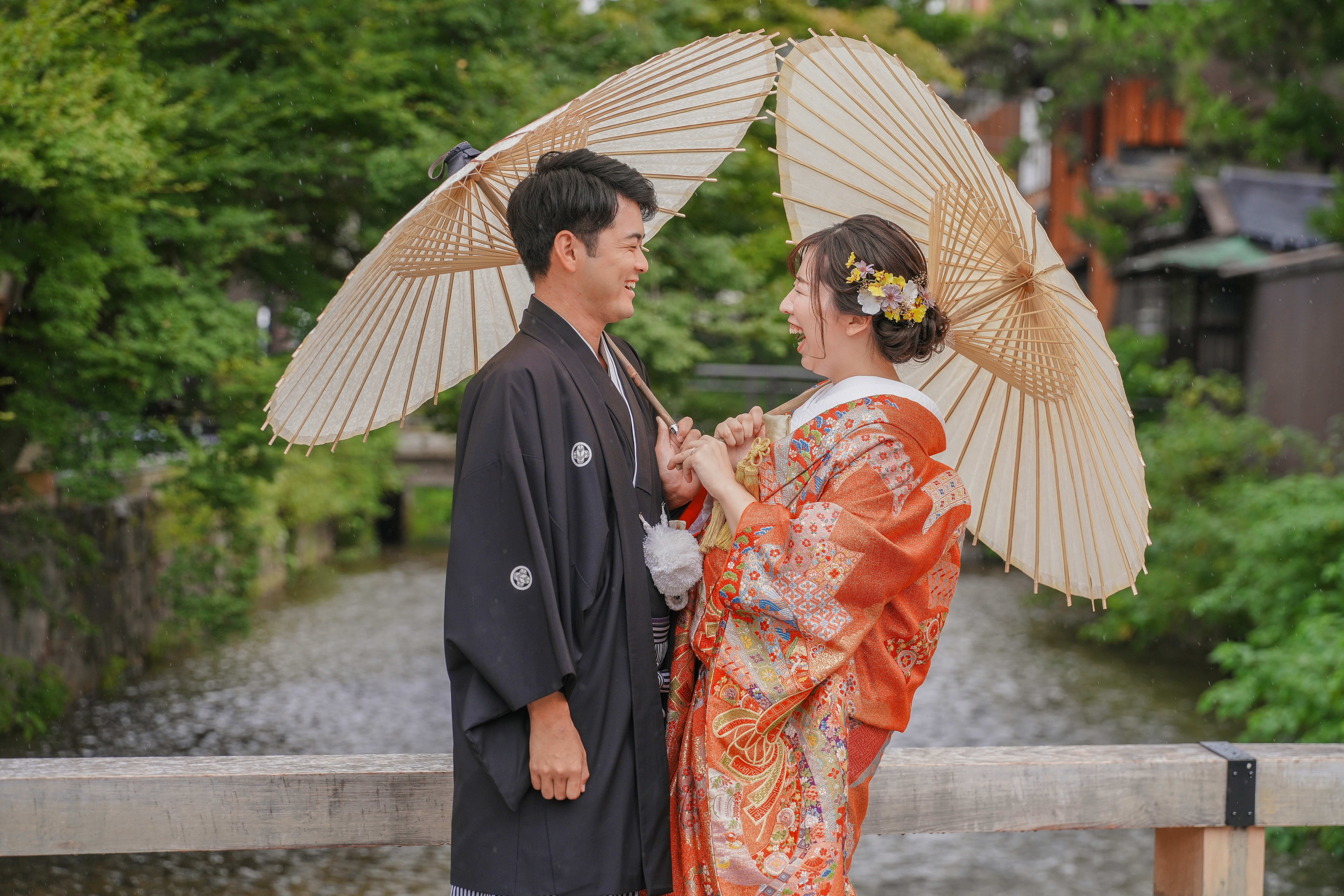 雨でも楽しみながら笑顔の絶えないお二人です♪