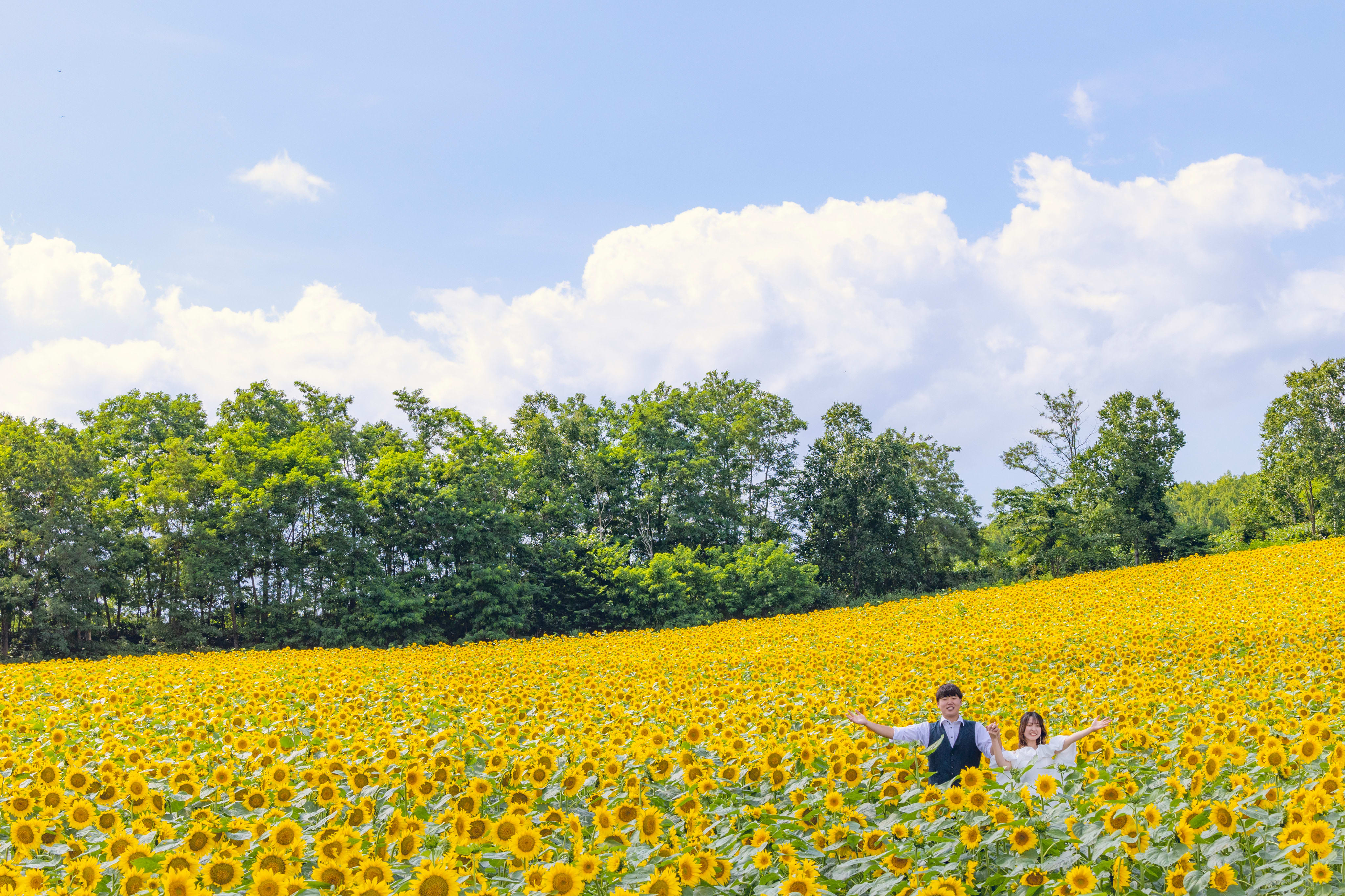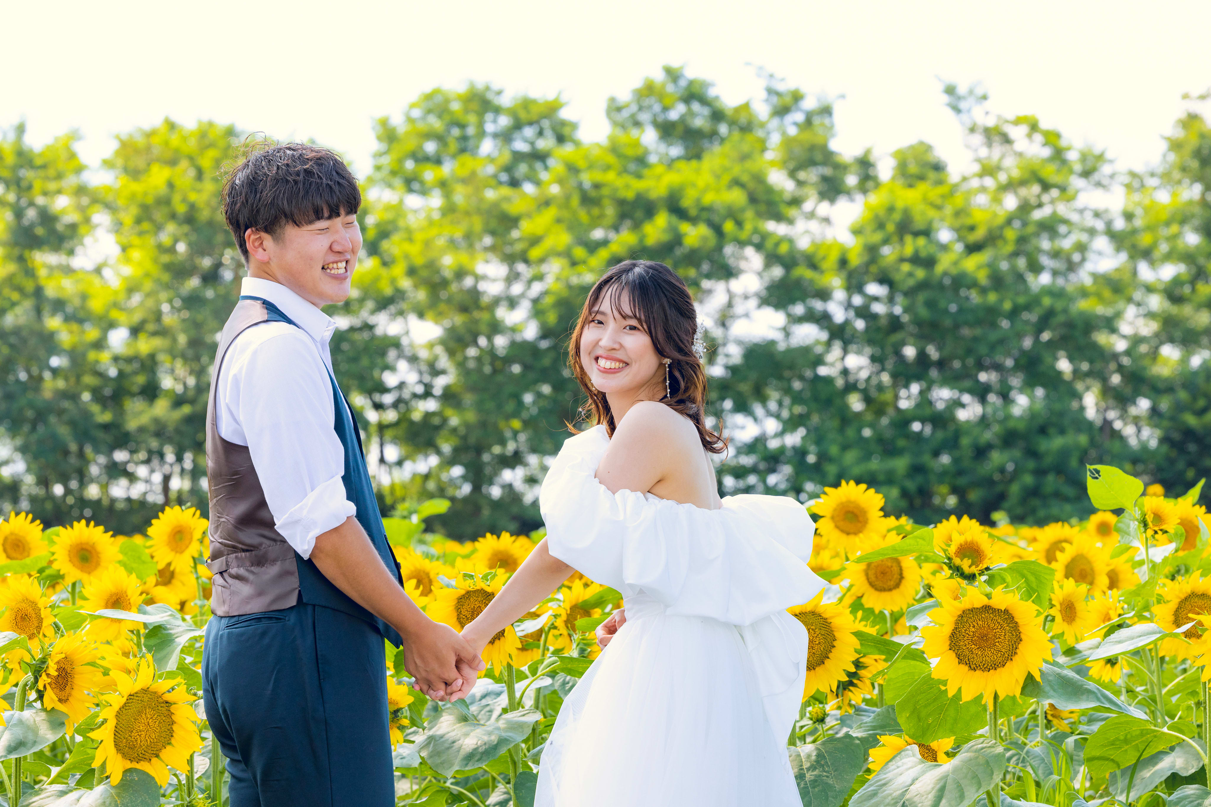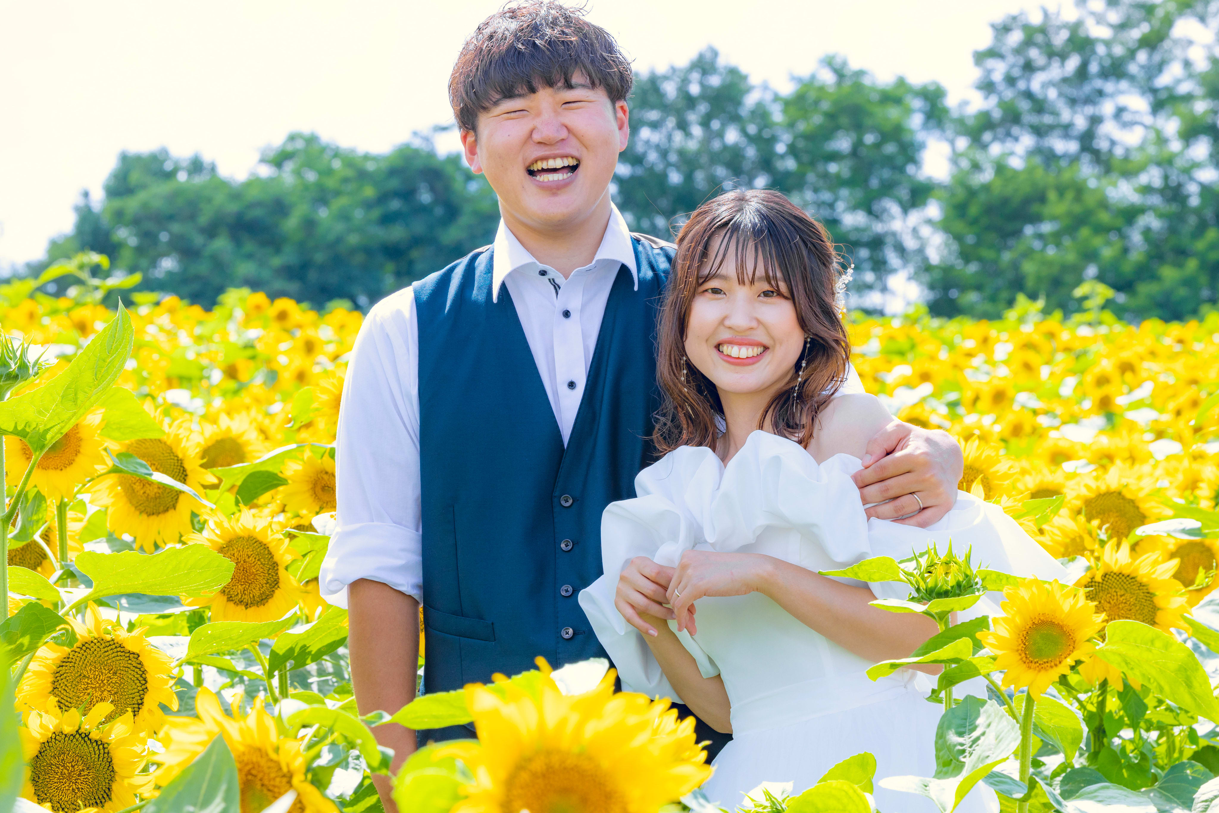 ひまわり畑の大パノラマで残すウェディングフォト♫