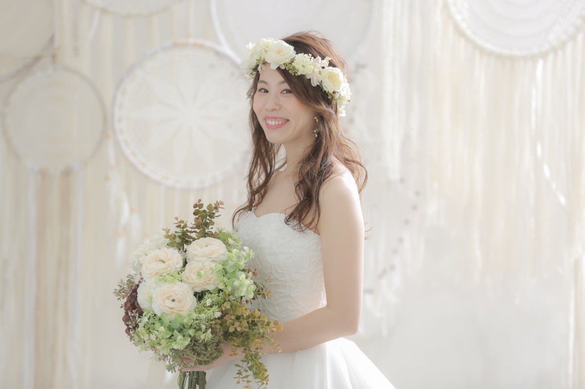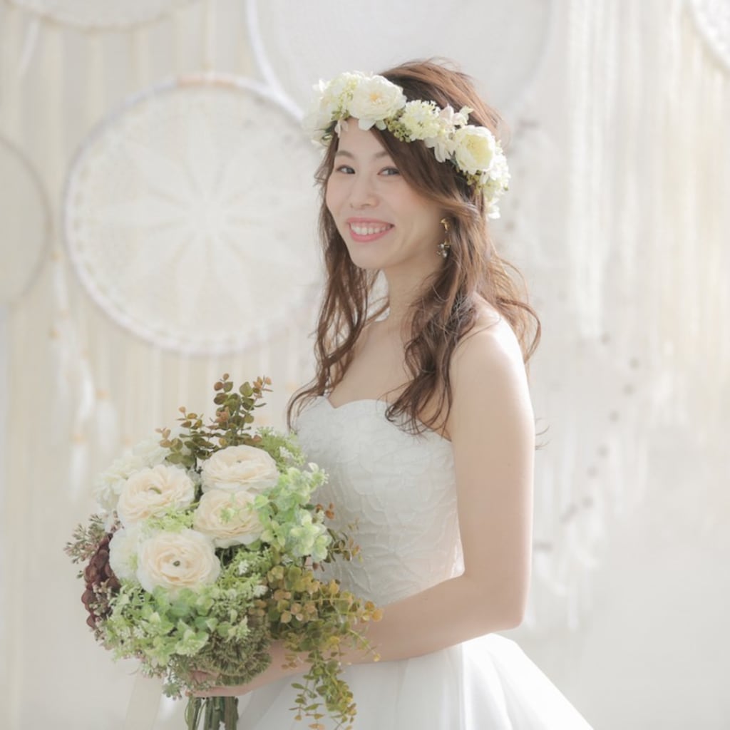大きな花冠が、ダウンスタイルの髪型にぴったりです♡