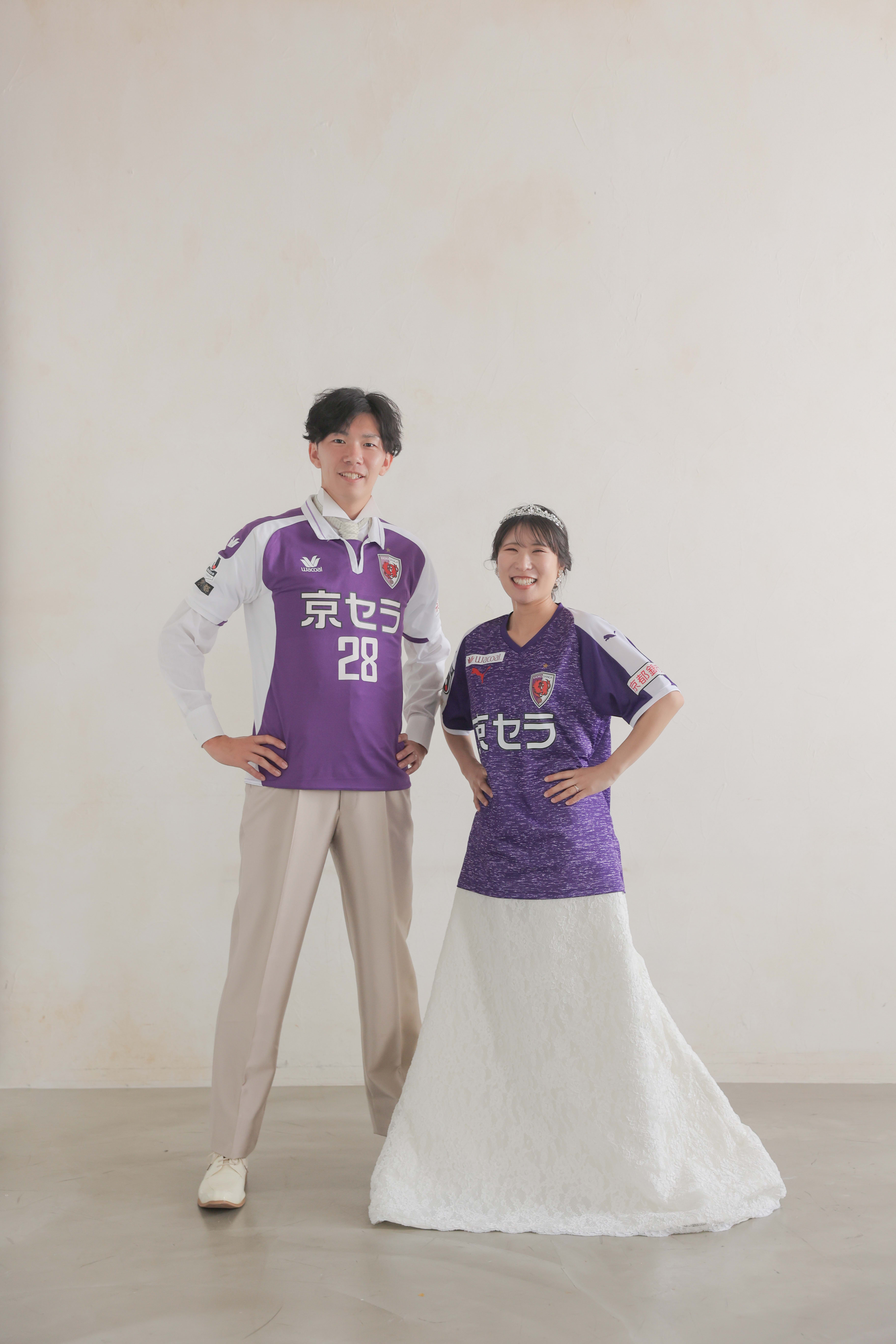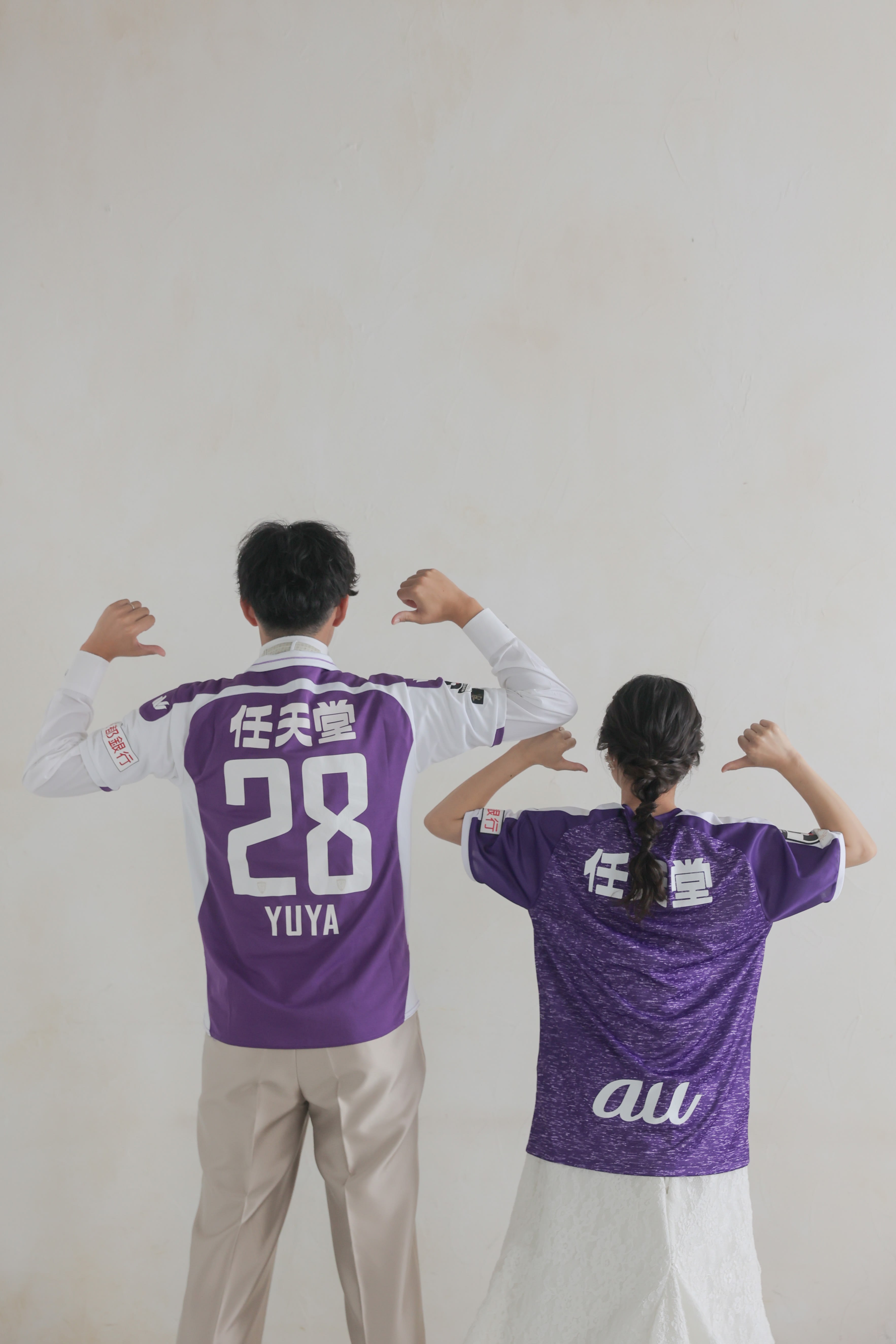 紫のユニホームが格好良いですね〜^^ 背丈のある新郎様と華奢な新婦様の後ろ姿♡