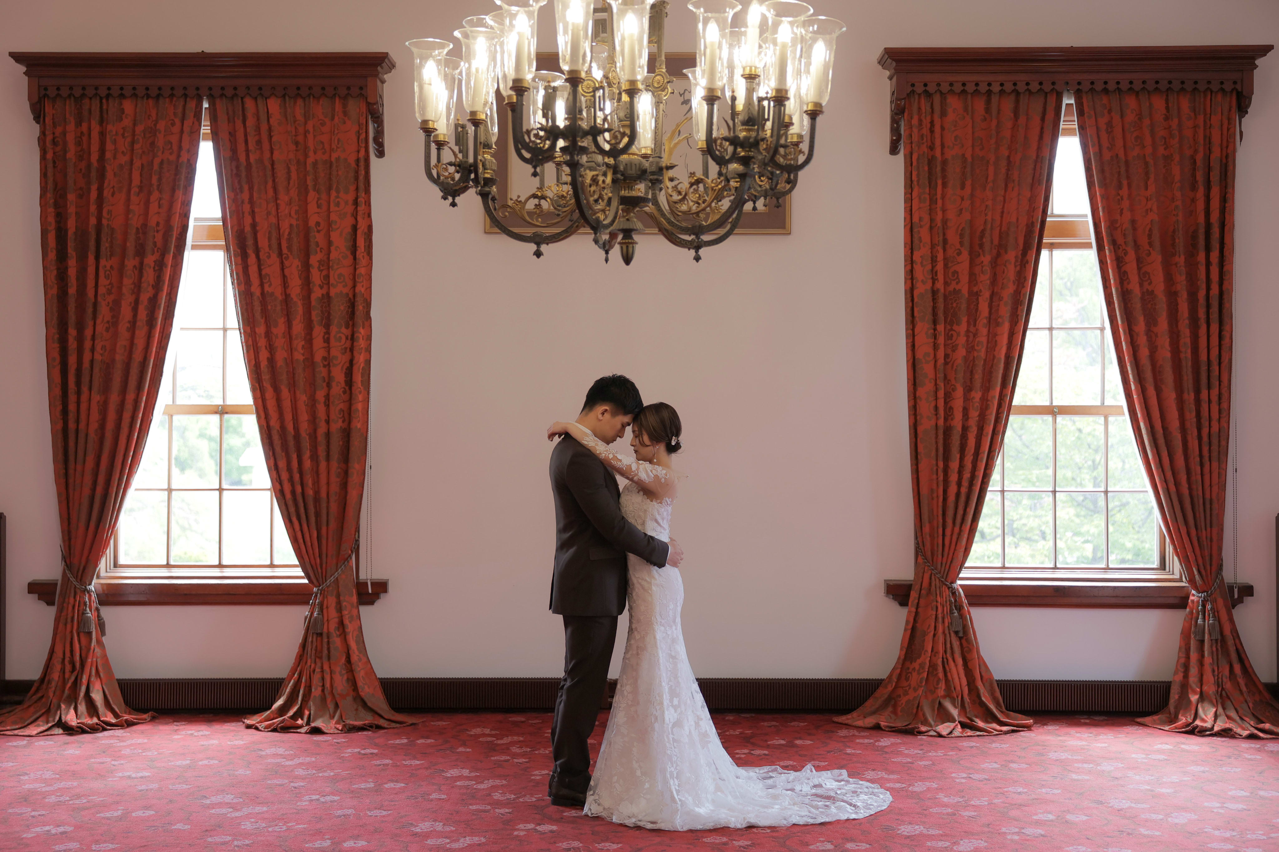 洋館ならではの1枚。シャンデリア・赤いカーテンがいい雰囲気を演出してくれます^^