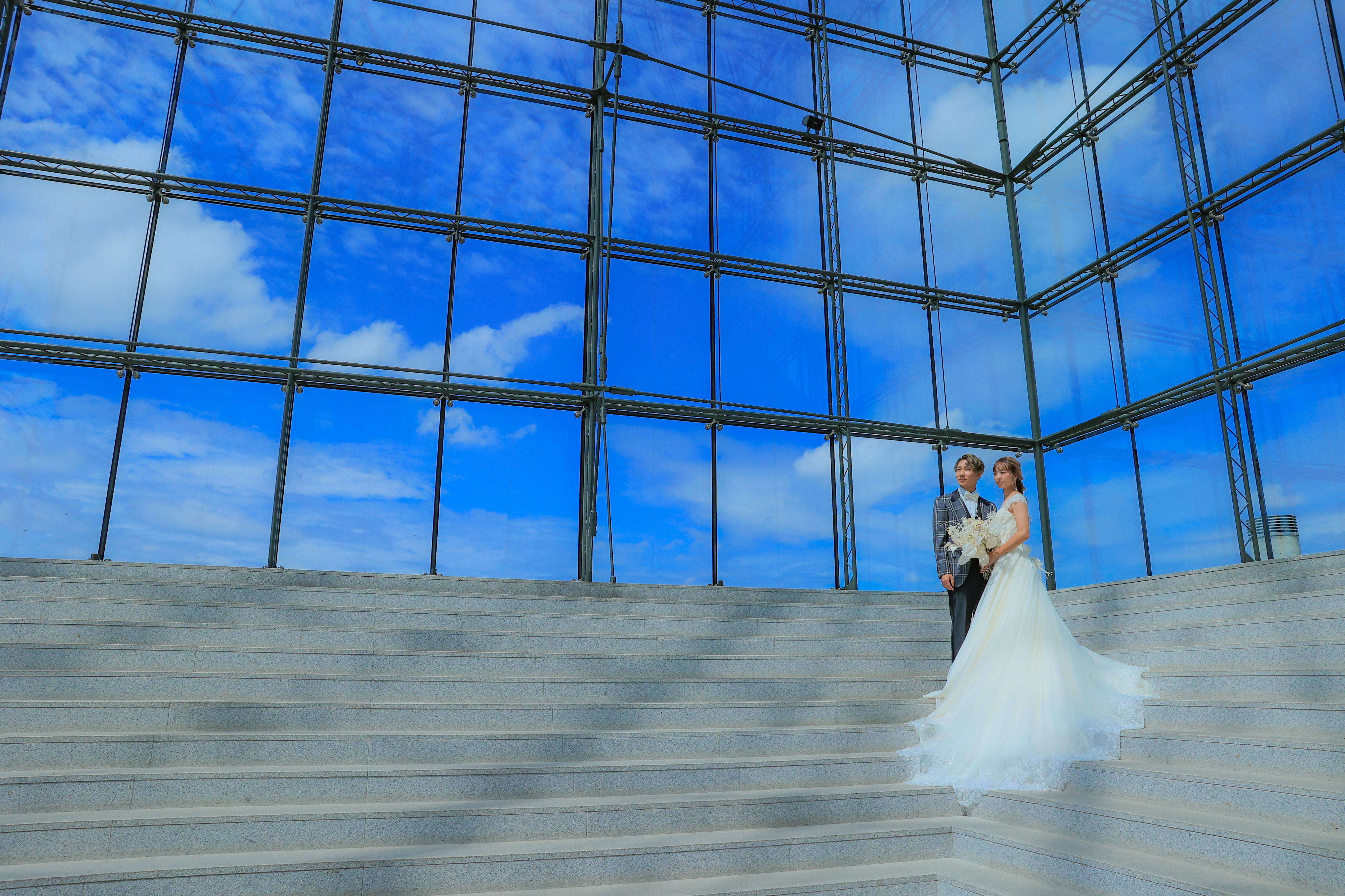 夏らしい青空の中でのピラミッド内での撮影。やっぱり青が映えますねー!!