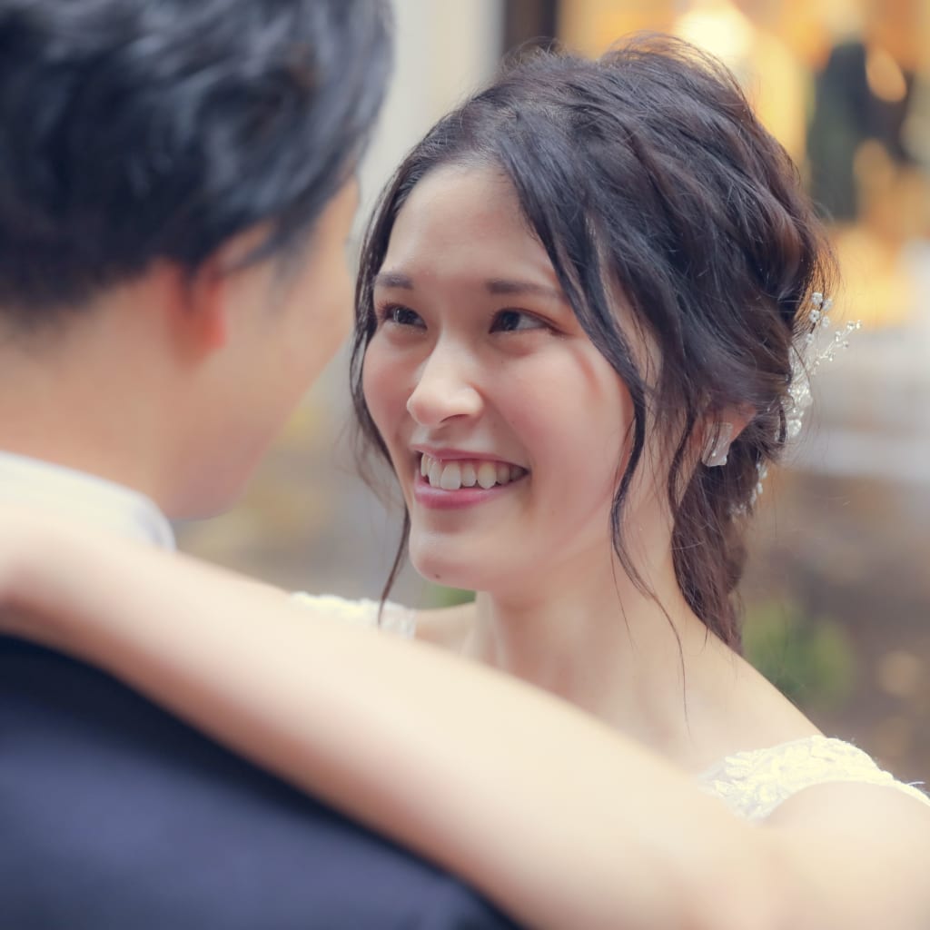 ご新郎様のほうを振り返ったご新婦様の表情がとってもかわいくて素敵です!