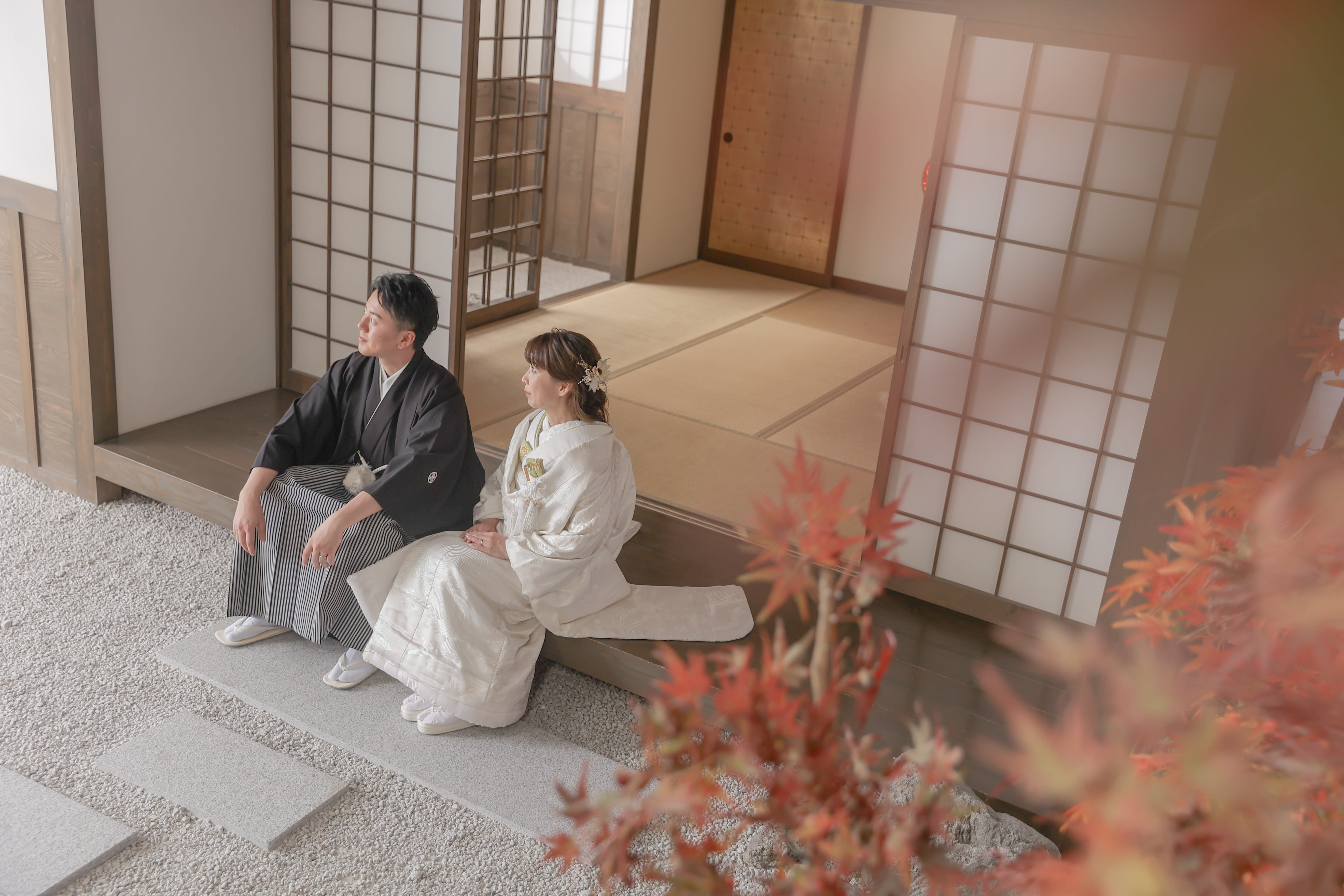 さっそく和を感じるお写真です♪ちらっと見える紅葉があるだけで、秋の演出が叶います^^