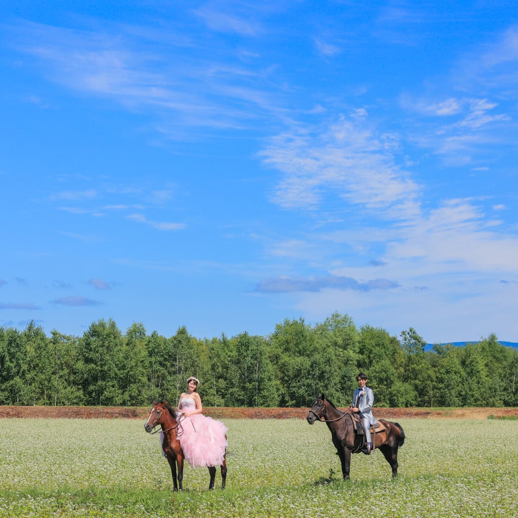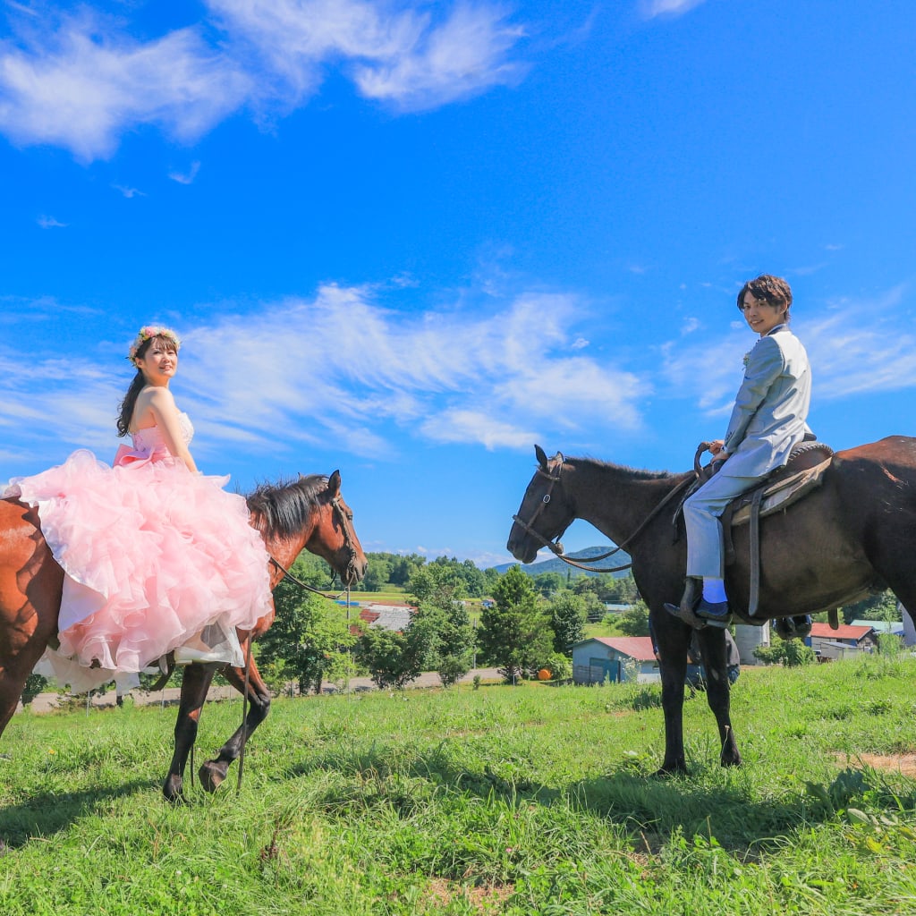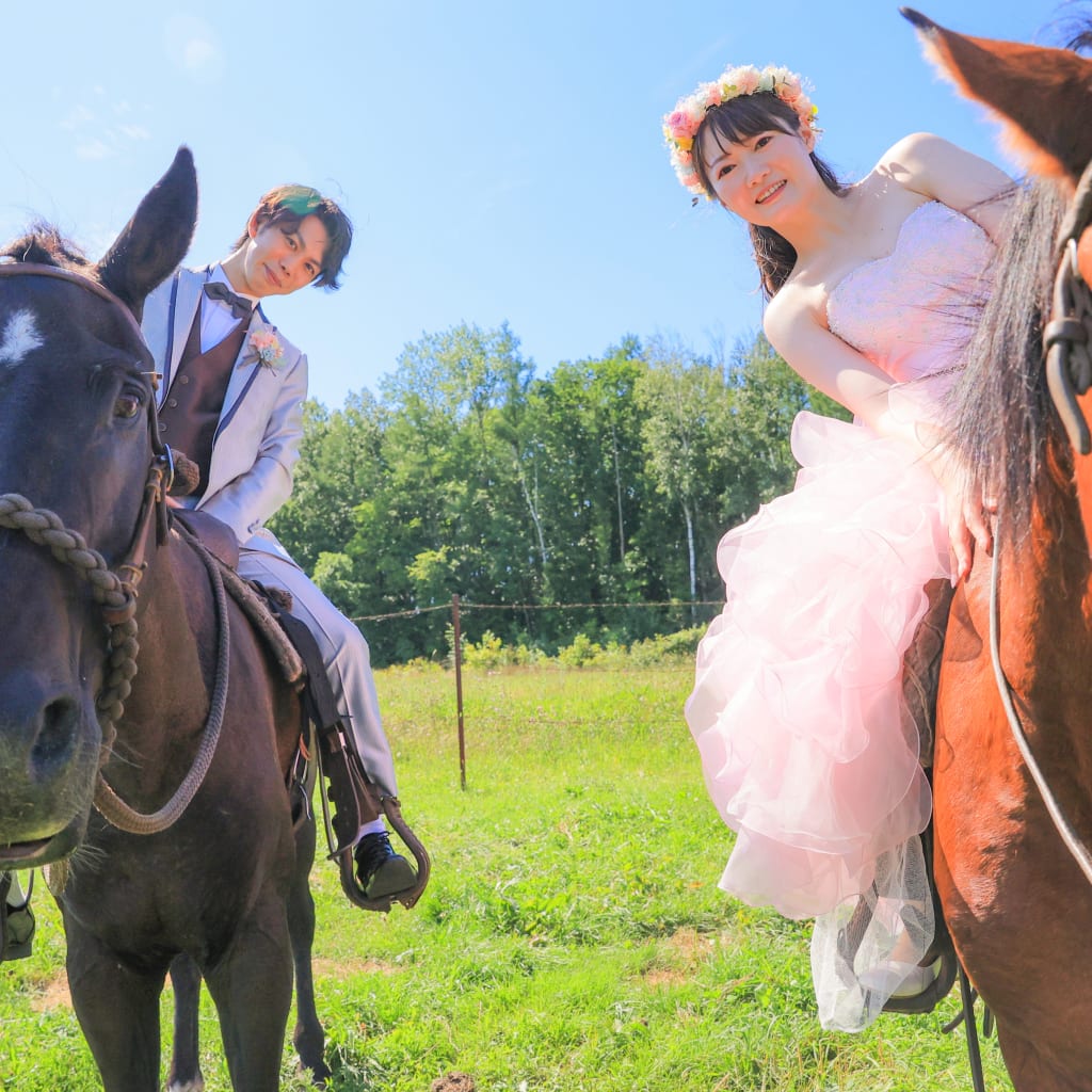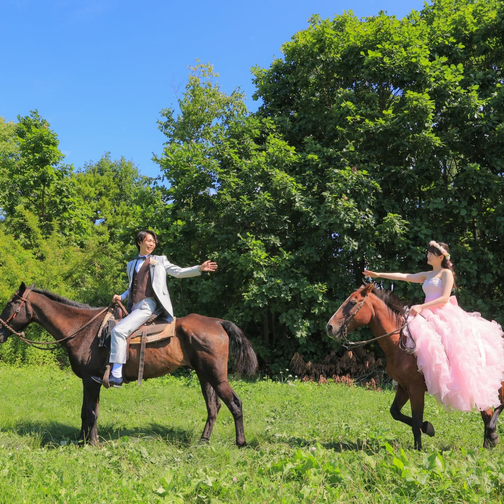 満喫プランでは乗馬プランもお選びいただけます♫せっかくの北海道での撮影なら非日常な1枚を残しませんか?