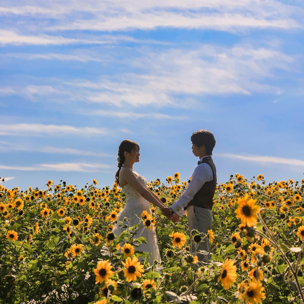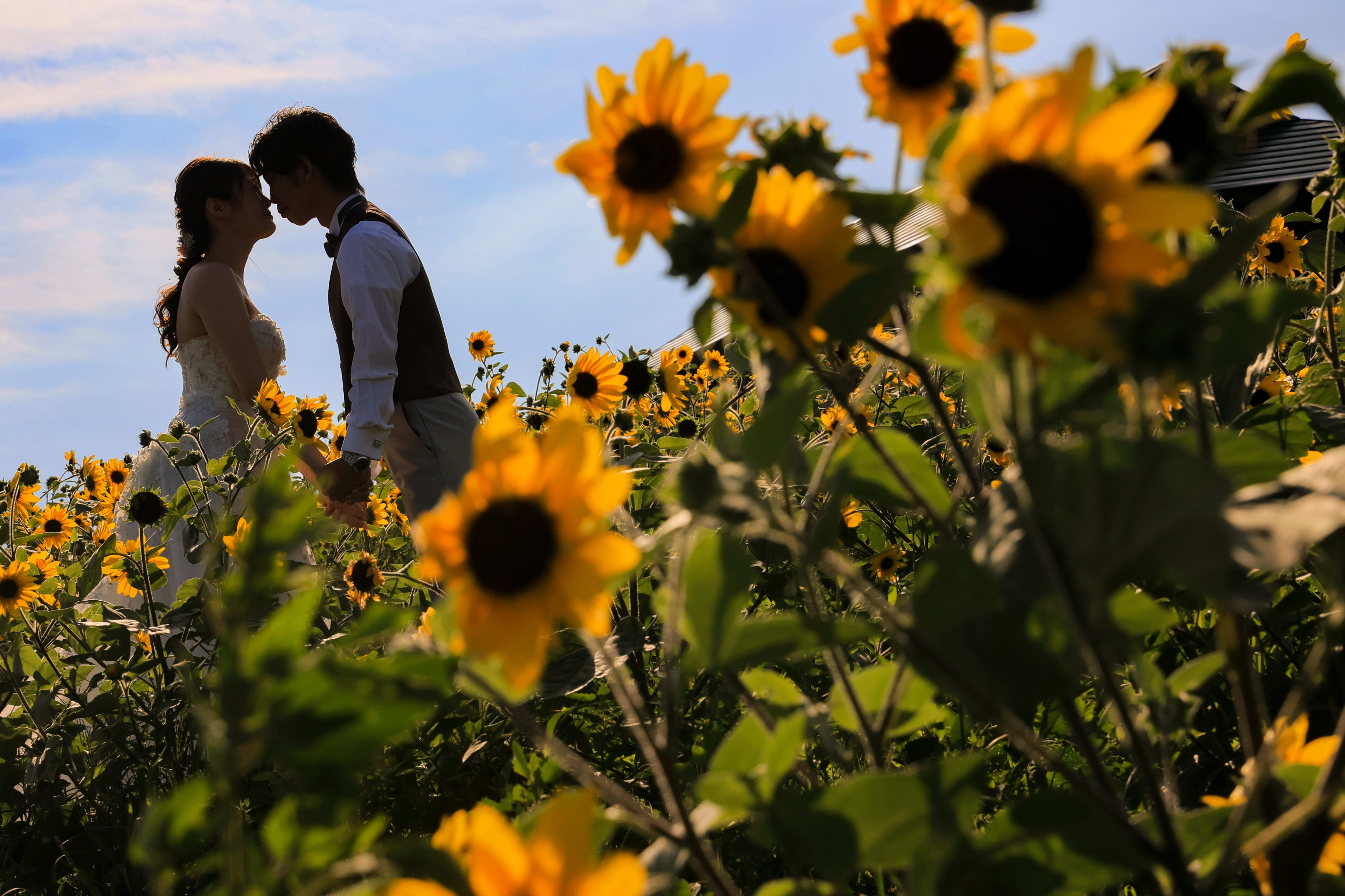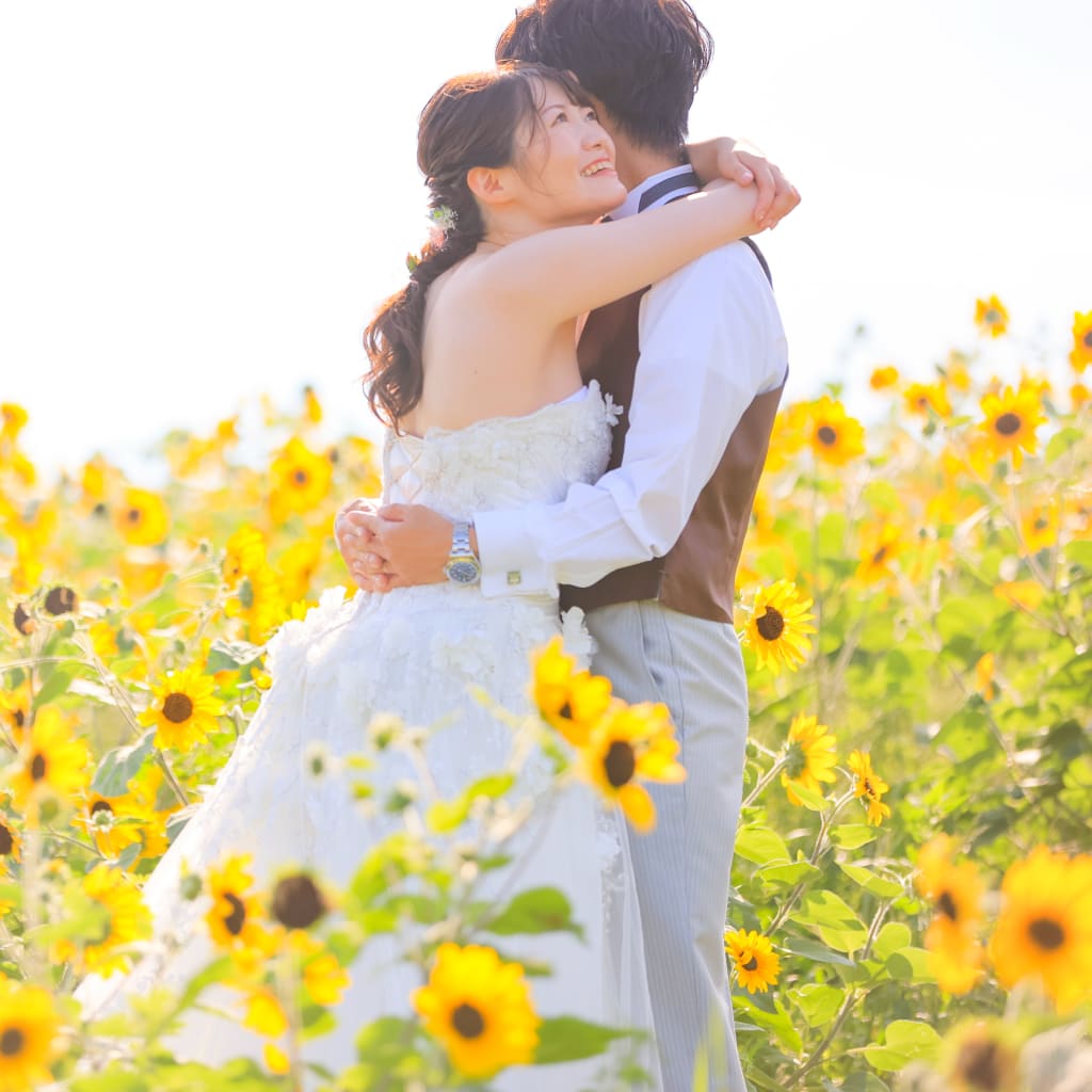 ひまわりの中でのハグカット^^ご新婦様が本当いい笑顔をされていました!!