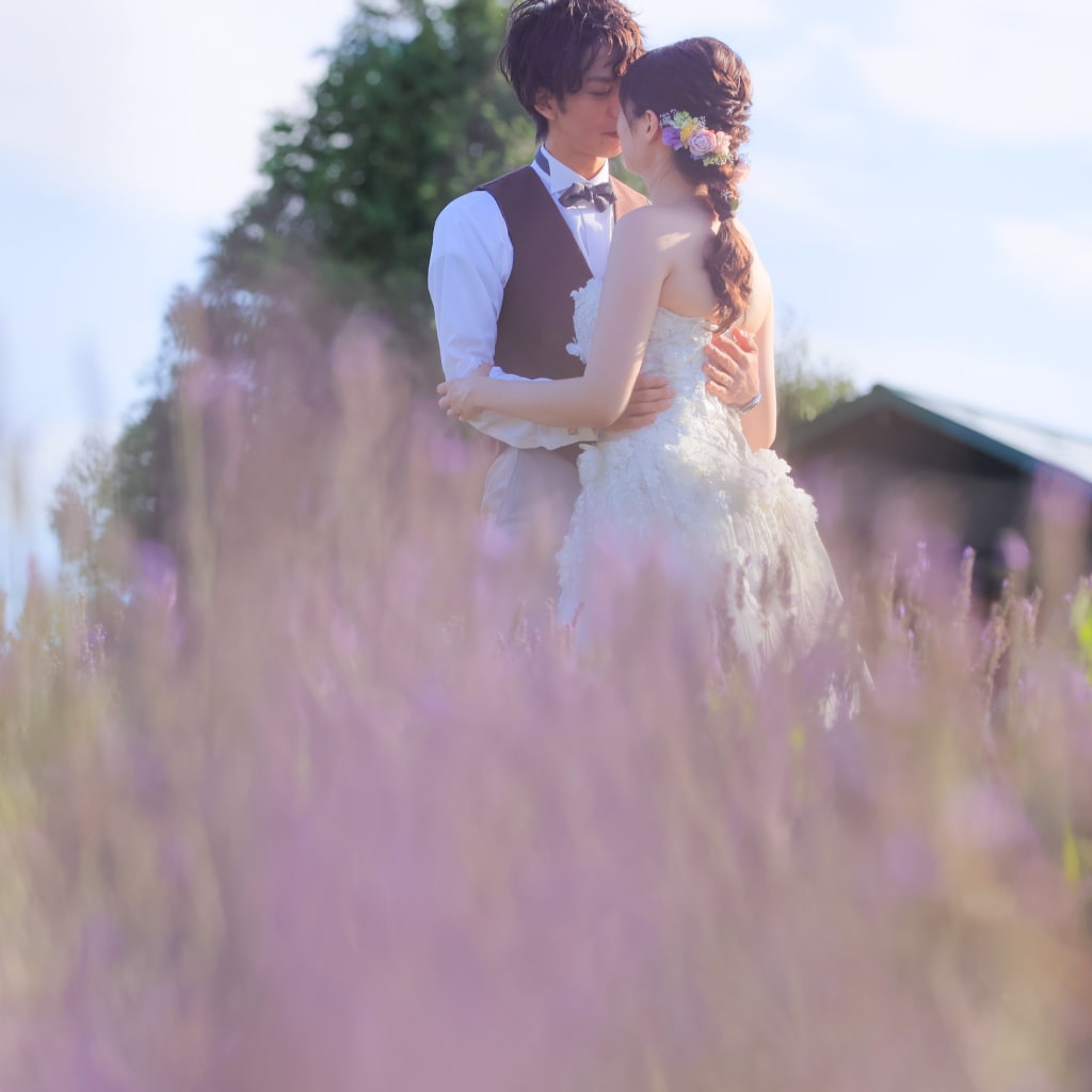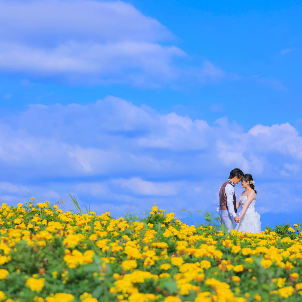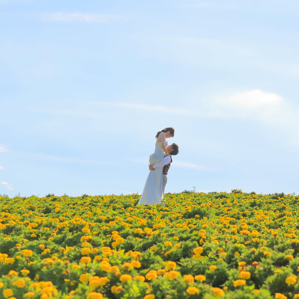 一面に広がる花畑での1枚。なんて贅沢なんでしょうか!空も澄んでいて素敵な1枚に!