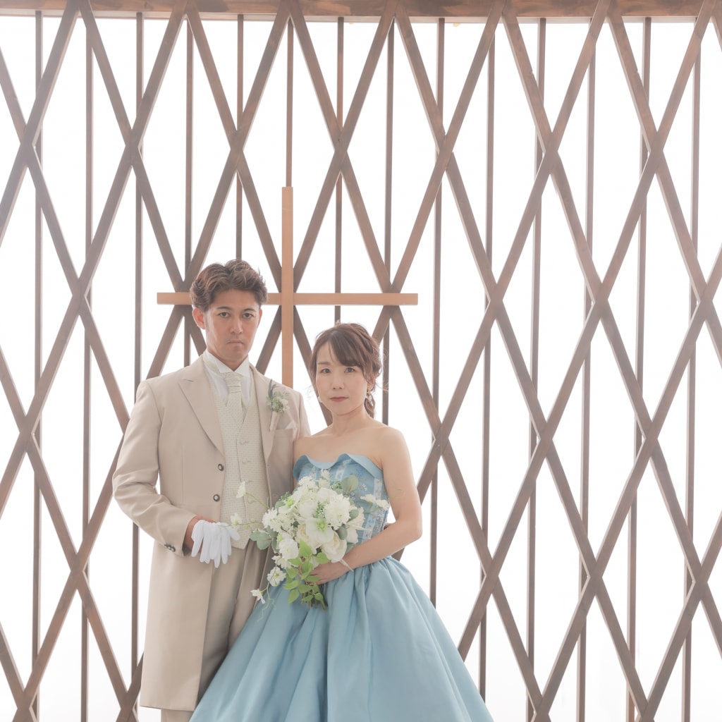 まるで挙式会場のような背景での撮影も叶います♪ 十字架も祝福してくれいるようですね^^