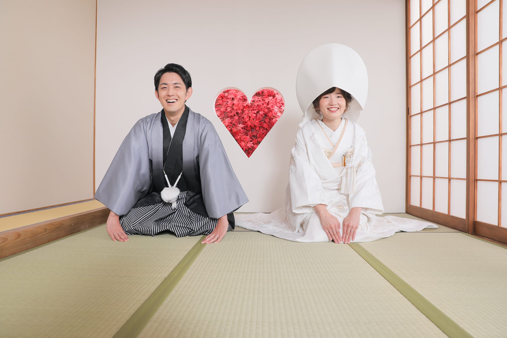 ハート猪目窓から紅葉がちらり♡ 新婦様も綿帽子にチェンジをして雰囲気がガラリと変わりました!
