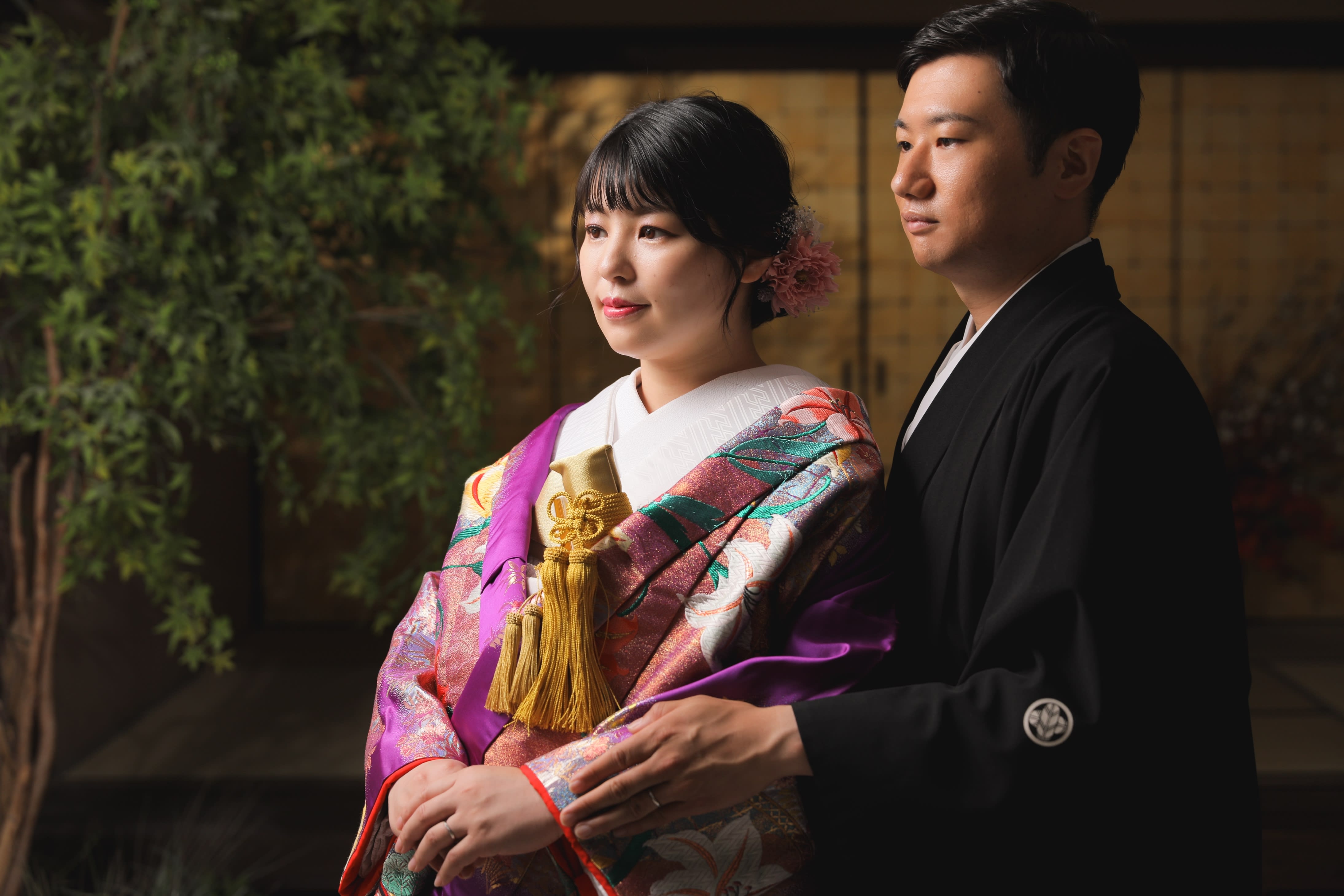和室に上がって、一番フォーマルな立ち姿をお撮りします! 着物も綺麗に振付して整えさせていただきます!