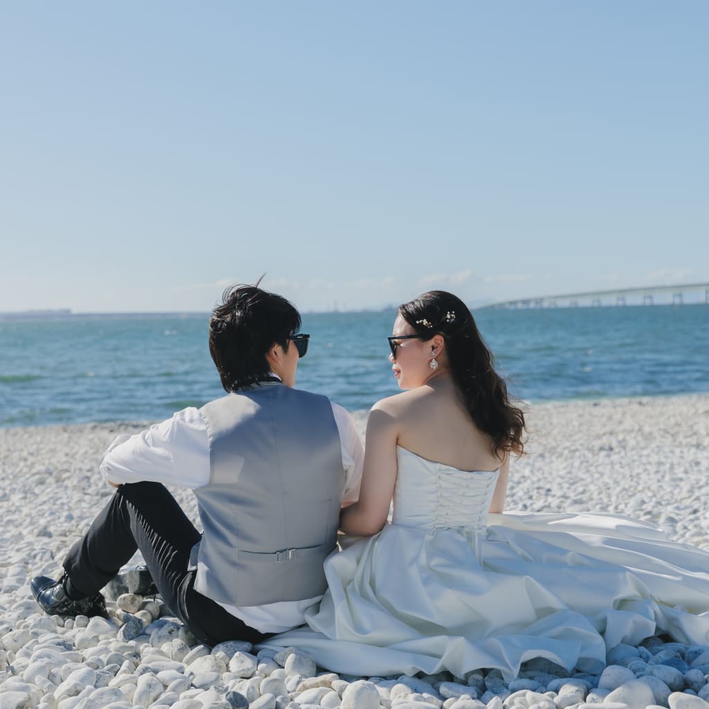 マーブルビーチの色とマッチしたおふたりのイニシャルとても素敵ですね!