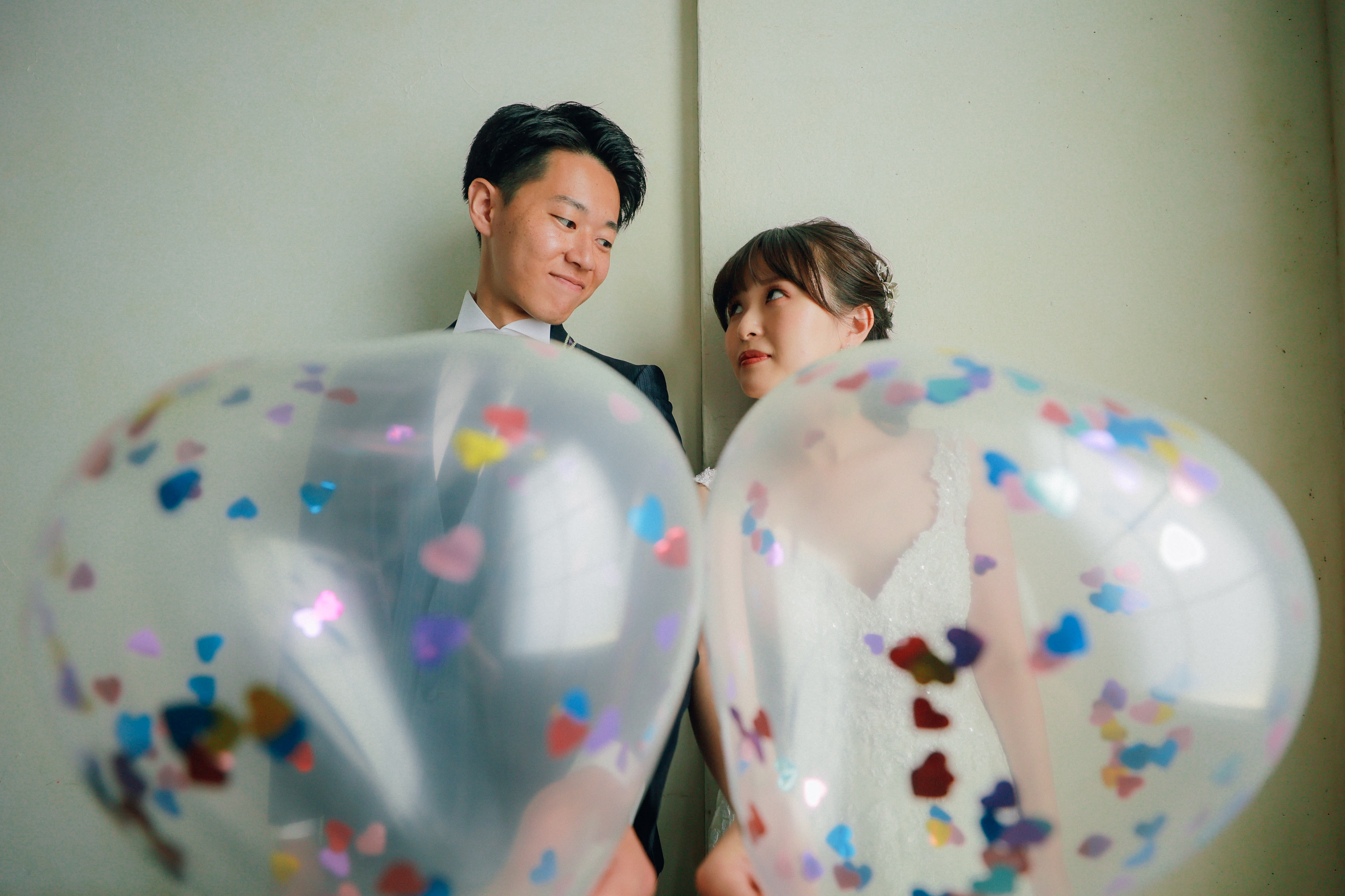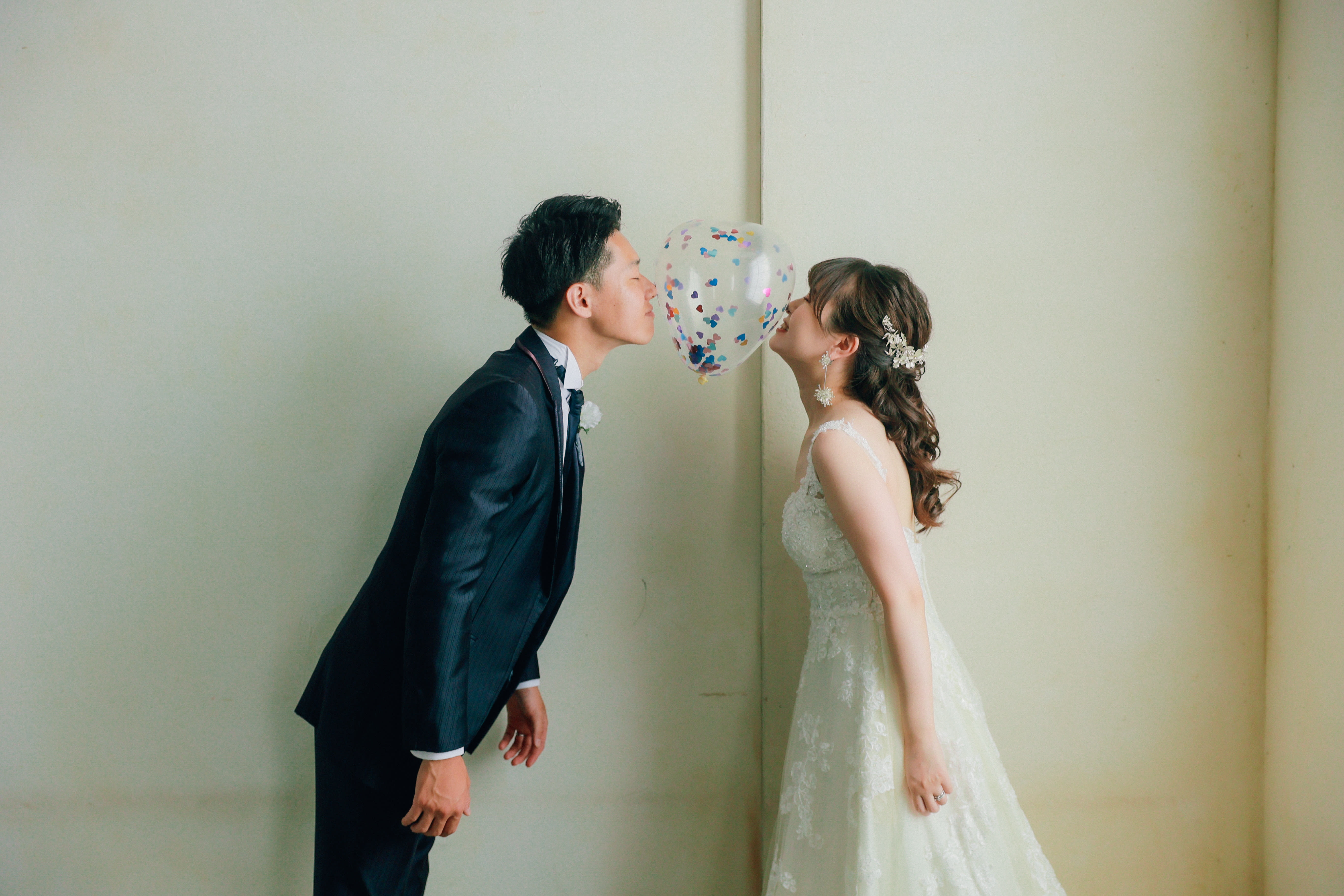 ハートの中にハートがある風船を使って、おふたりらしいお写真も♪