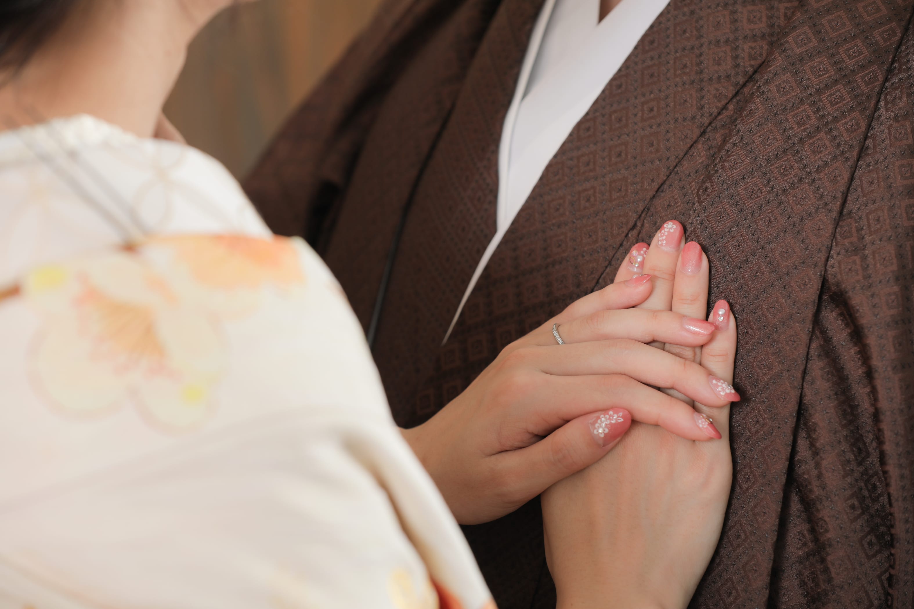 お二人の薬指に輝く結婚指輪が眩しいです! 手元の写真越しの二人の笑顔もとっても素敵ですね:)