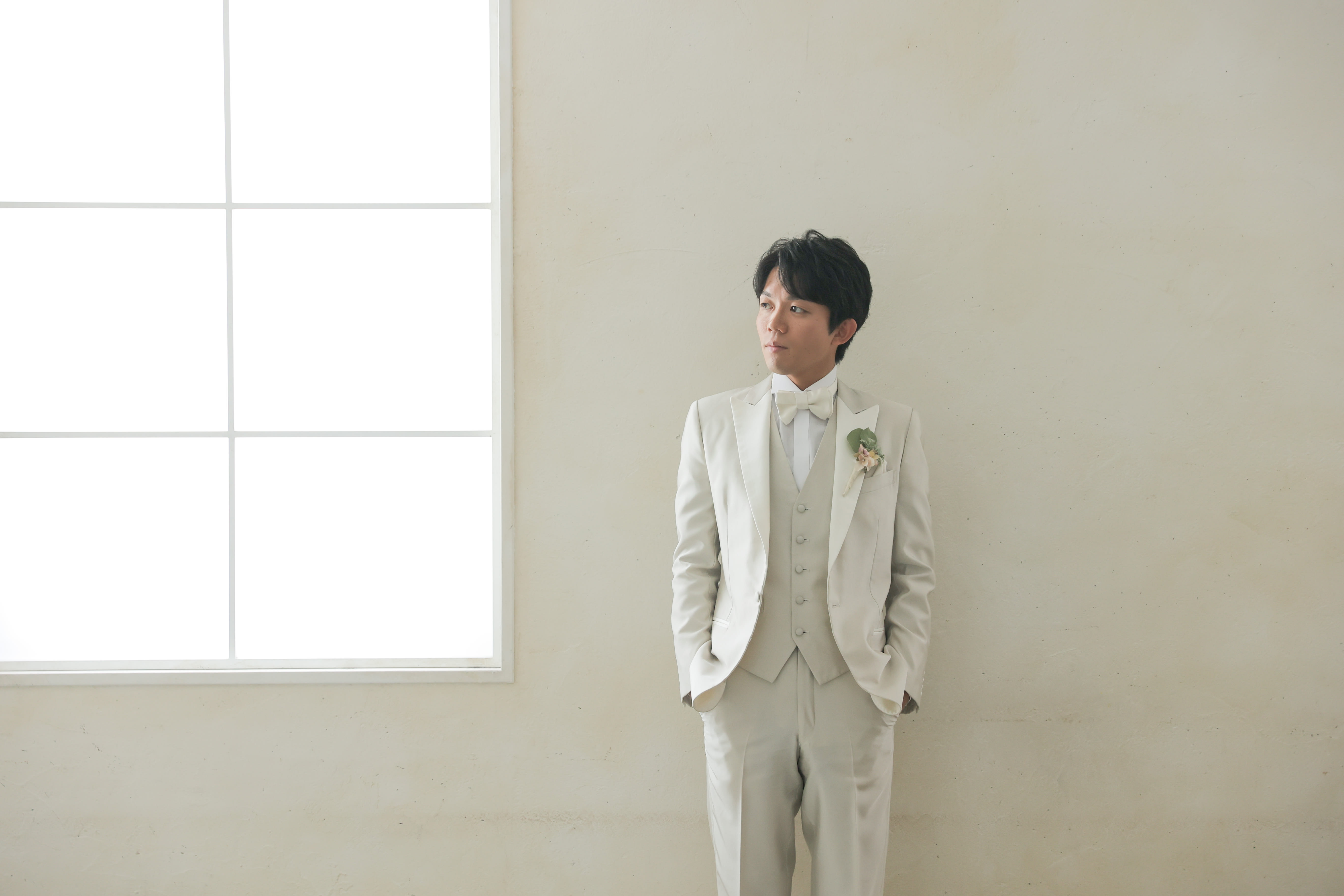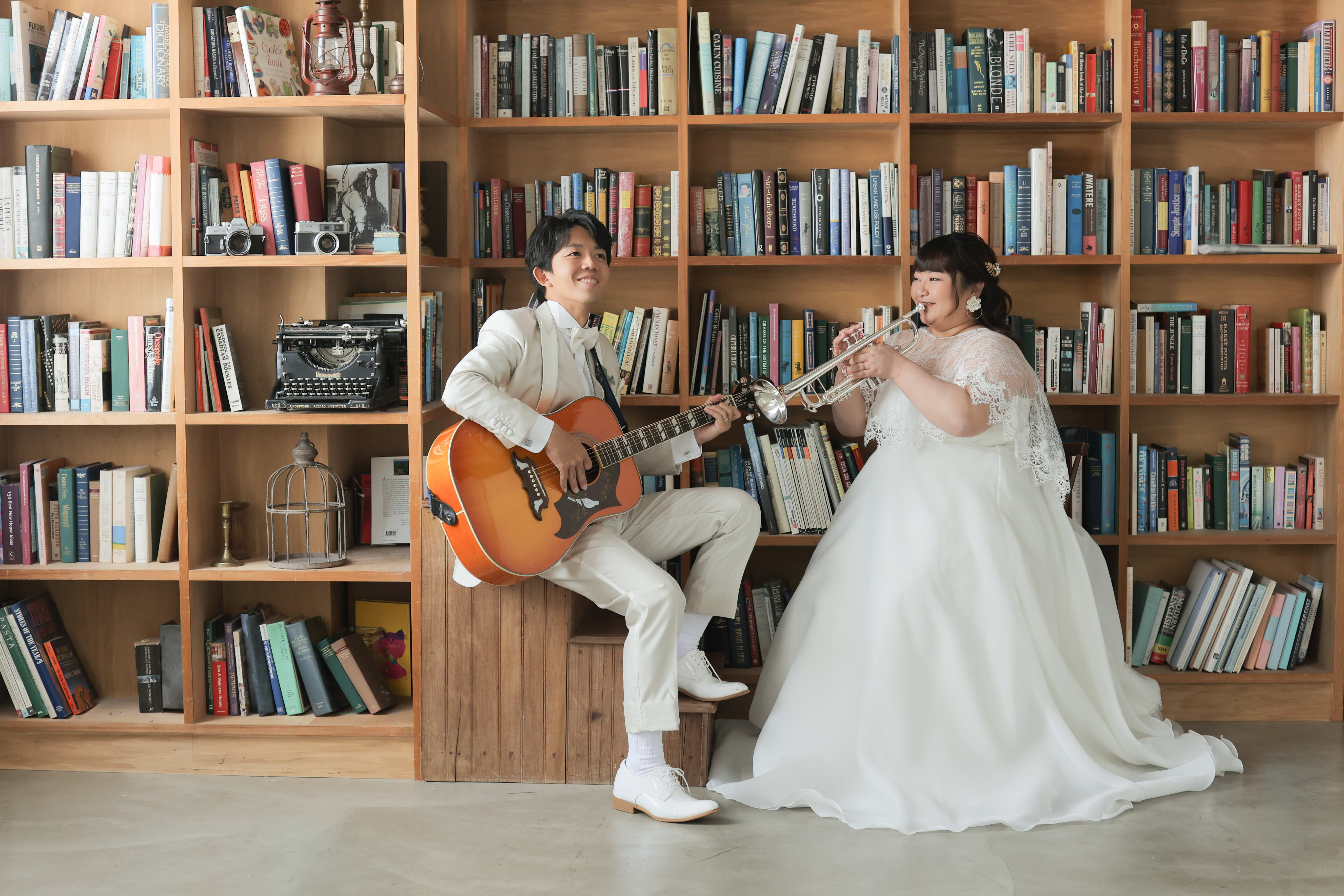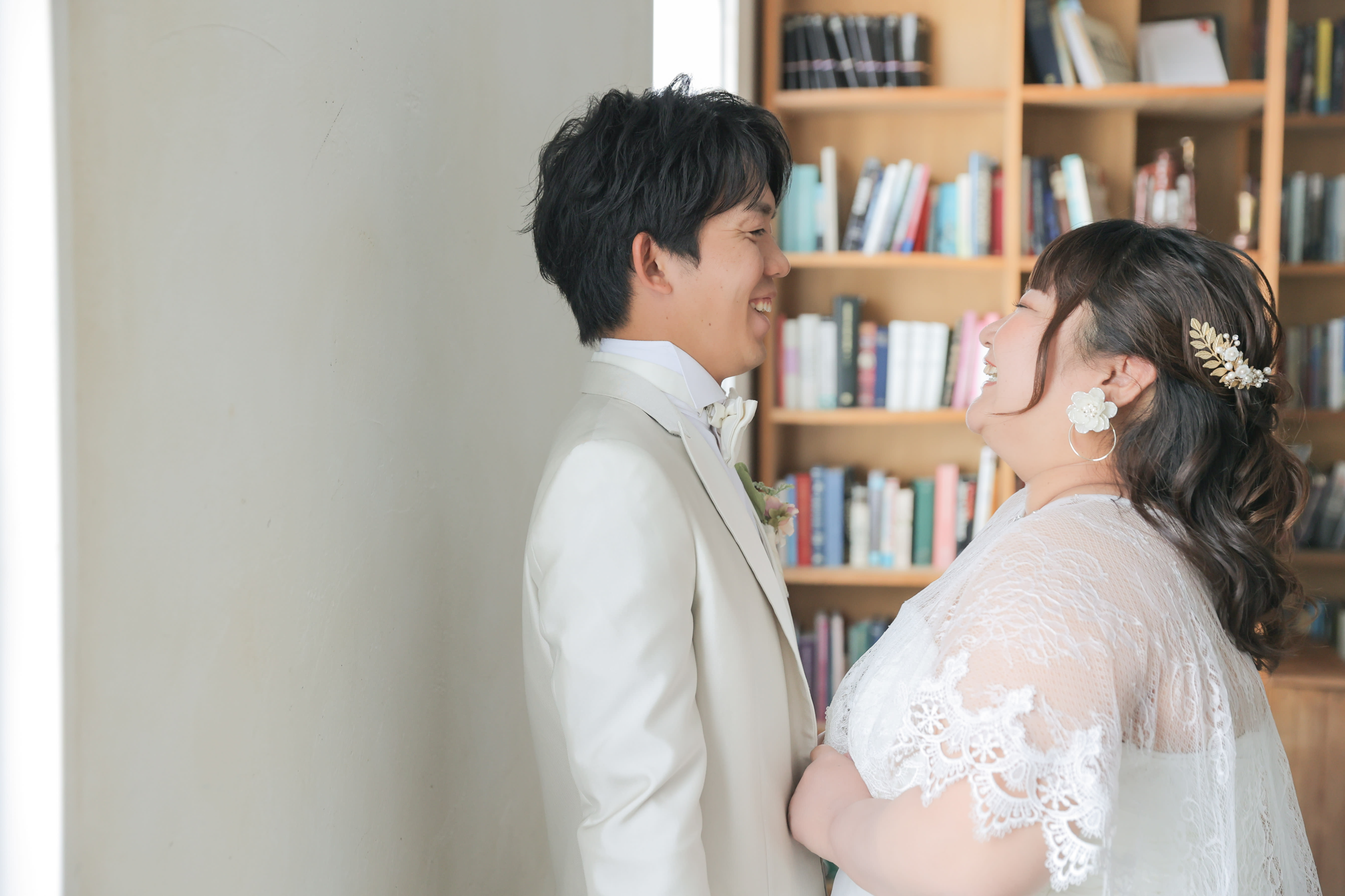 おしゃれなハウススタジオで撮影するウェディングフォト。