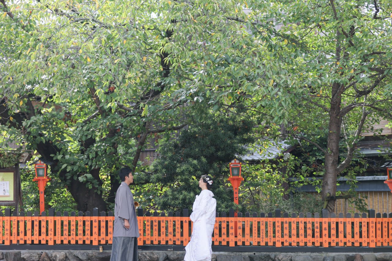 白川橋の前は朱色の柵があり撮影スポットになっています♪