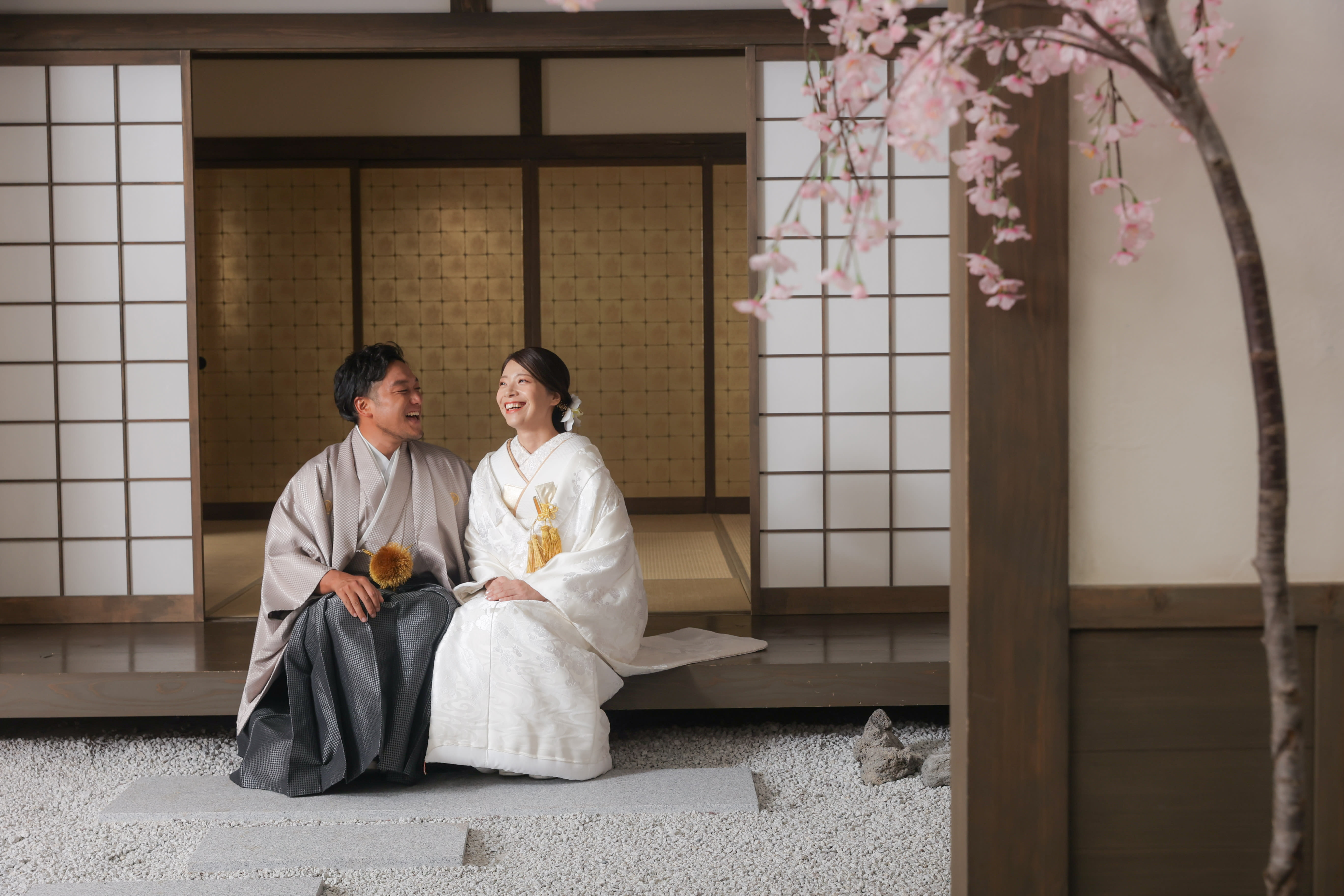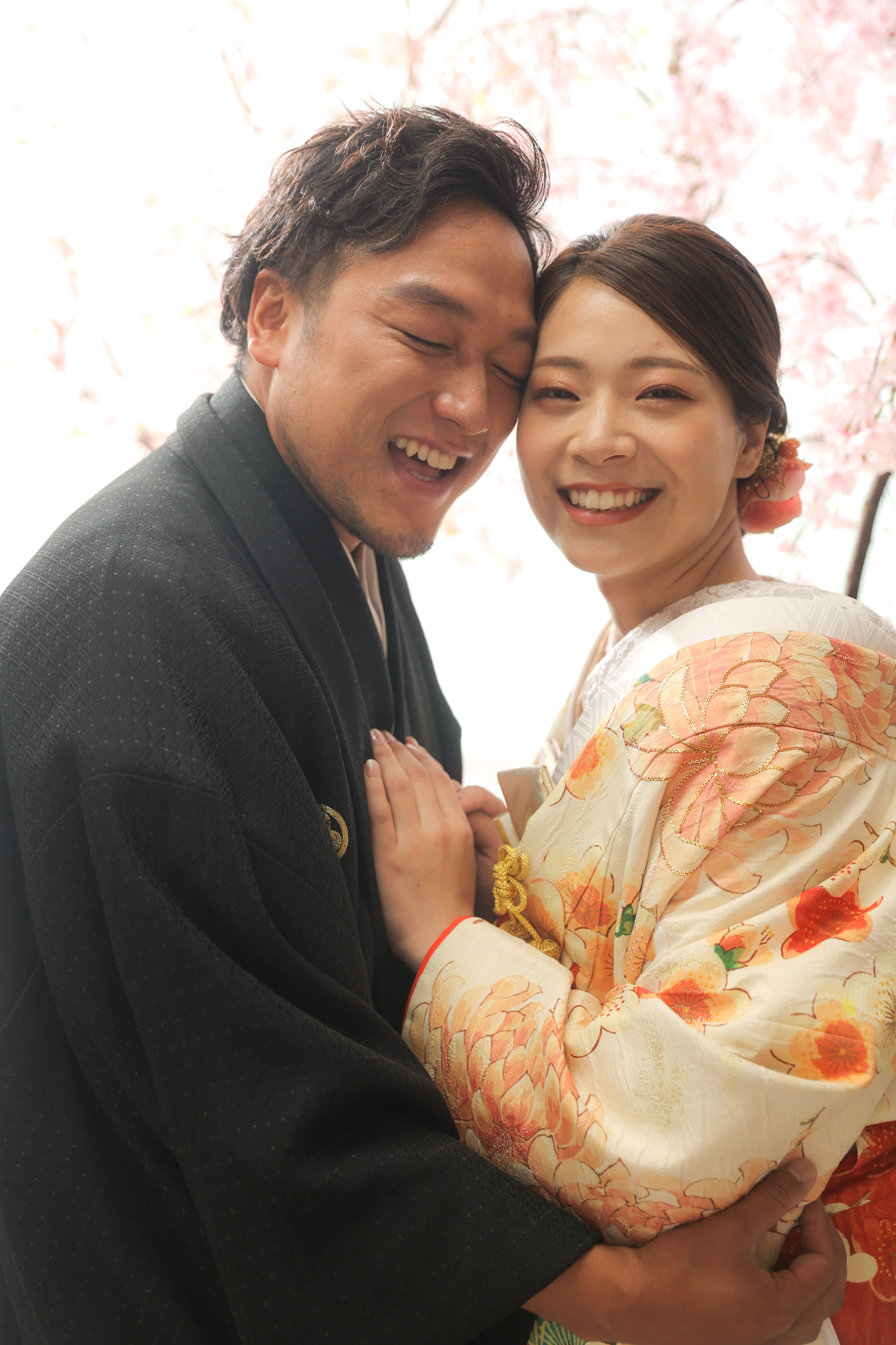 桜のフレームに包み込まれ、お二人がより際立っていますね!