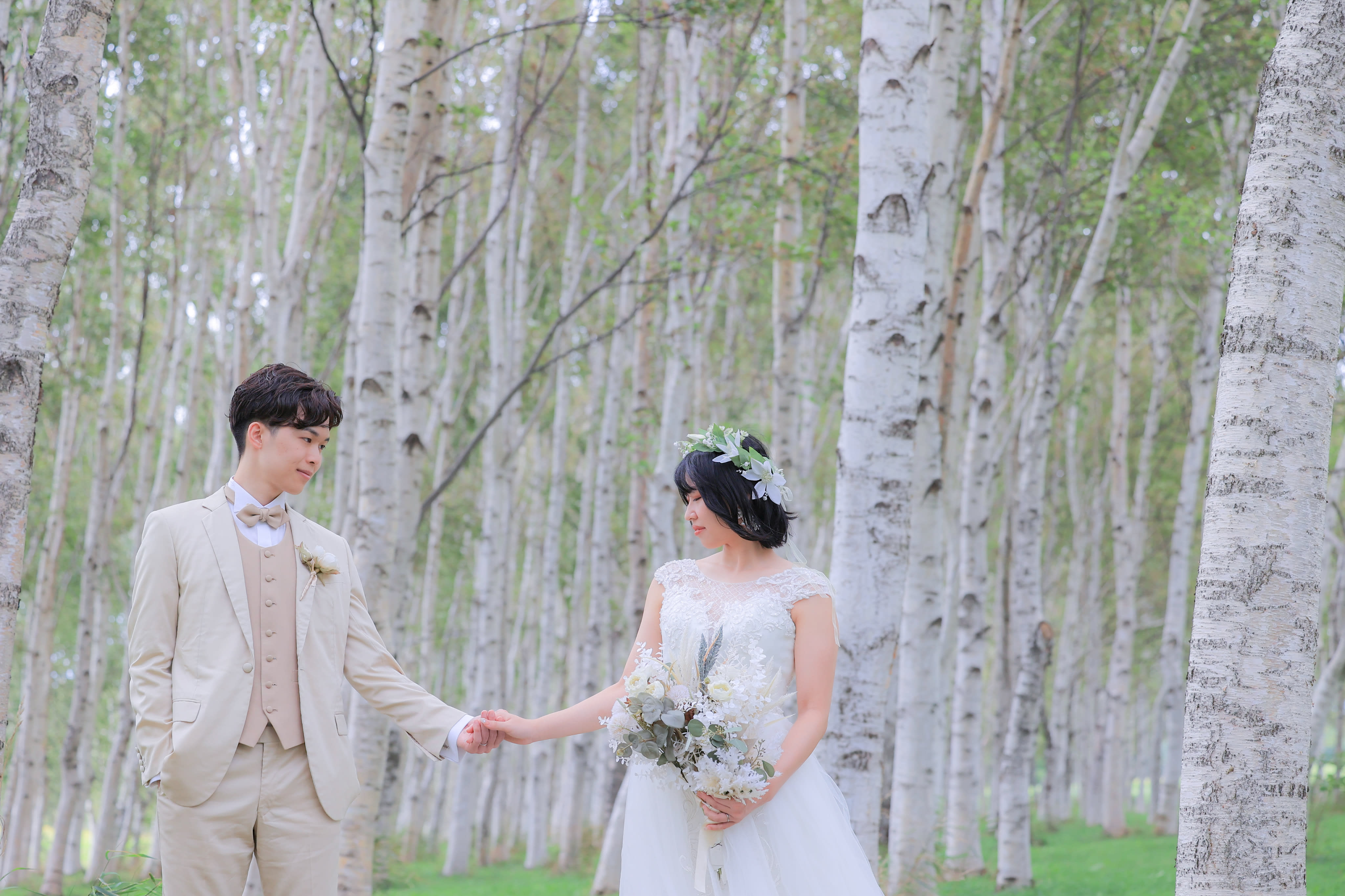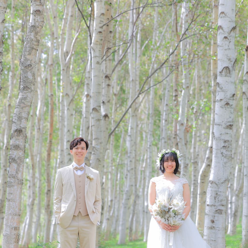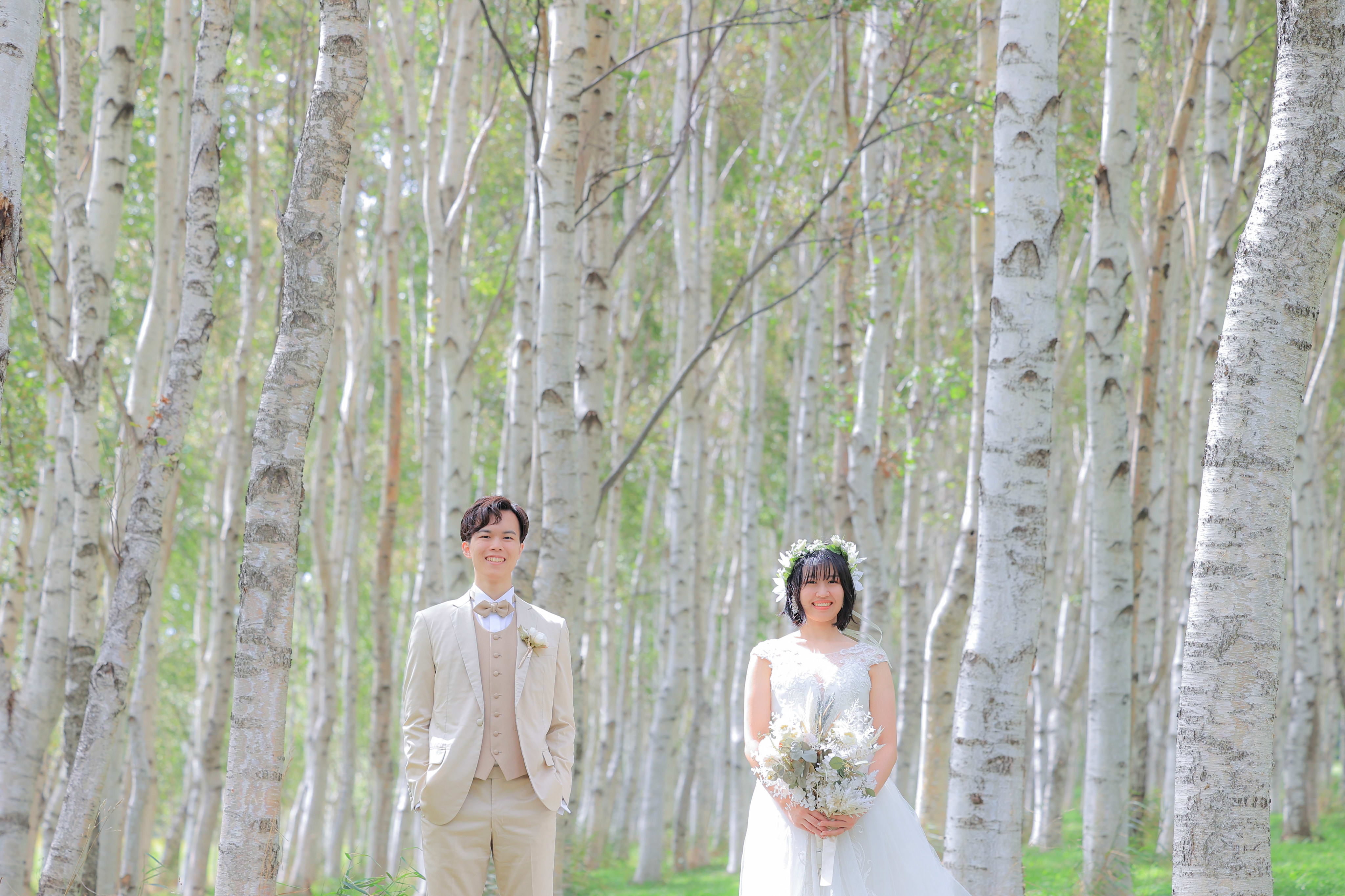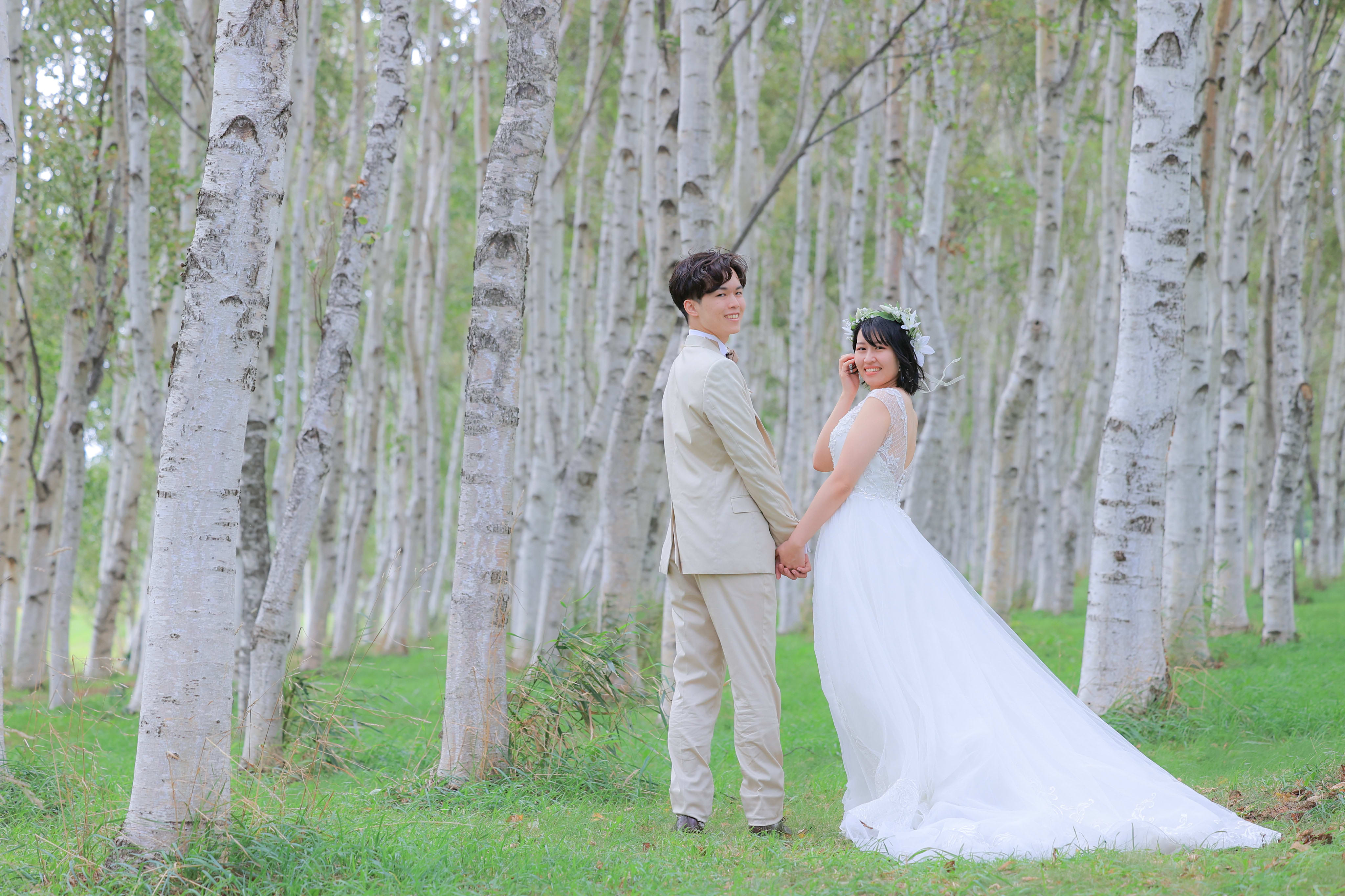 白樺並木は北海道ならではの1枚が撮れるので必見ですよ!手を取り合う2人が可愛かったです♫