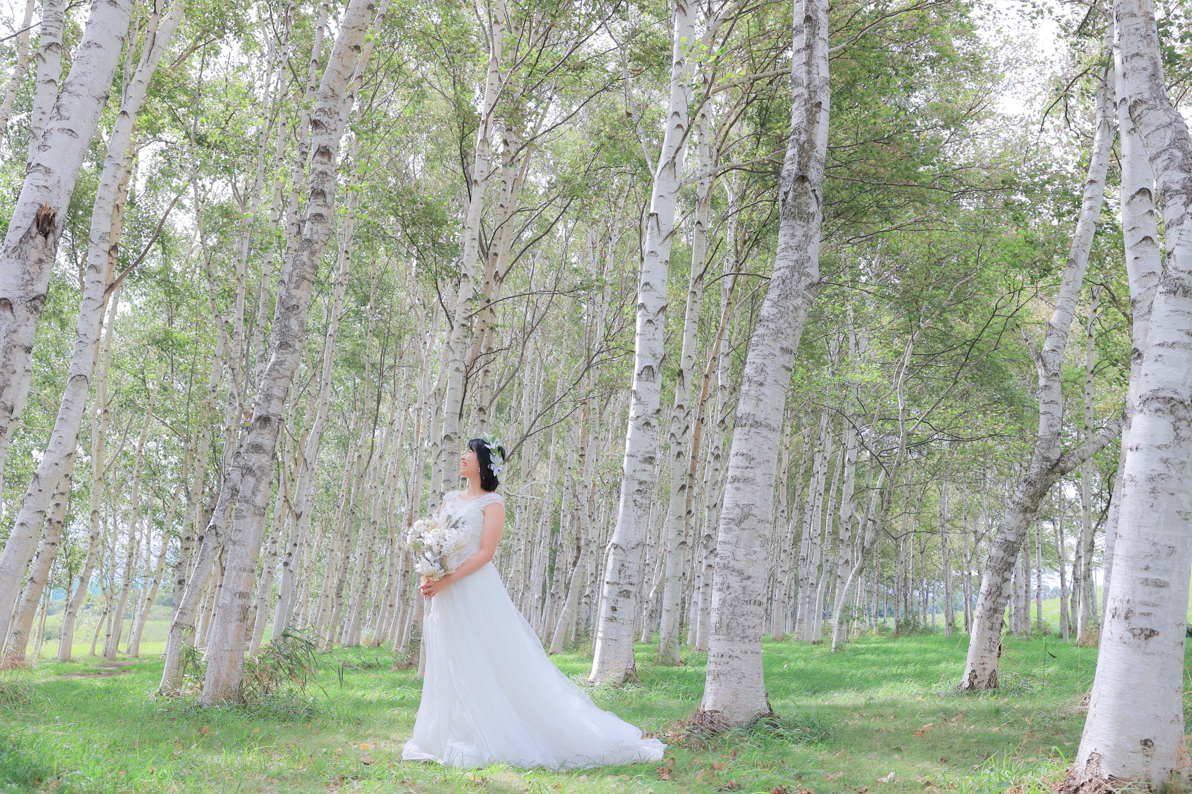 壮大な白樺並木でのcoolな1枚も!いろんなバリエーションで残せます^^