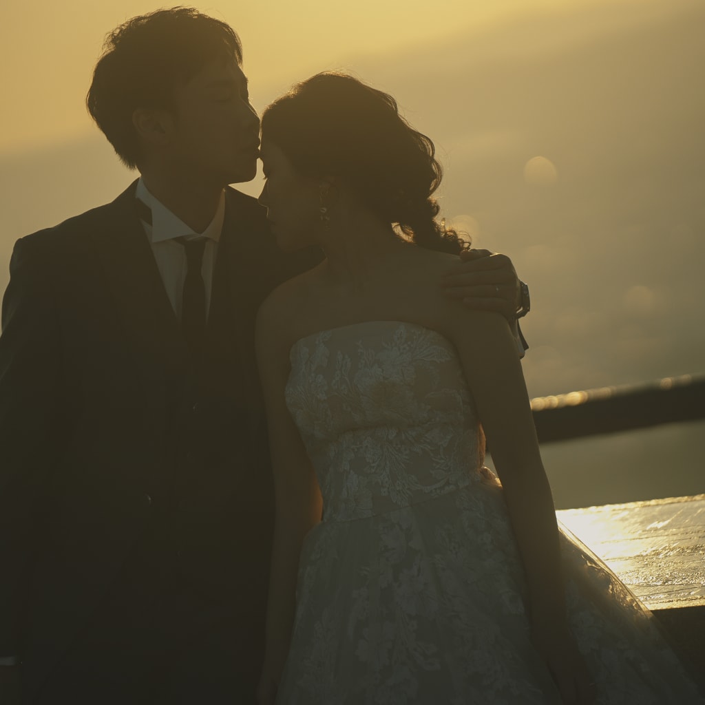 まるで空の上にいるようですね♪ 夕日の柔らかい光が演出の雰囲気を変えてくれています♪