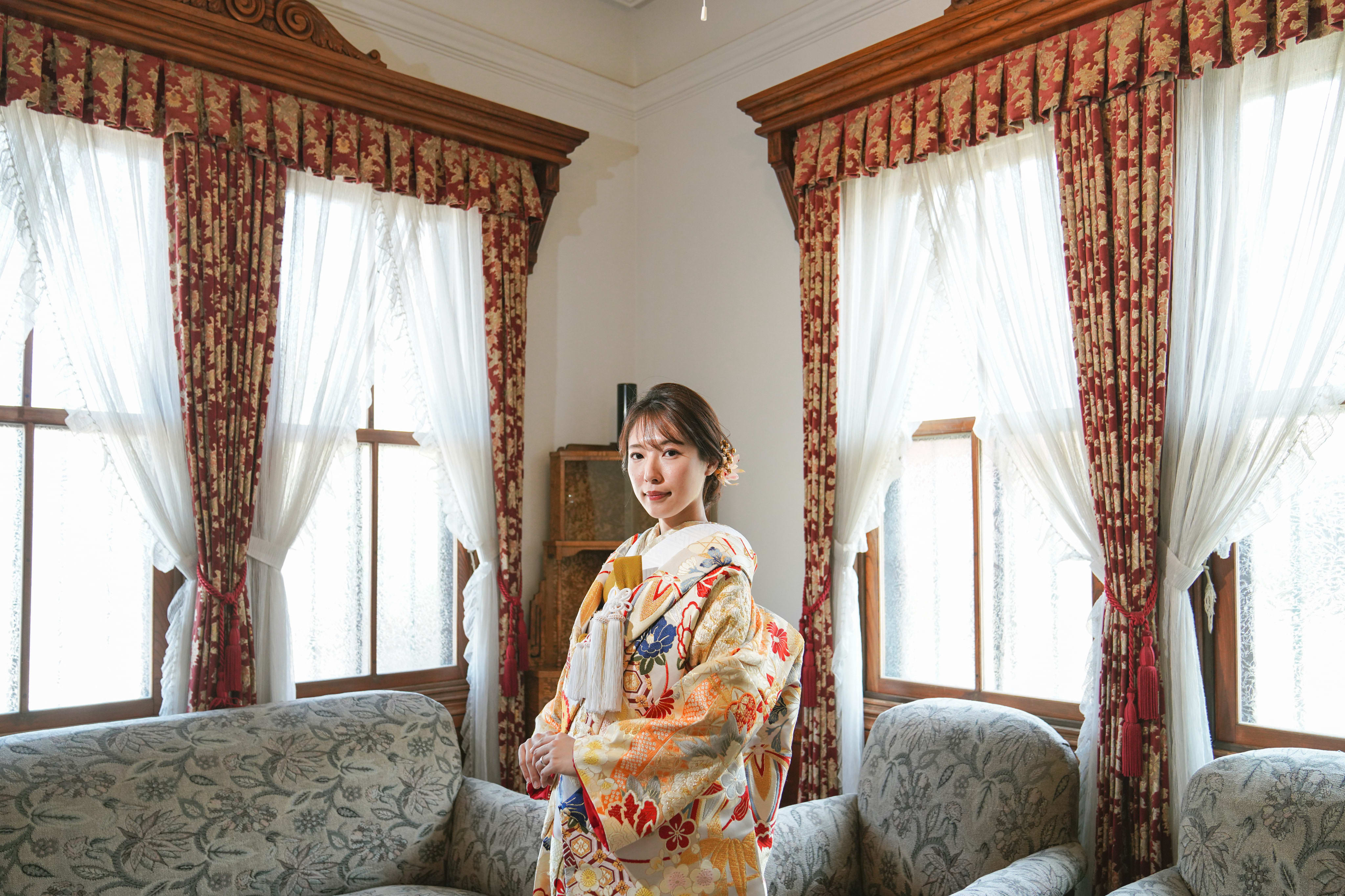 歴史を感じる建物と残すこともできるので和装との相性ぴったりですね!!