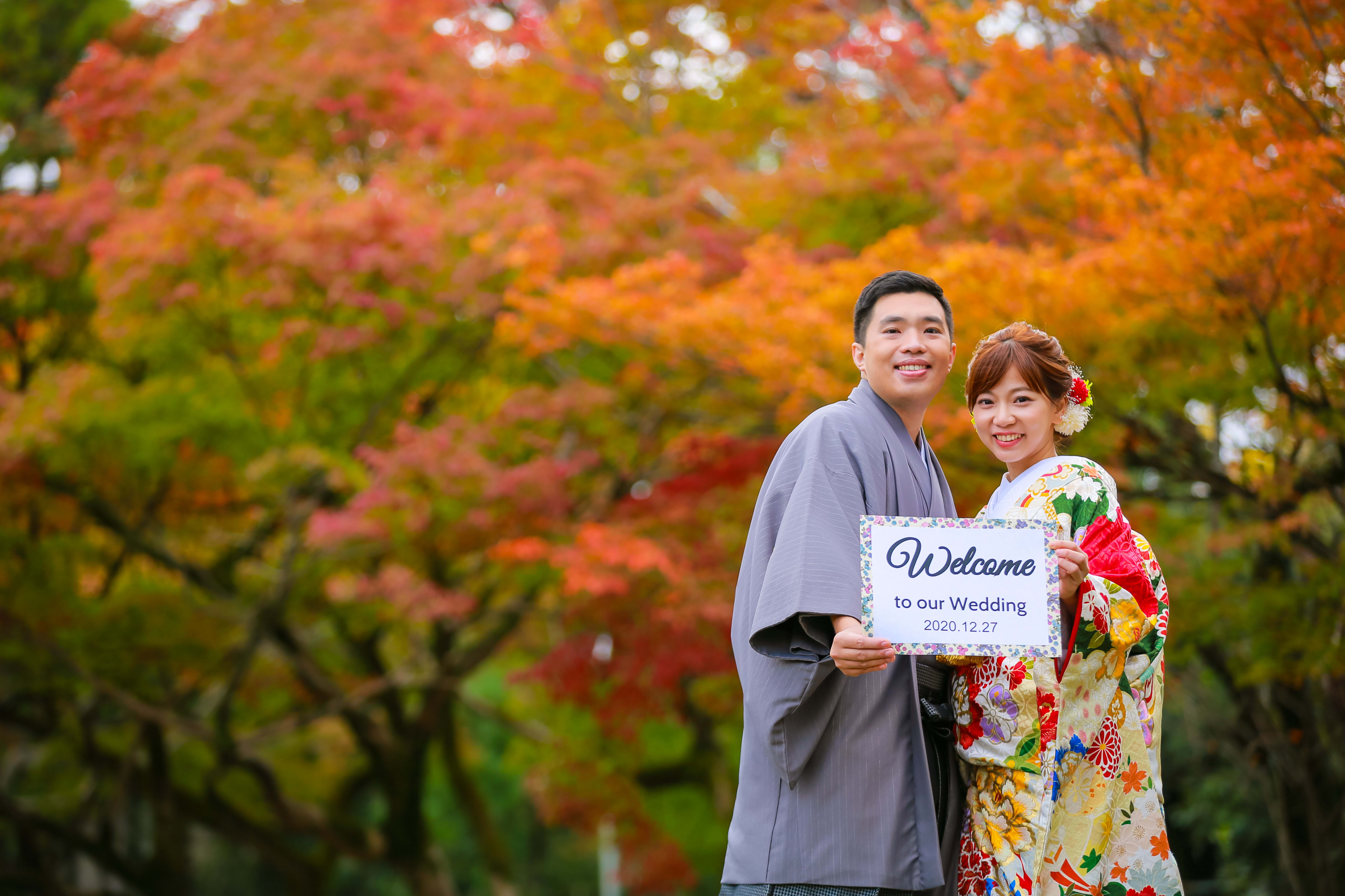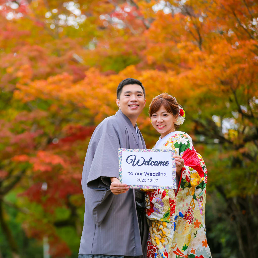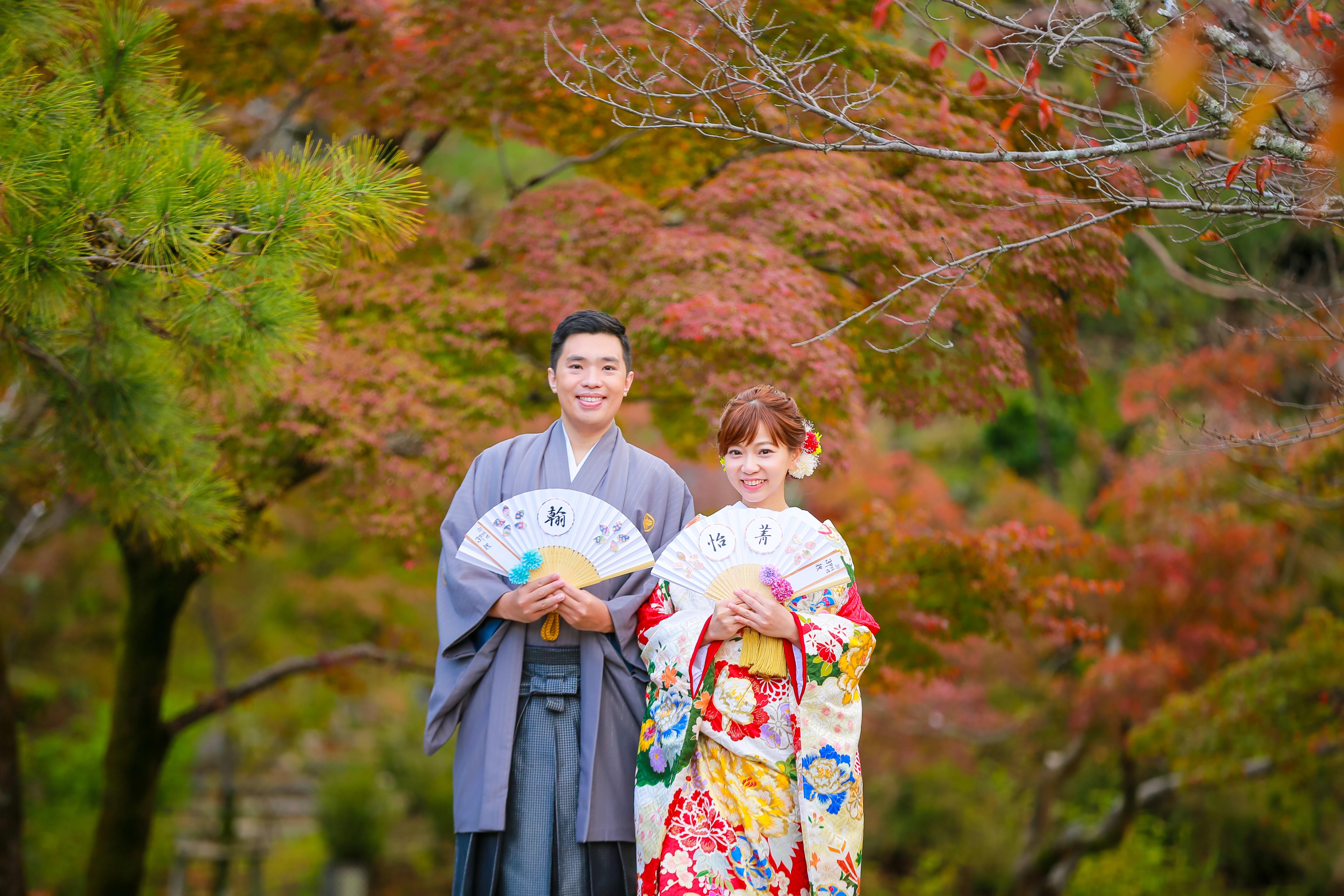 どこを歩いても色づいた景色が広がっています♪「和」の演出もできて素敵なお写真になりました!!