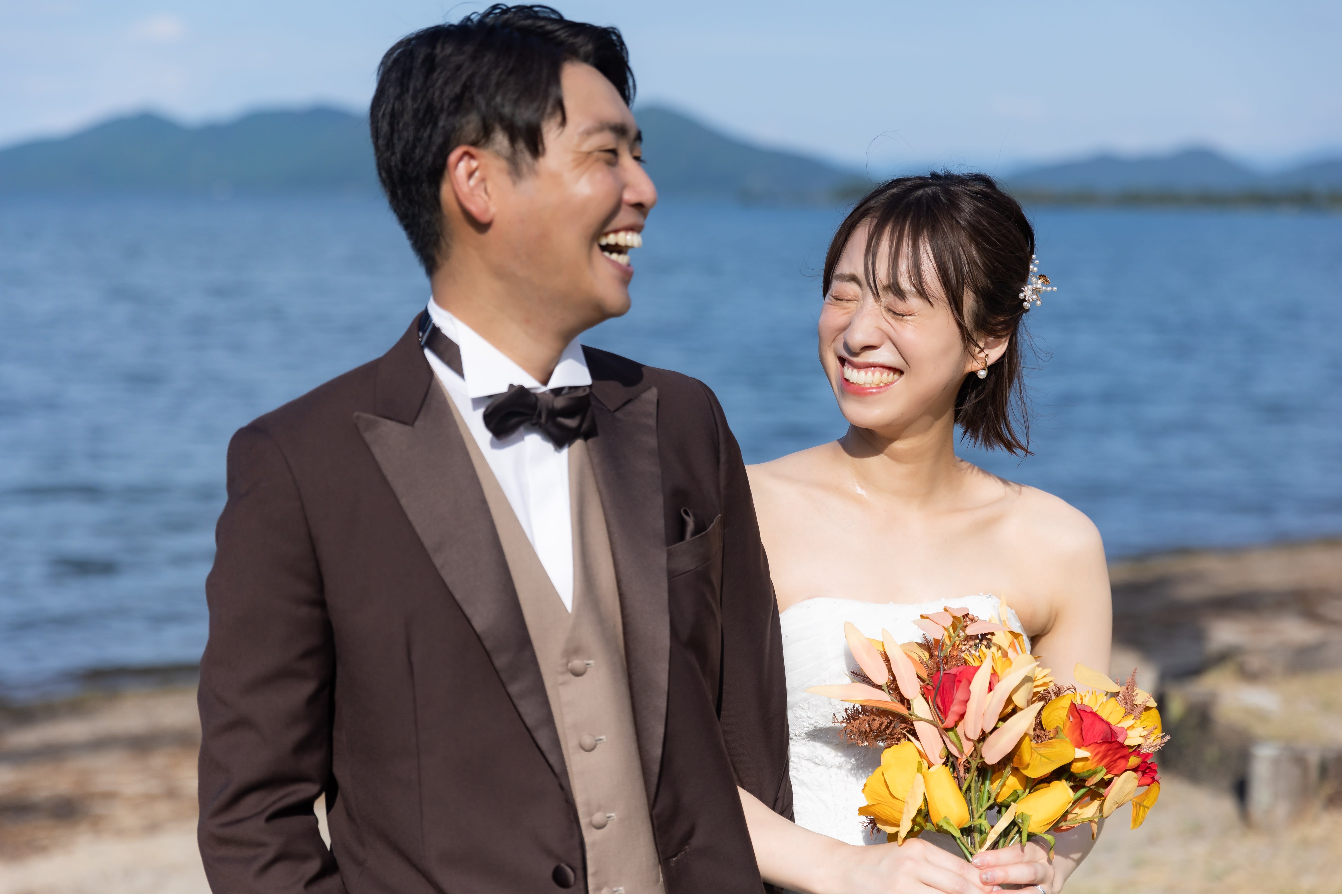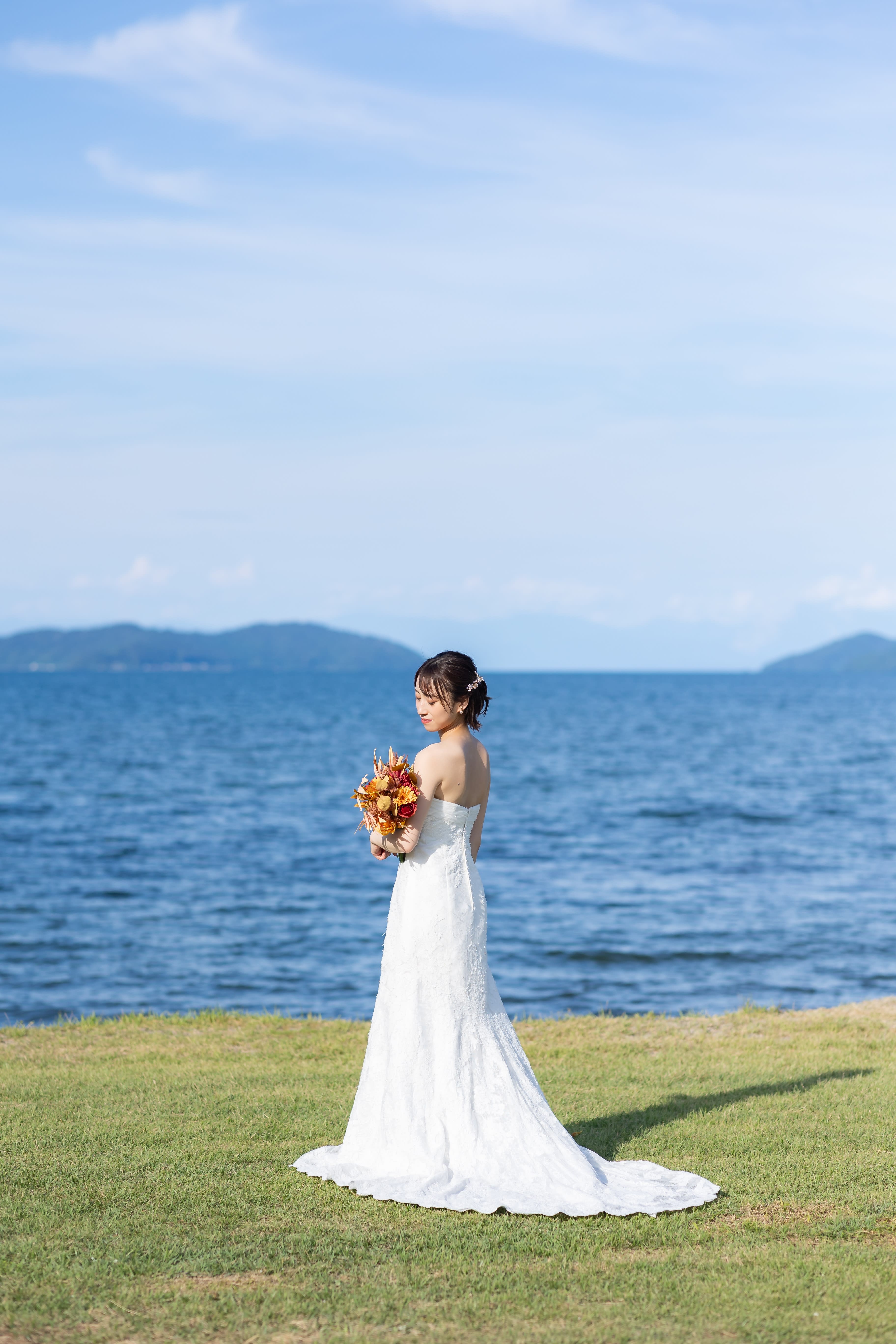 輝く水面に負けないほどキラキラした新婦様のお一人カット♡