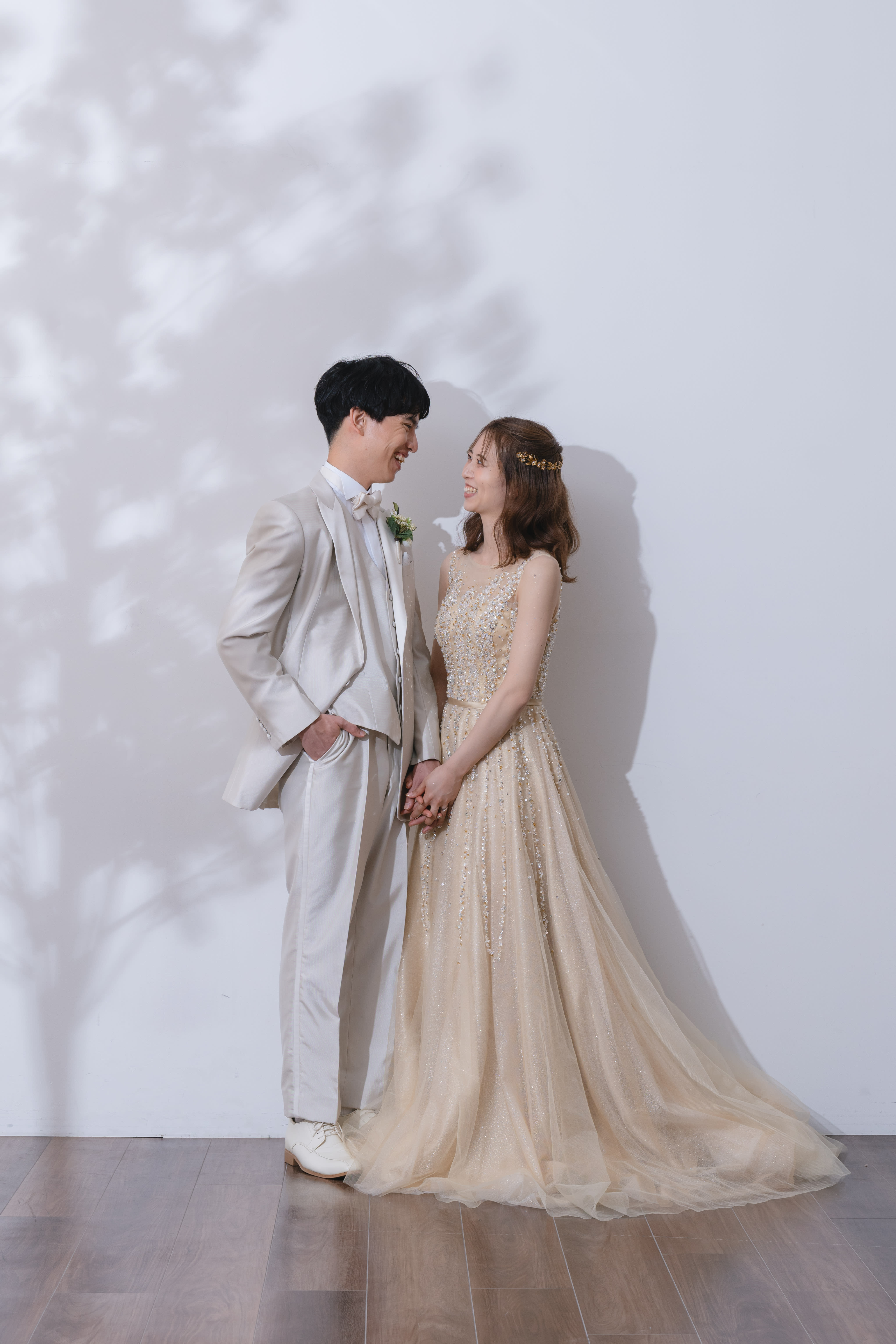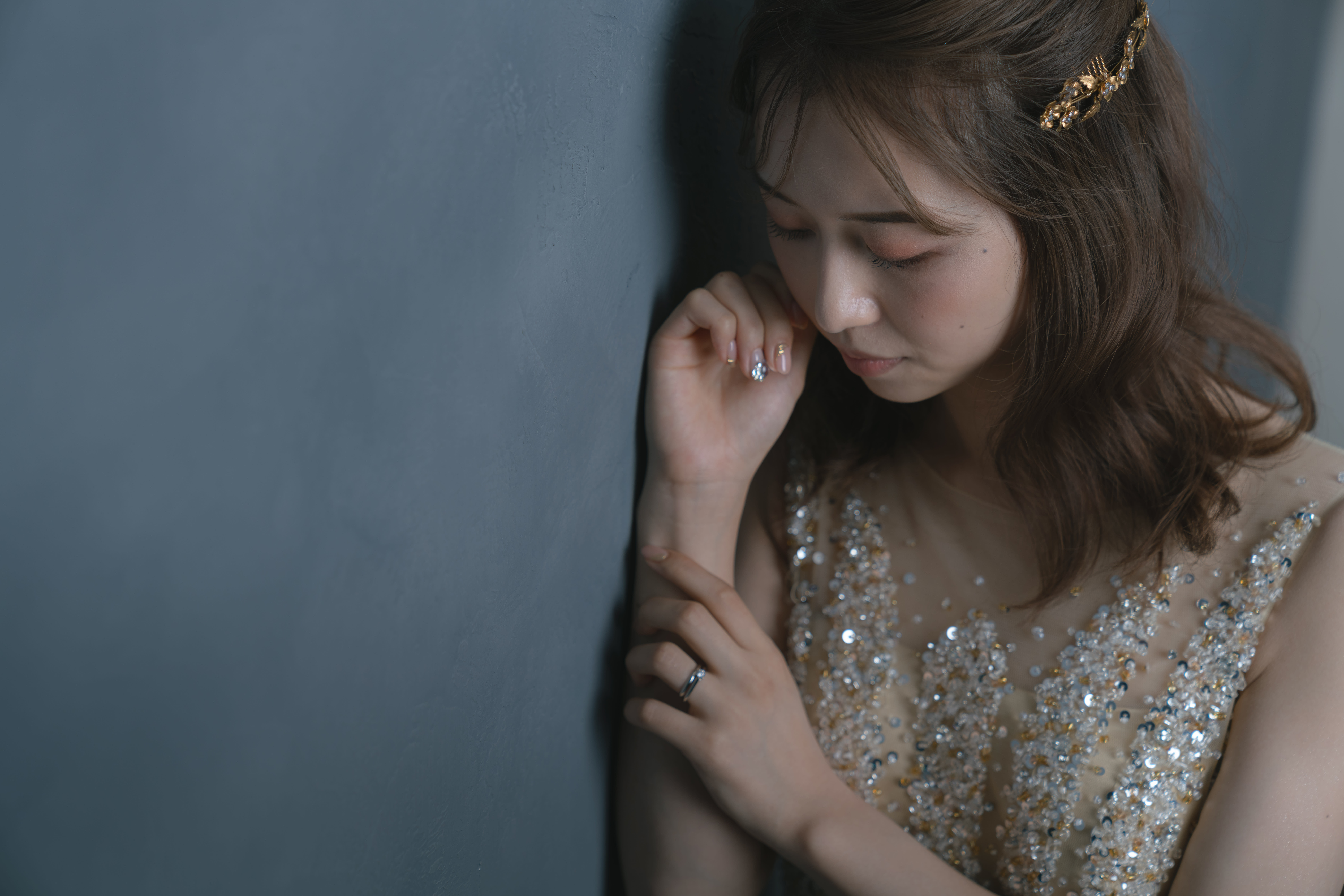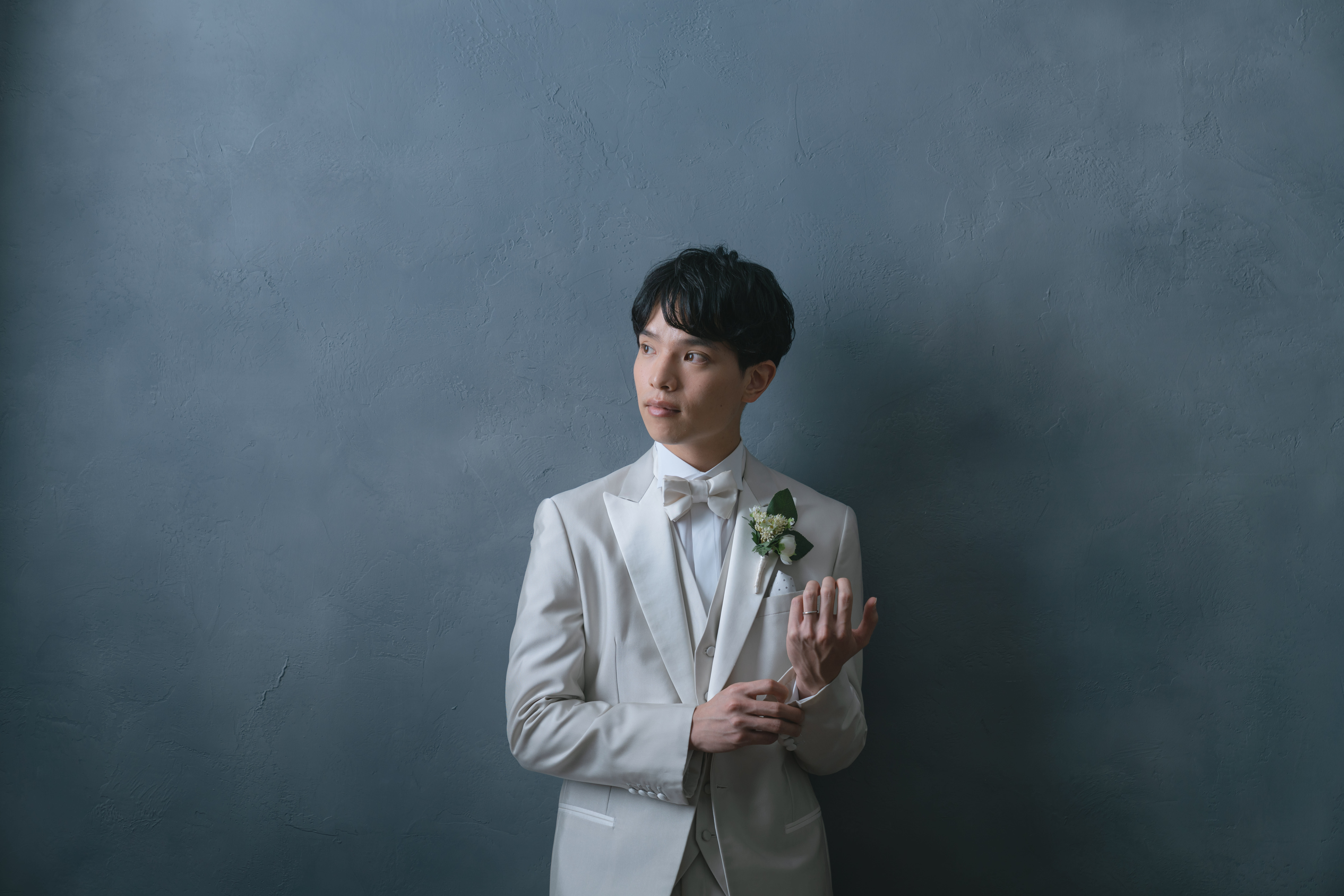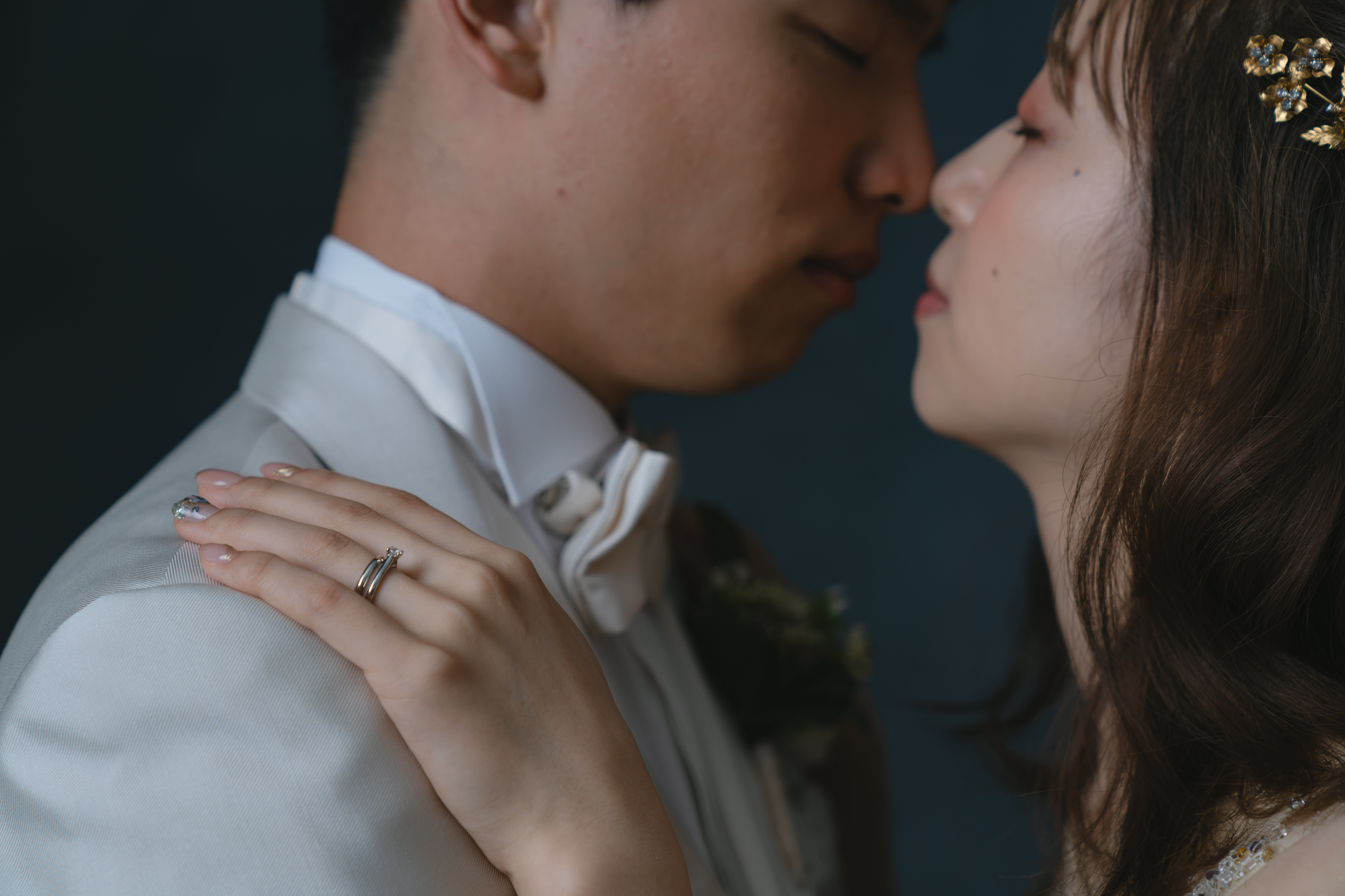 大人っぽい雰囲気のお二人。グレーの壁を使って落ち着いた雰囲気のお写真を残しました!