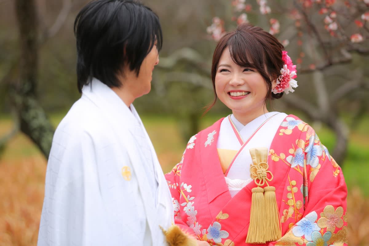 梅の花の色と、新婦様の色打掛の色がぴったり・・・!