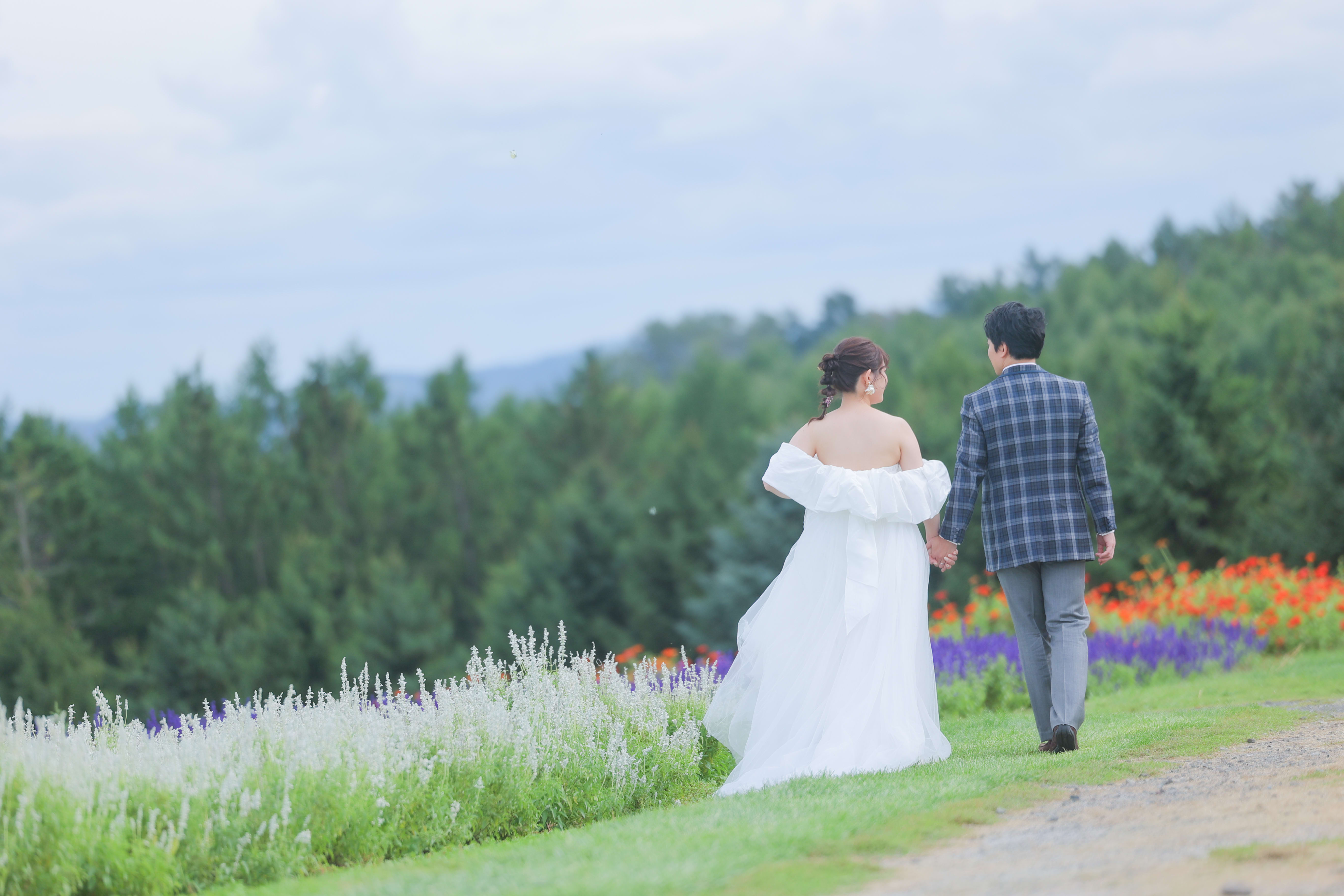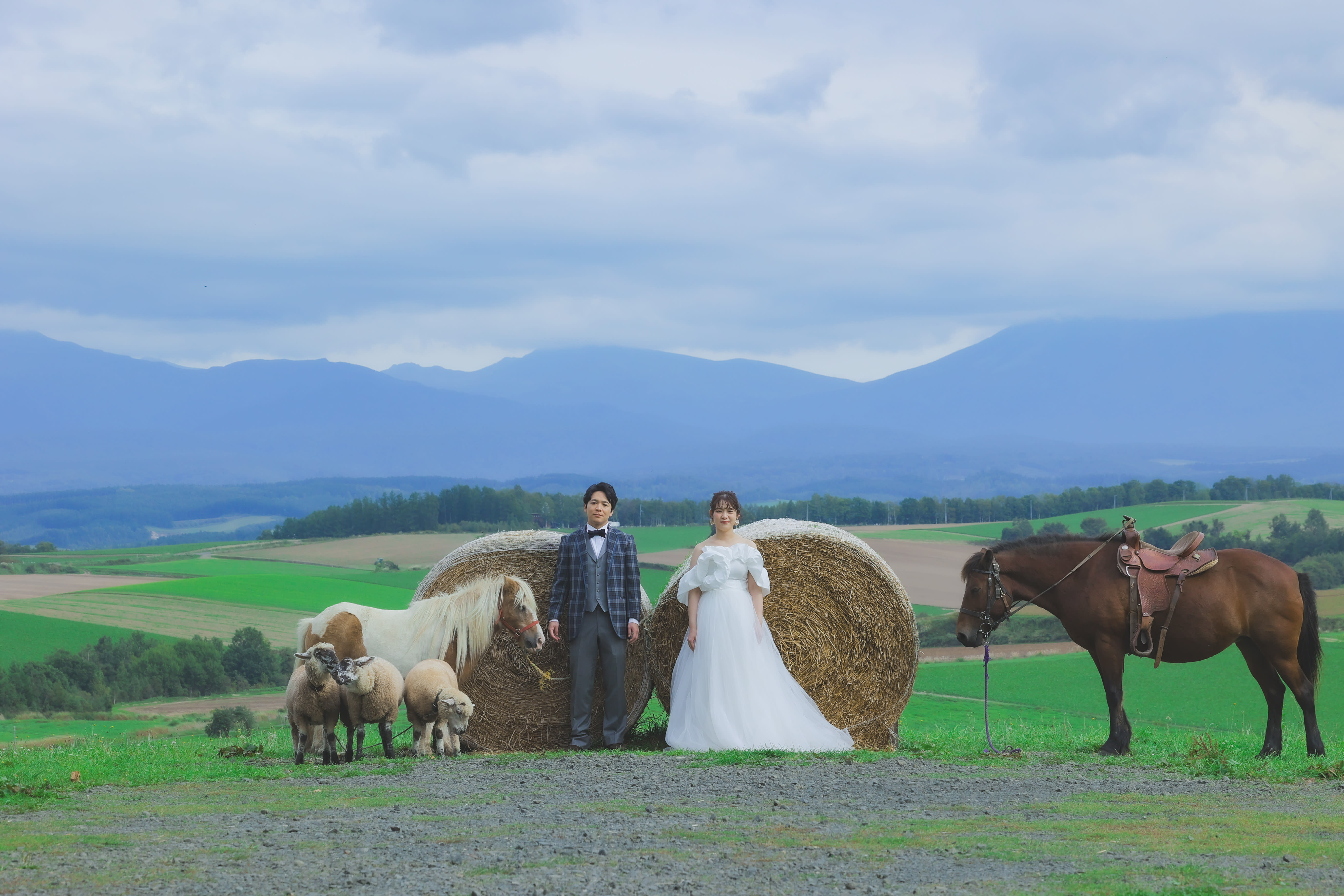 牧場とお花畑で | デコルテフォトグラフィー | 前撮り・フォトウェディング