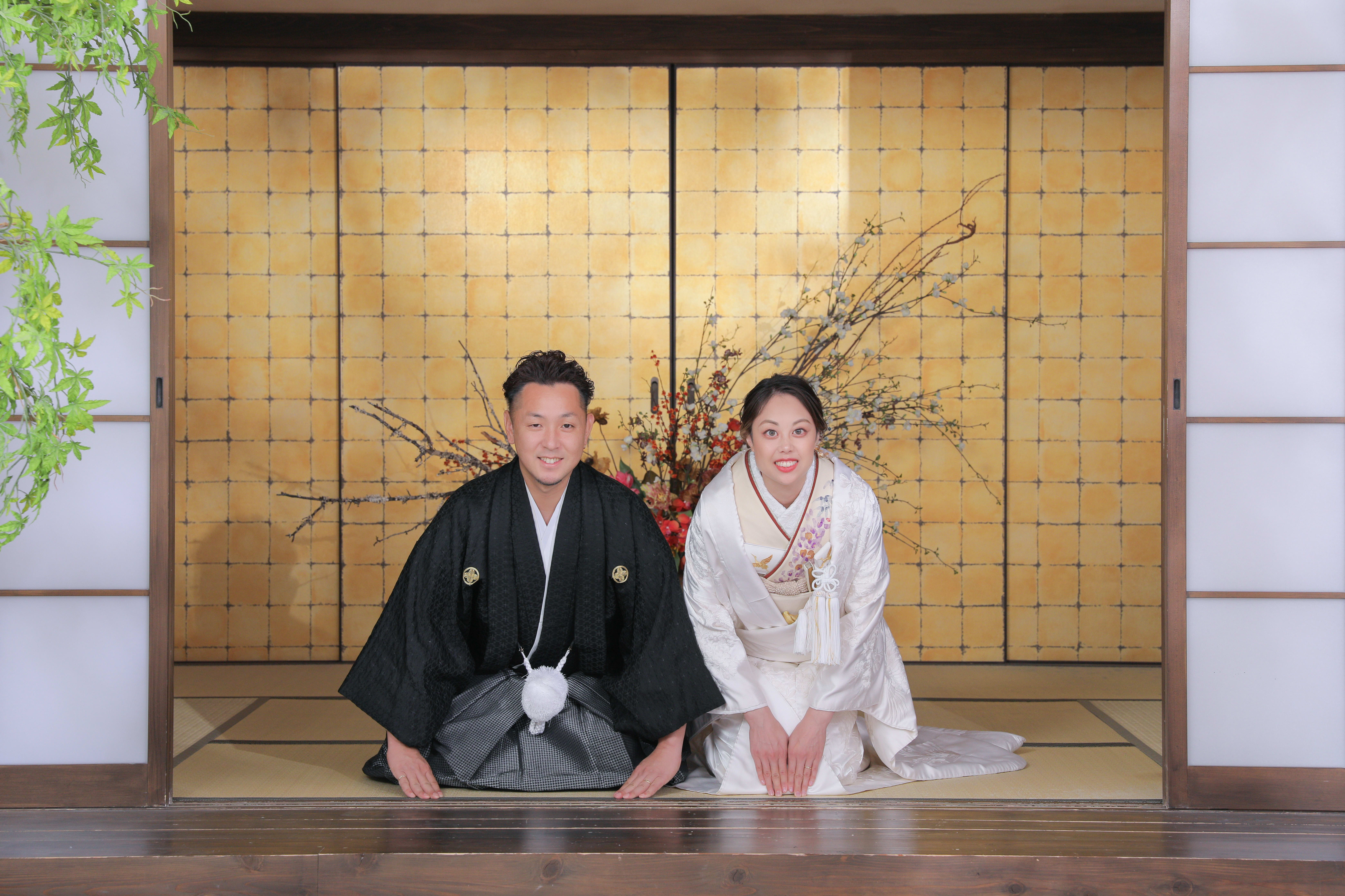 ご新郎様のお外バージョンは、縁側に腰掛けていただきモノクロで撮りました!