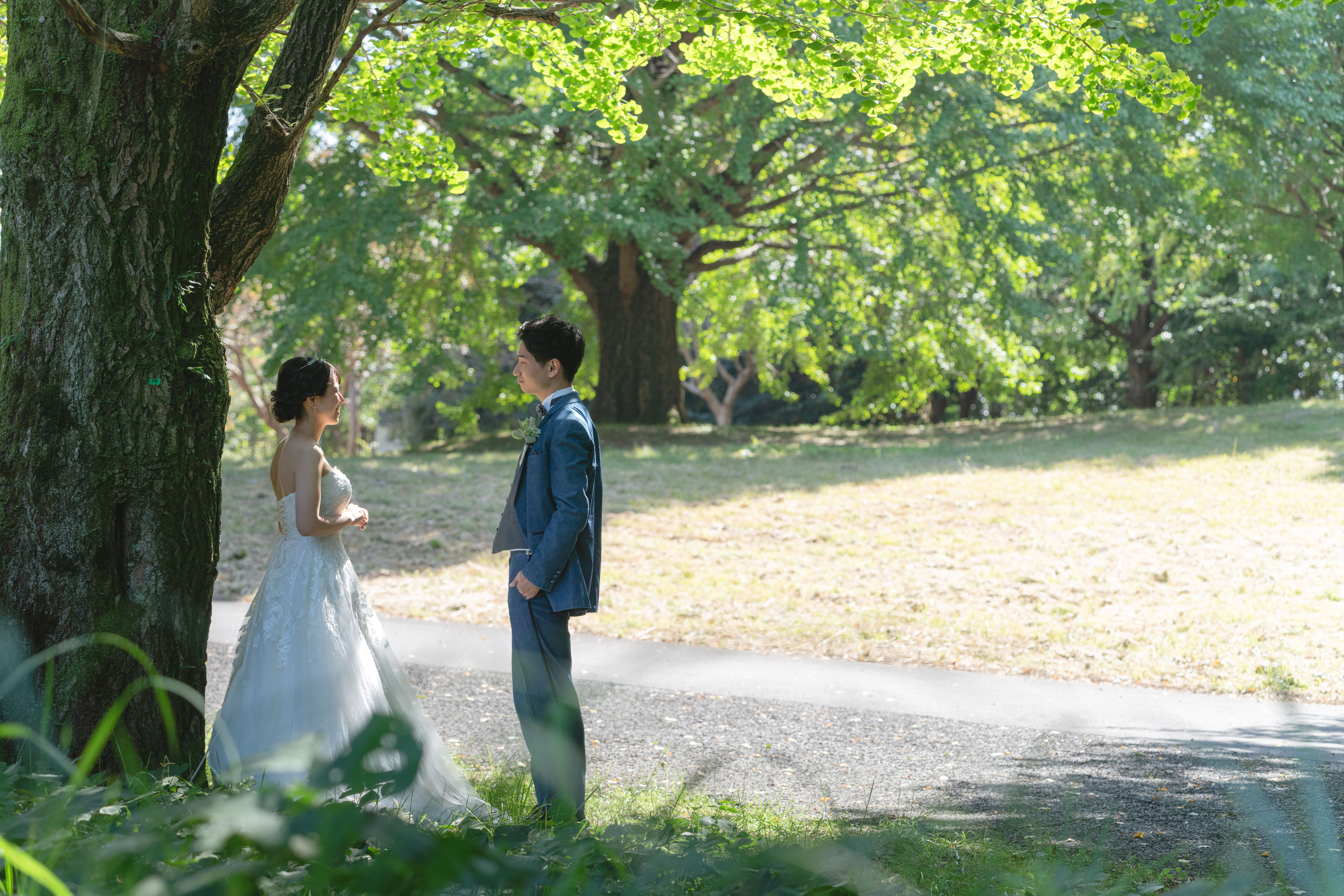 青空の下で一緒に歩くお二人を残しました!お天気に恵まれたお二人でした!