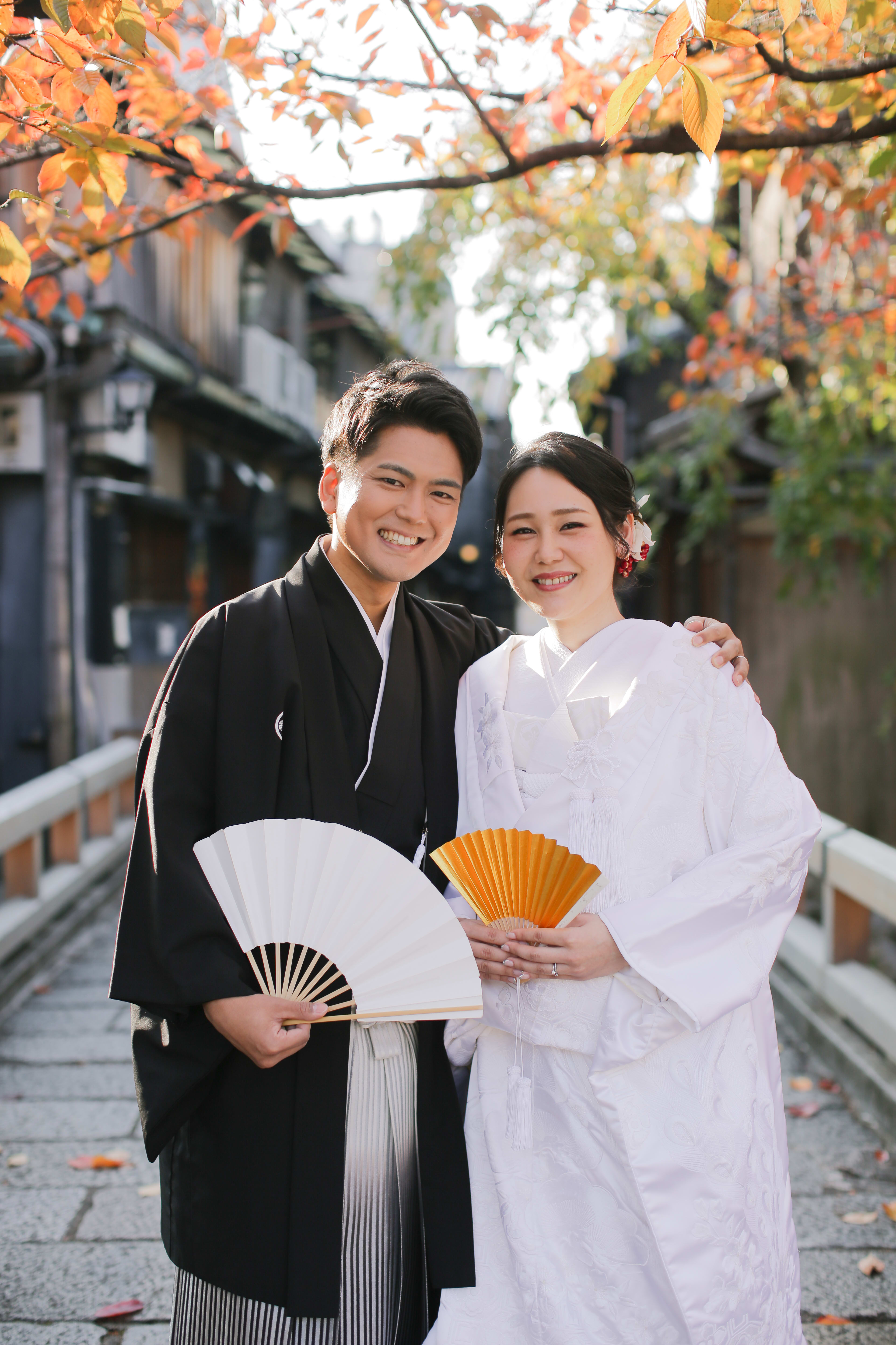 最後はお2人のとびっきりスマイルで^^ これからの季節は前撮りにもピッタリの時期です! ぜひ祇園でのロケーションご検討ください♪