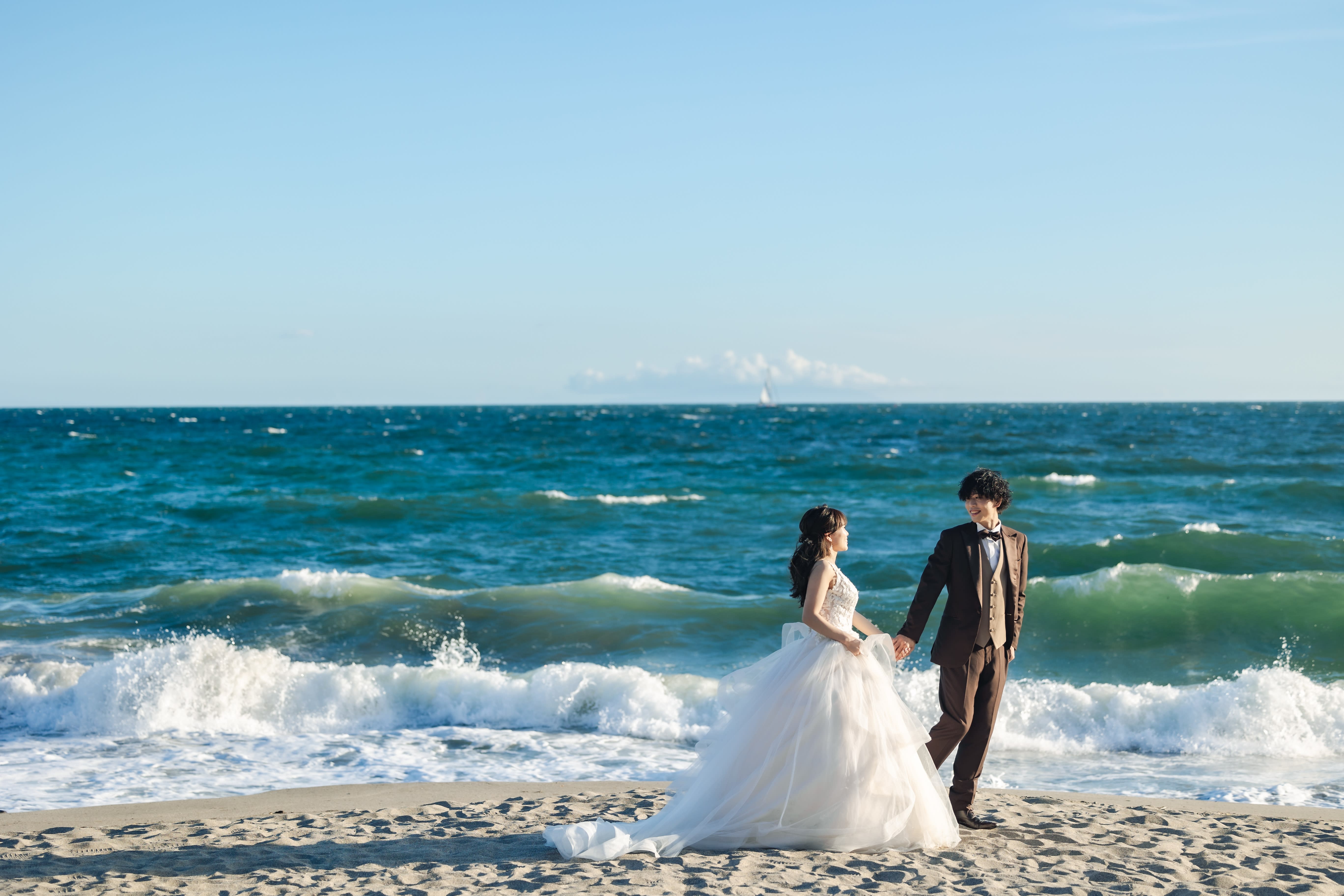 砂浜も綺麗で、江ノ島もしっかり見えます。