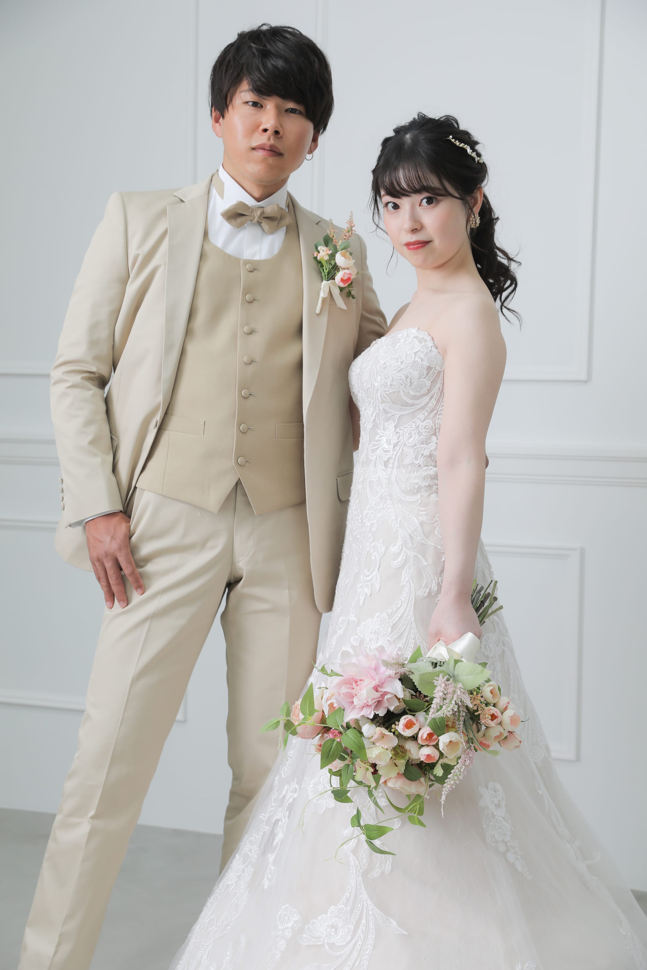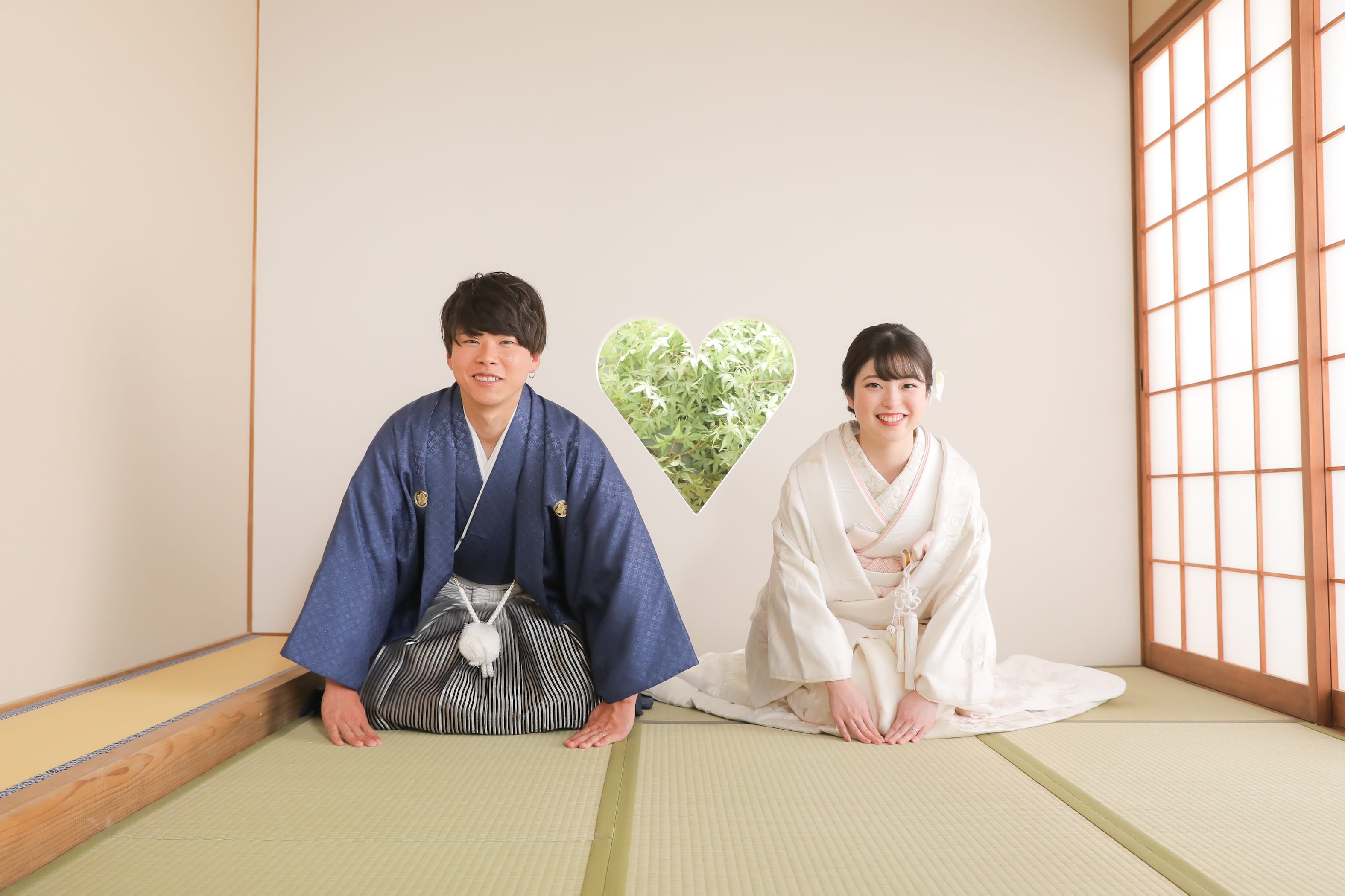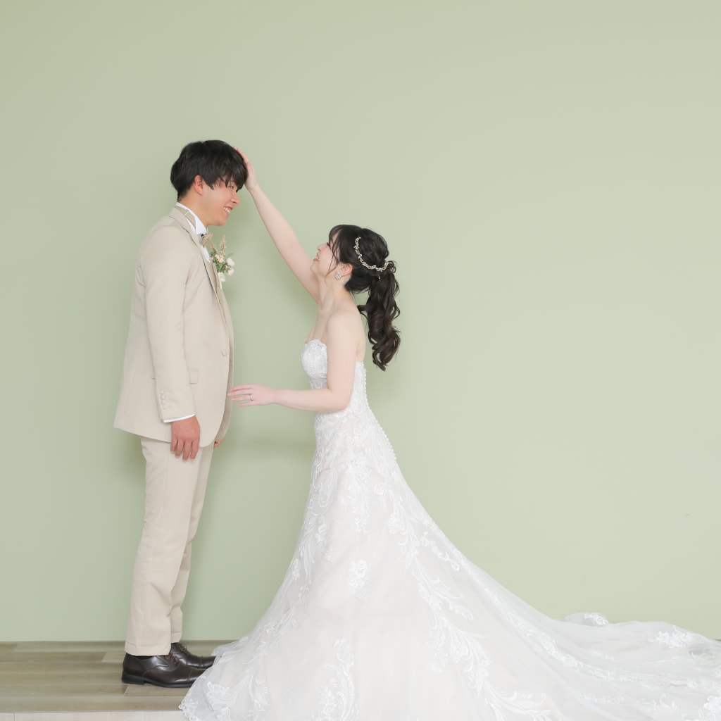 まるで屋外の庭園で撮影しているかのような奥行きのあるお写真。広いスタジオで、引きのお写真もお任せください!