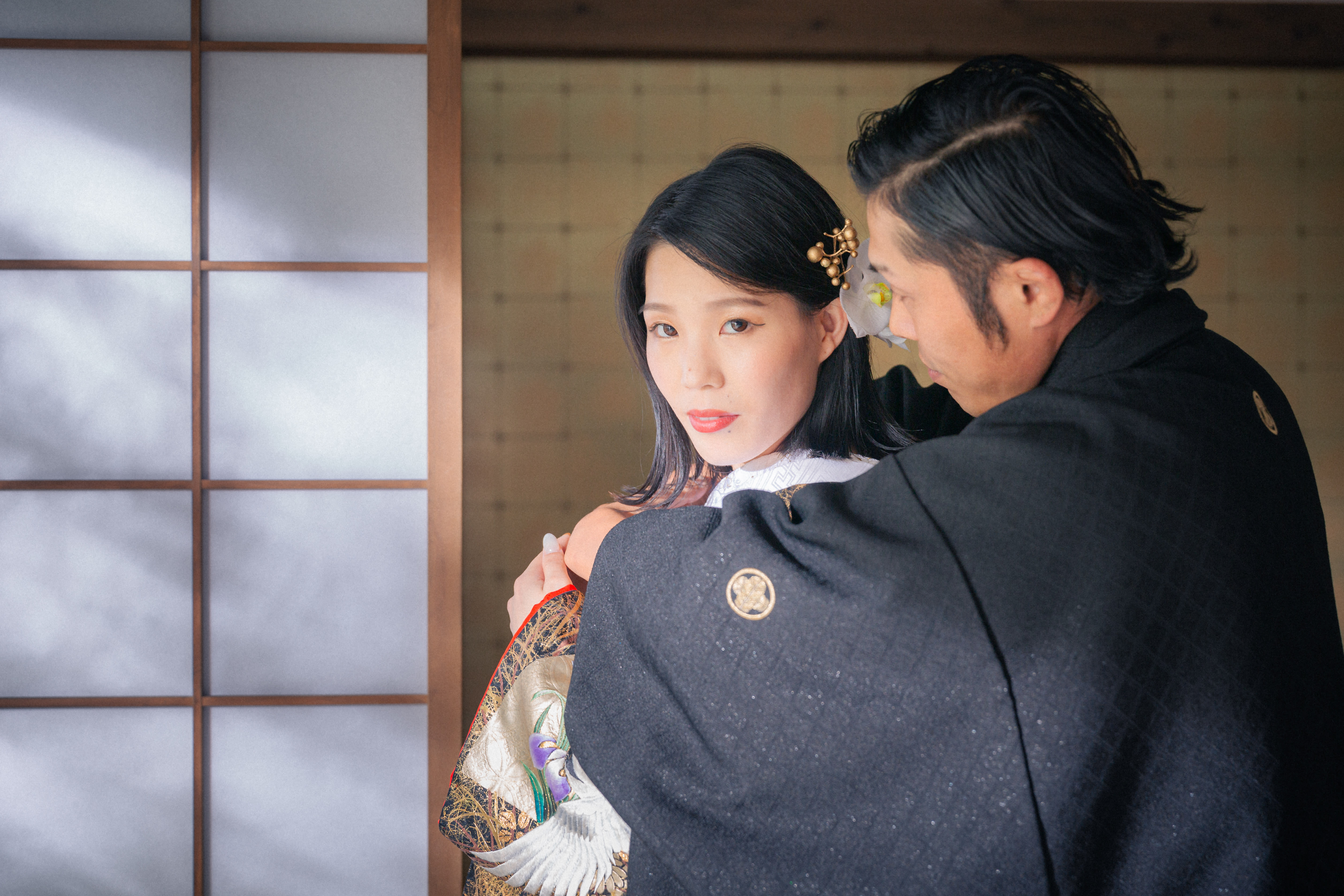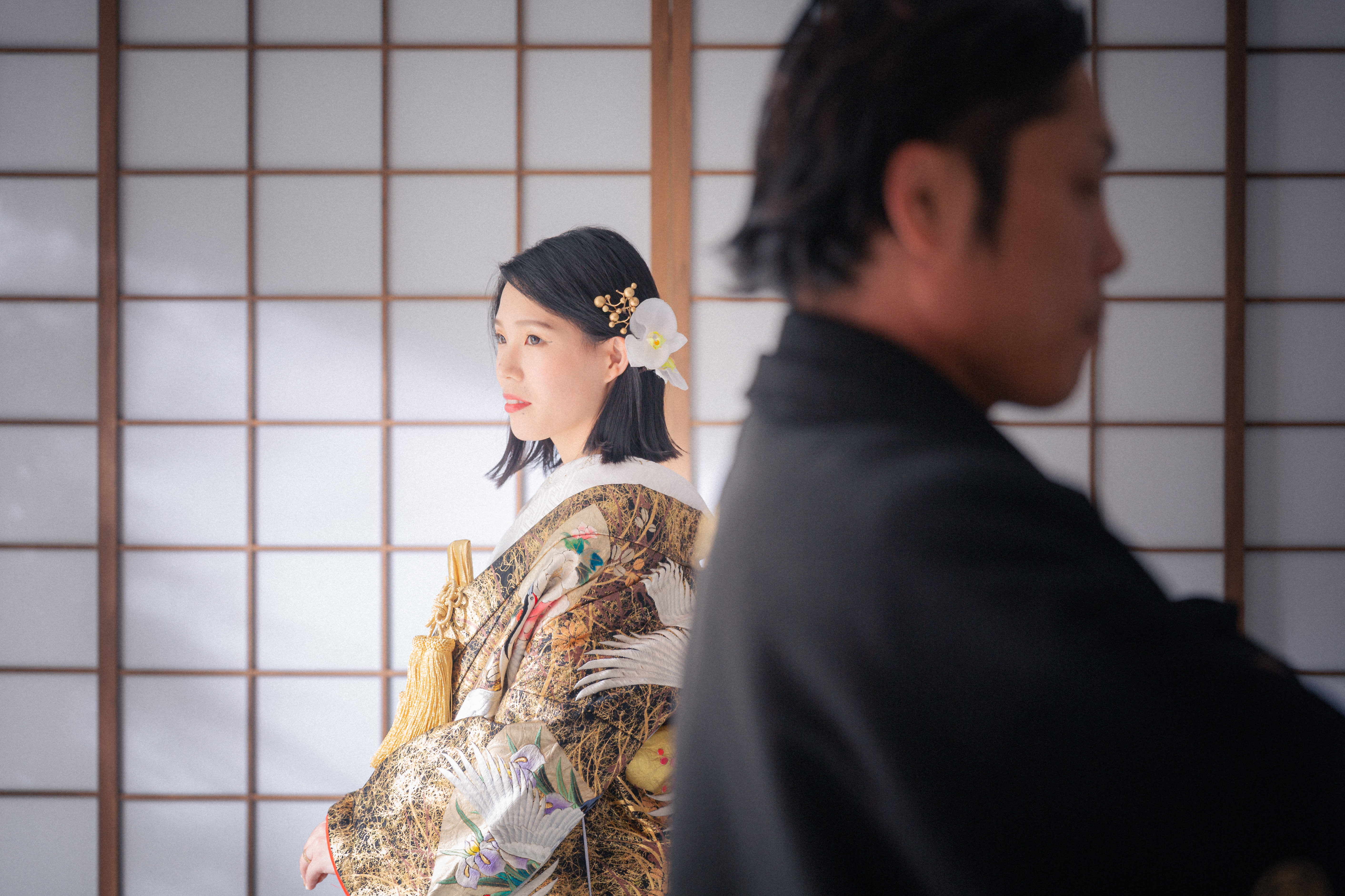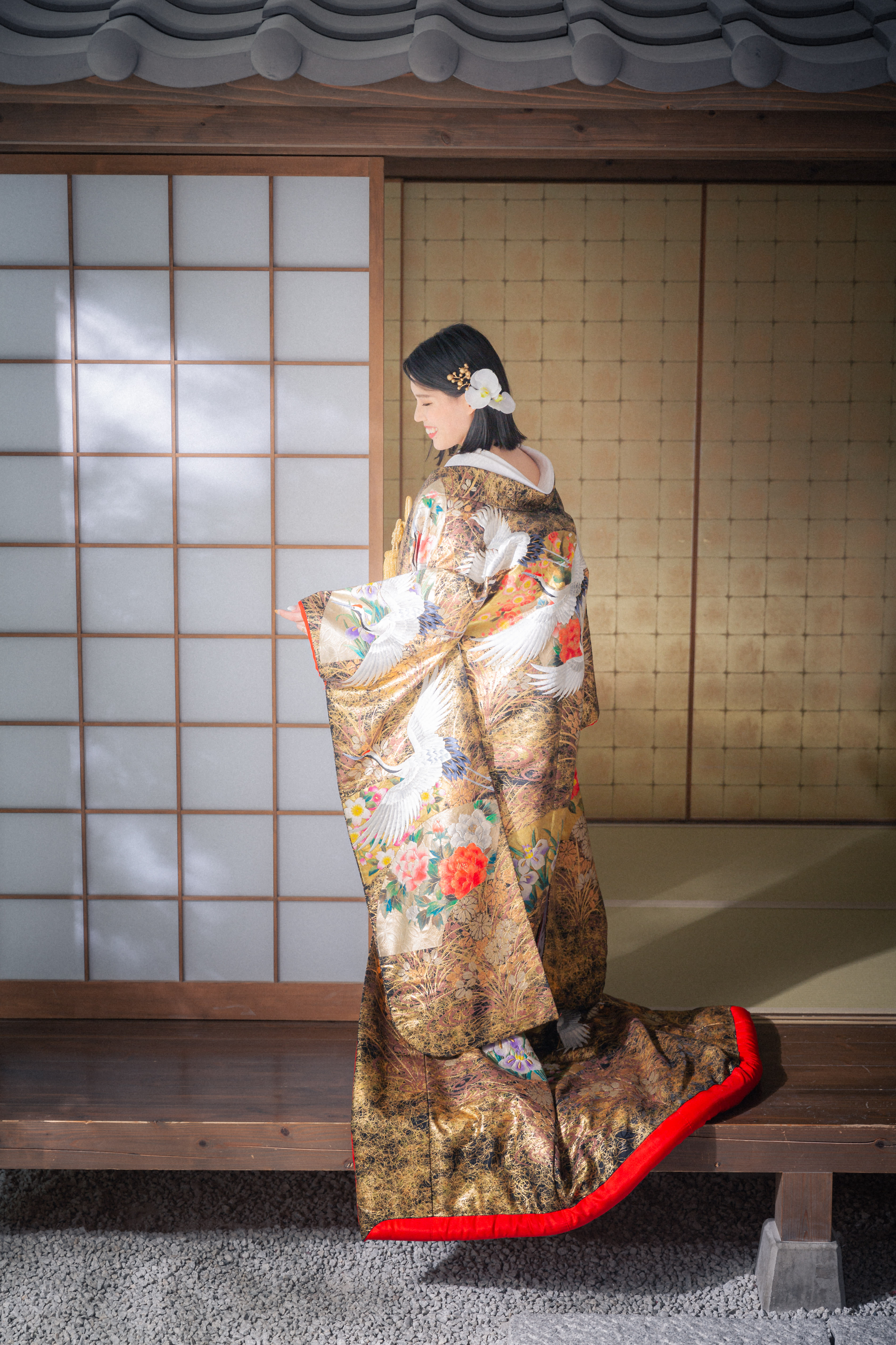 本格日本庭園を再現したスタジオで撮る 和装の結婚写真