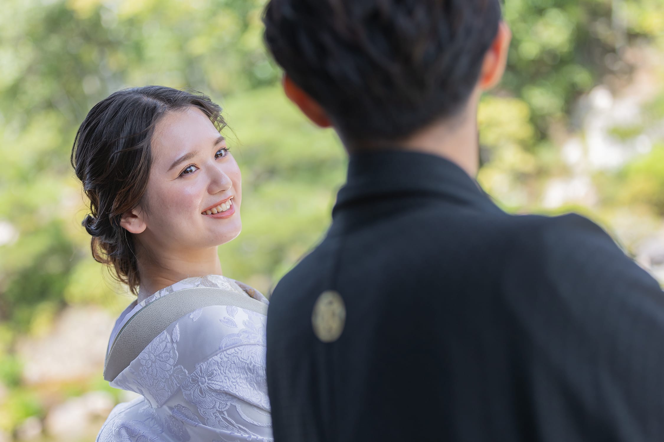 お二人寄り添って、京都の季節の移り変わりを感じながらのフォトウェディング。